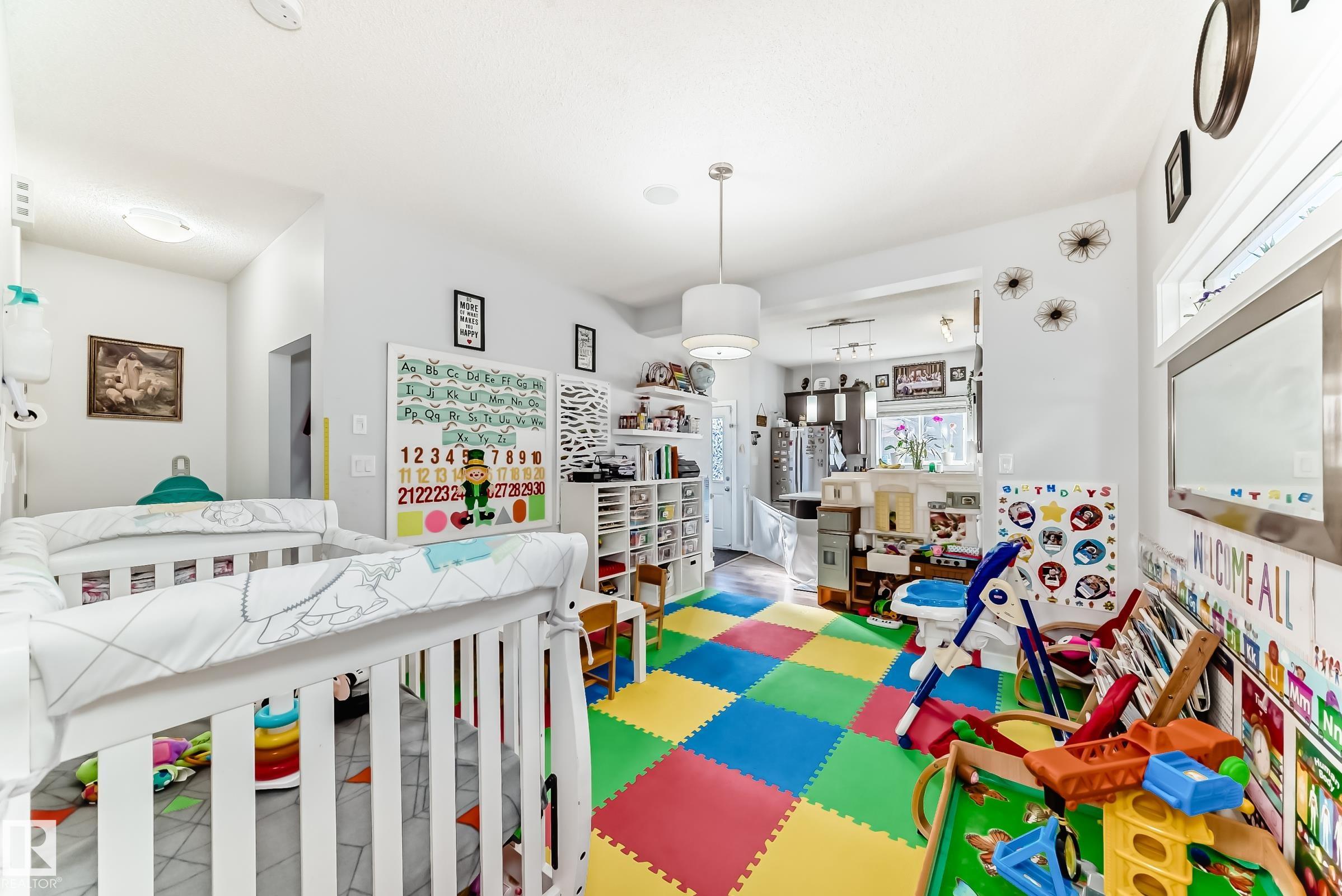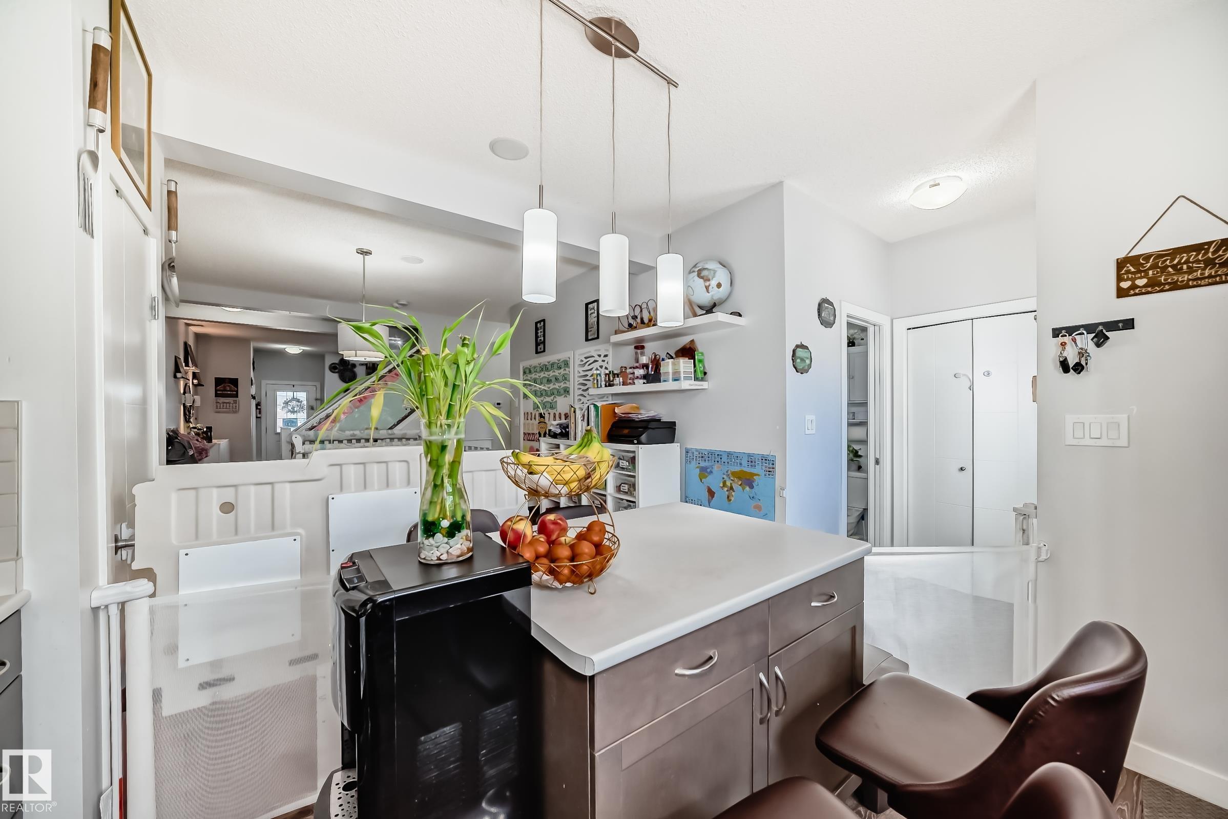 This beautifully maintained former show home offers over 1,600 sq ft of thoughtfully designed living space and is truly move-in ready. Unlike many homes in the community, this property is not a zero lot line, providing added privacy and more space between neighbouring homes. The main floor welcomes you with a bright and inviting living room featuring a cozy fireplace, perfect for relaxing evenings. The open-concept layout flows seamlessly into the dining area and kitchen, ideal for both everyday living and entertaining. A separate "tech space" adds versatility and can be used as a home office, den, or playroomHighlights include 9 ft ceilings, quality laminate flooring, stainless steel appliances, built-in speakers, and central air conditioning for year-round comfort.Upstairs, you will find three well-proportioned bedrooms, including a spacious primary suite complete with a walk-in closet and private ensuite. The conveniently located upper-floor laundry room offers additional shelving for extra