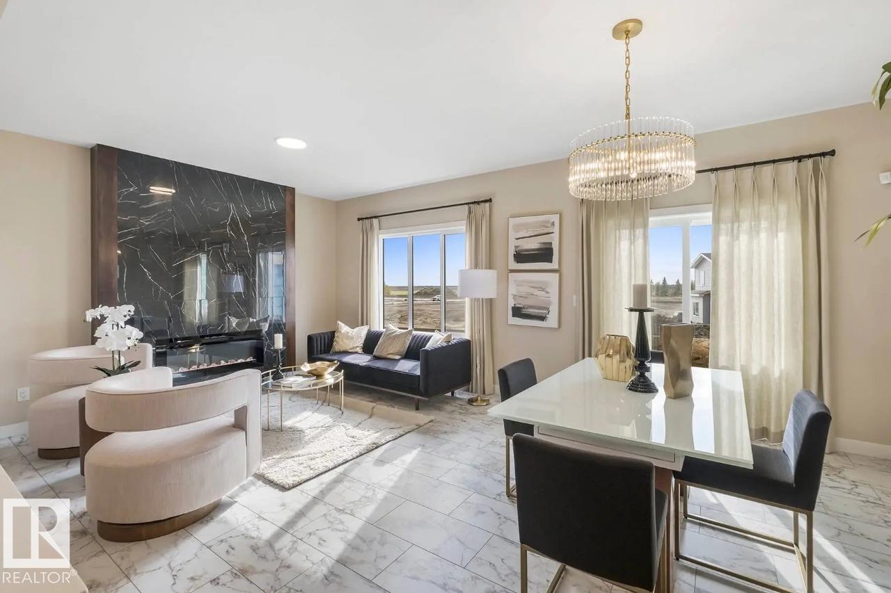 Tentatively scheduled for completion at the end of May, 22725 89A Ave NW is a single-family home with attached garage built by San Rufo Homes. This thoughtfully designed home features forced air heating and quality upgrades throughout. The main living area includes a great room fireplace, creating a warm and inviting space for everyday living. The kitchen is appointed with 42" upper cabinets for added storage and functionality. A side entry and 9' foundation provide excellent flexibility and future development potential. The home also includes a 200 AMP electrical service, supporting modern lifestyle needs. Located in a growing northwest community, this property offers a well-balanced blend of comfort, design, and long-term value. Photos are representative.