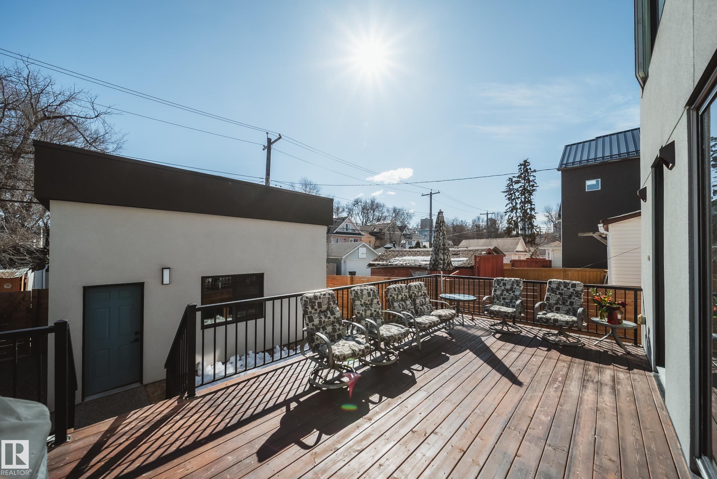 Welcome to this GORGEOUS, CUSTOM-BUILT 3-storey home in Edmonton's prestigious downtown community of Rossdale! This architecturally designed, PARK-FACING property offers the perfect blend of luxury & style. Featuring 5 bedrms & 4.5 bathrms, complete w/ an ELEVATOR servicing all floors & FOUR outdoor living patios! Open-concept main floor is designed for entertaining, showcasing 8-ft doors, a stunning living room w/ gas fireplace, chef-inspired kitchen w/ custom cabinetry, gas stove & built-in appliances. Spacious dining area includes TWO built-in wine coolers & access to a massive exterior deck. Second level offers 3 large bedrms, a full bathrm, laundry, & a luxurious primary suite w/ 4-pc ensuite featuring a steam shower & WIC! 3rd level includes a bedrm, full bath, loft w/ wet bar, & TWO balconies! FF basement w/ large bedrm, full bath, living area & storage. LEGAL SUITE READY w/ plumbing roughed-in & 2 furnaces OVERSIZED HEATED garage w/ 14' ceilings, epoxy flooring & fully landscaped yard! MINS TO DT!