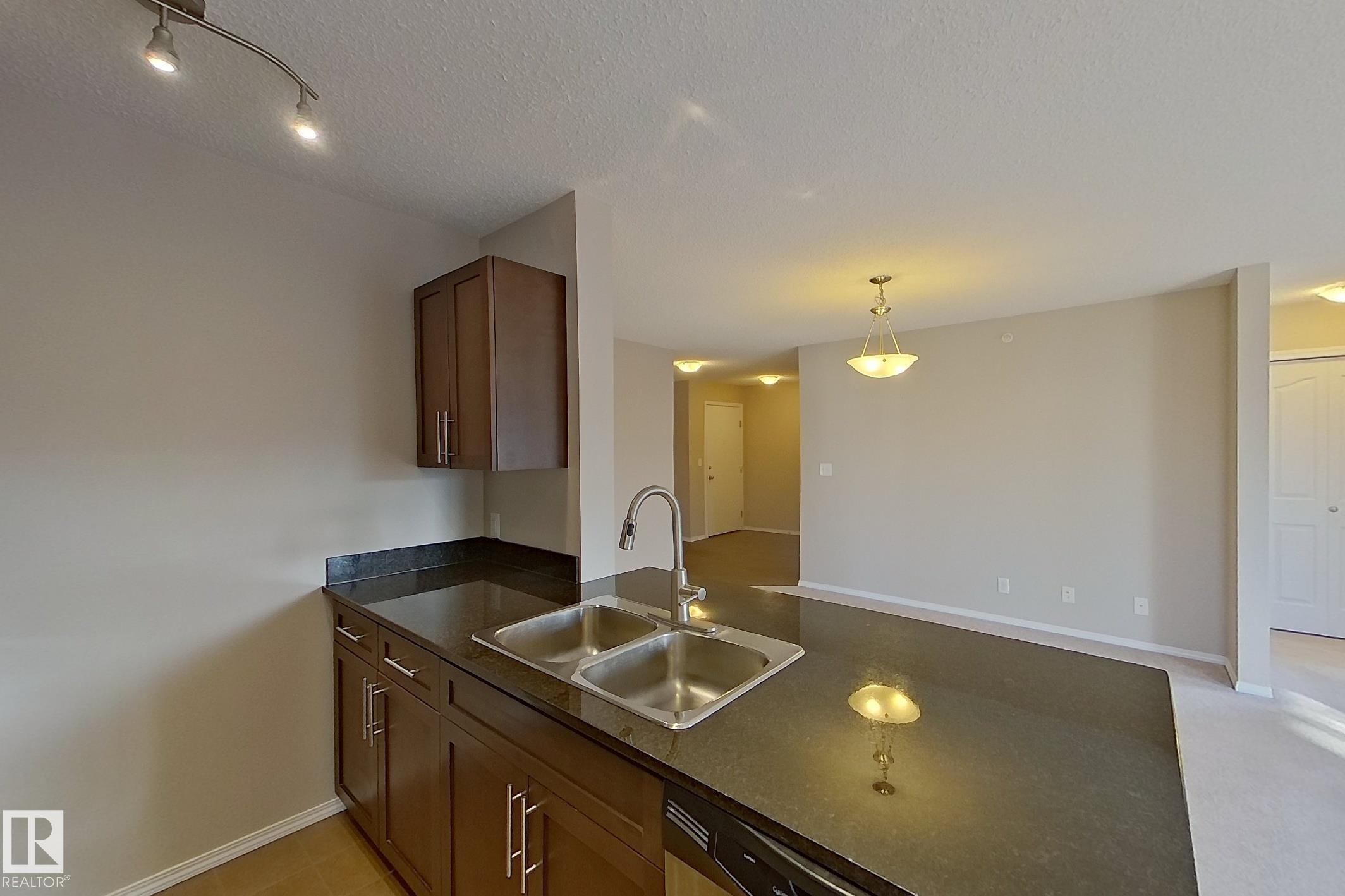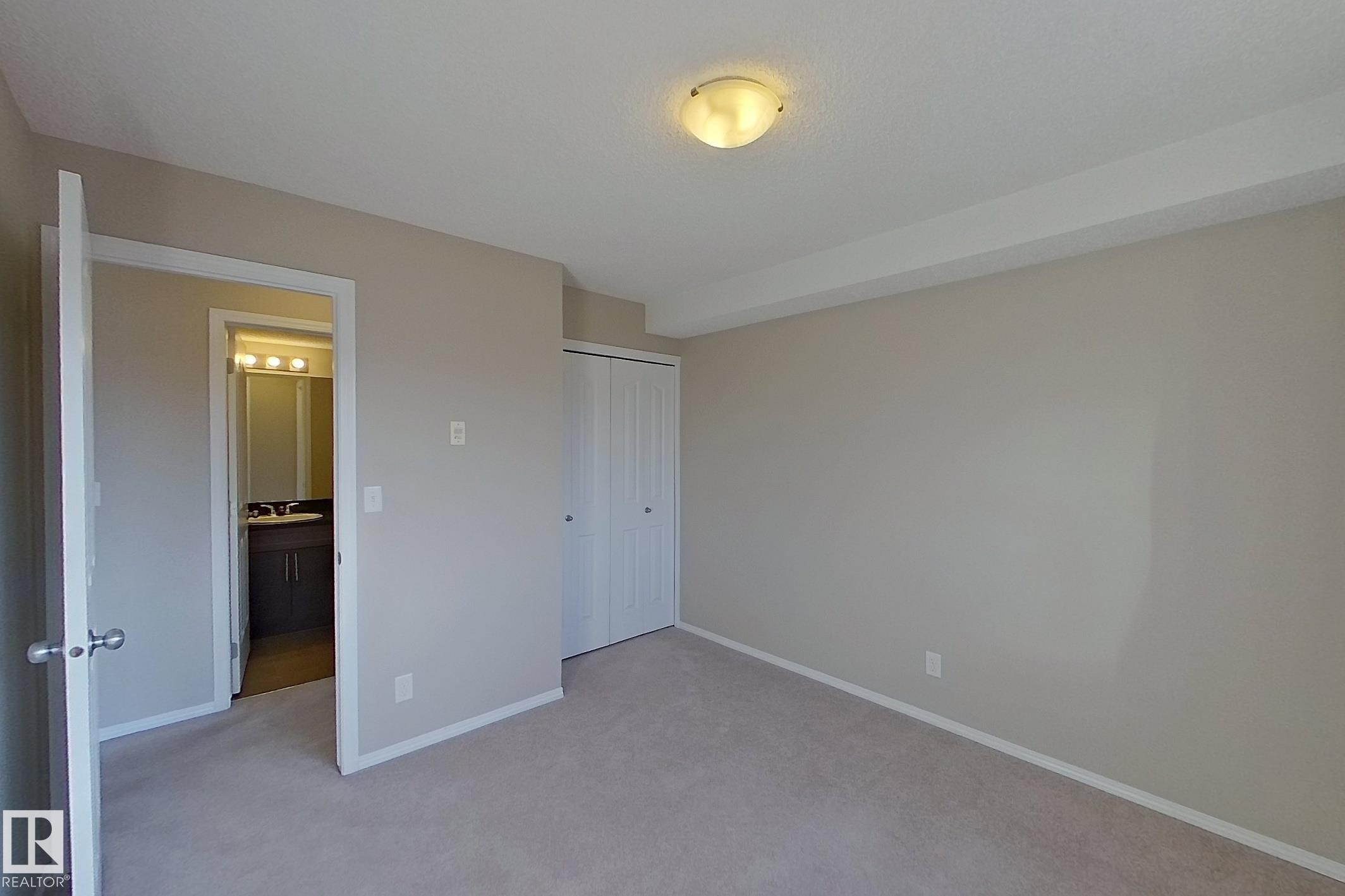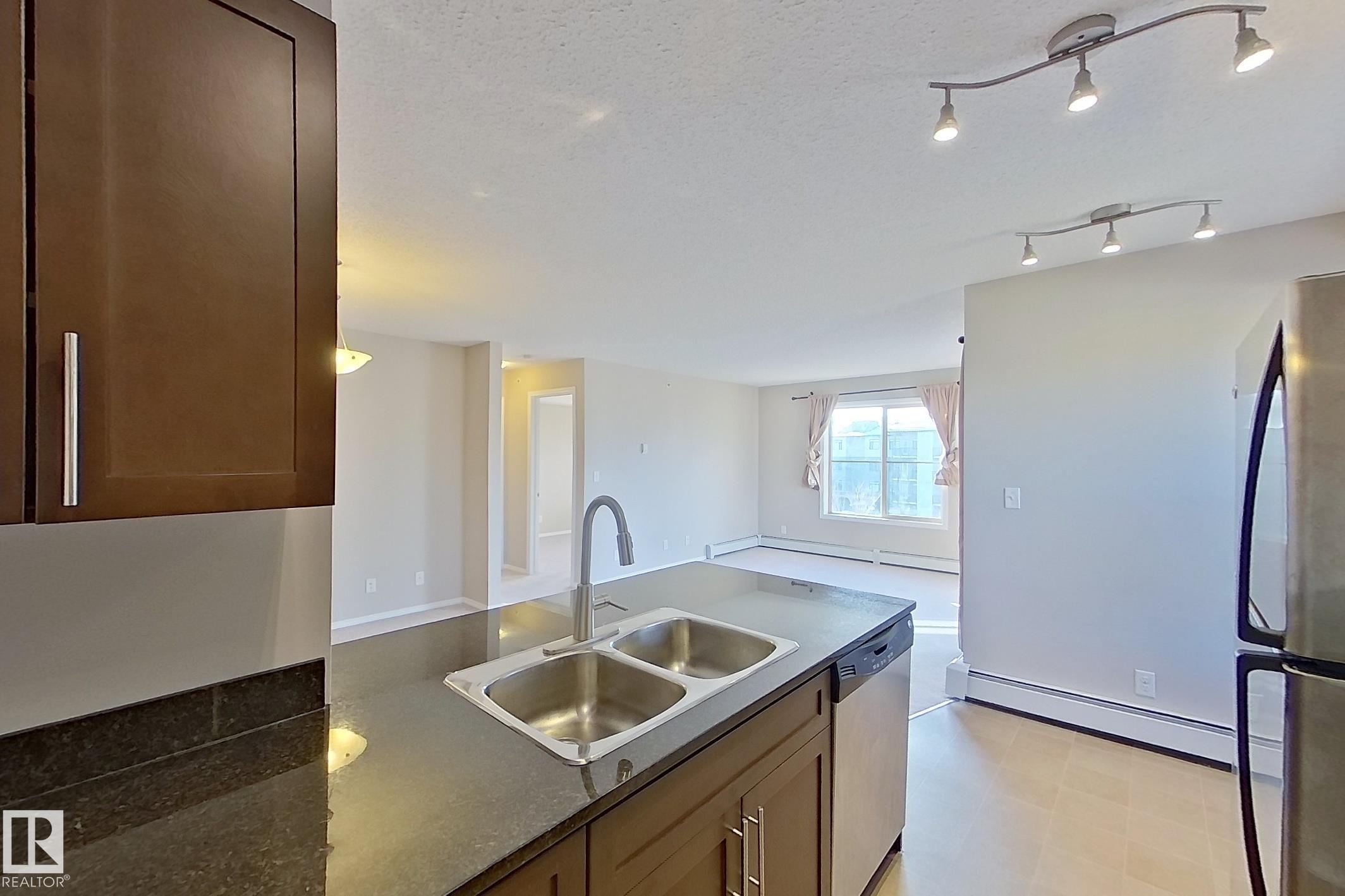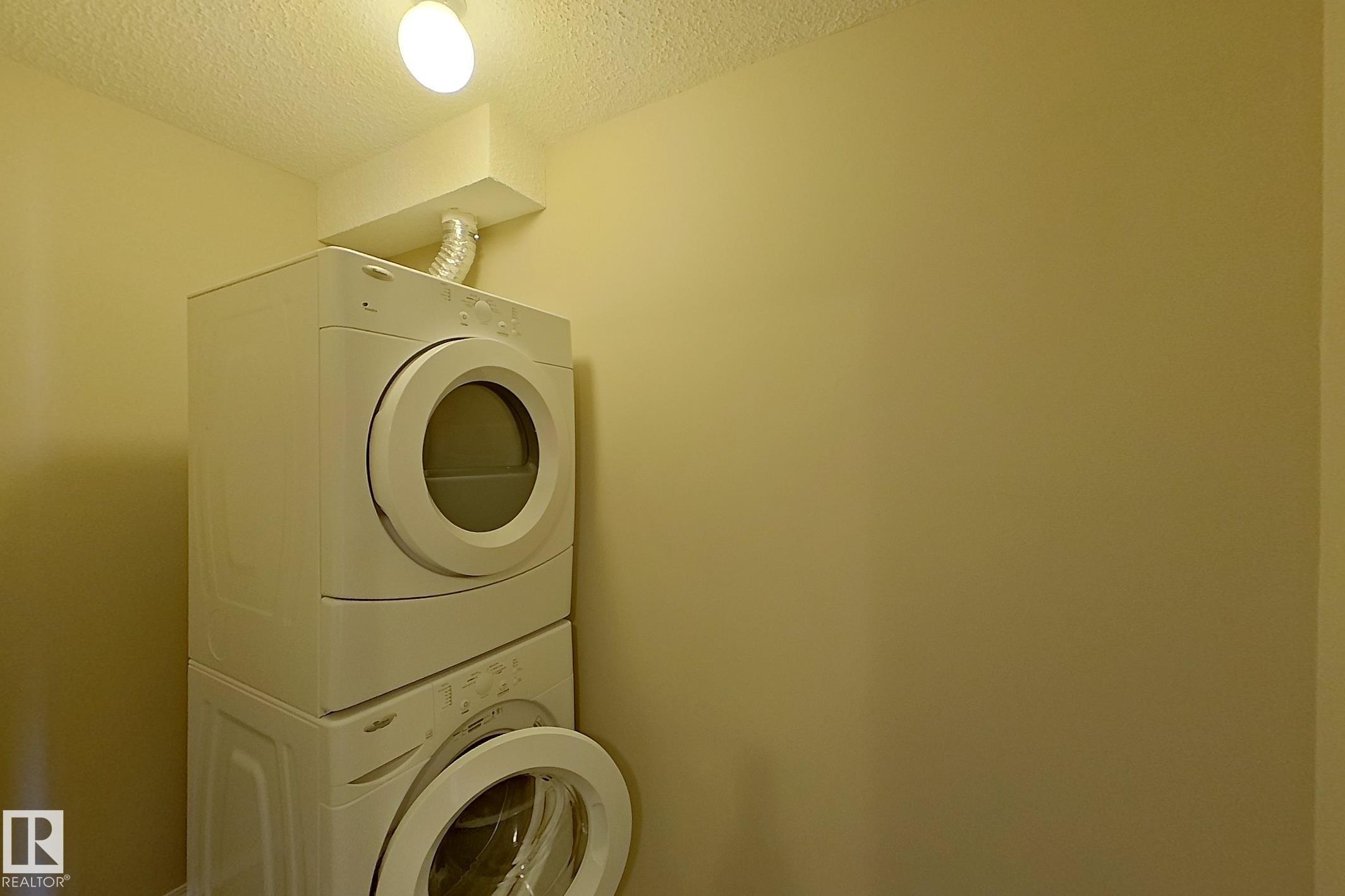 Discover refined living in this bright and spacious top-floor 970 sq ft corner unit with 2 bedrooms and 2 full bathrooms. Multiple windows fill the open-concept living and dining area with natural light, creating a warm and welcoming atmosphere. The kitchen stands out with stylish pendant lighting, premium stainless steel appliances, and sleek quartz countertops. Retreat to a comfortable primary bedroom, complete with a walk-through closet and a private four-piece ensuite. An in-suite laundry room adds convenience while offering extra storage. Step outside to relax or entertain on the generous covered balcony--perfect for soaking up the summer sun. Titled heated underground parking ensures year-round comfort and security. Ideally situated steps from dining, shopping, Edmonton Public Library, walking trails, and other amenities, this residence seamlessly blends modern convenience with everyday practicality--an exceptional opportunity to call home.