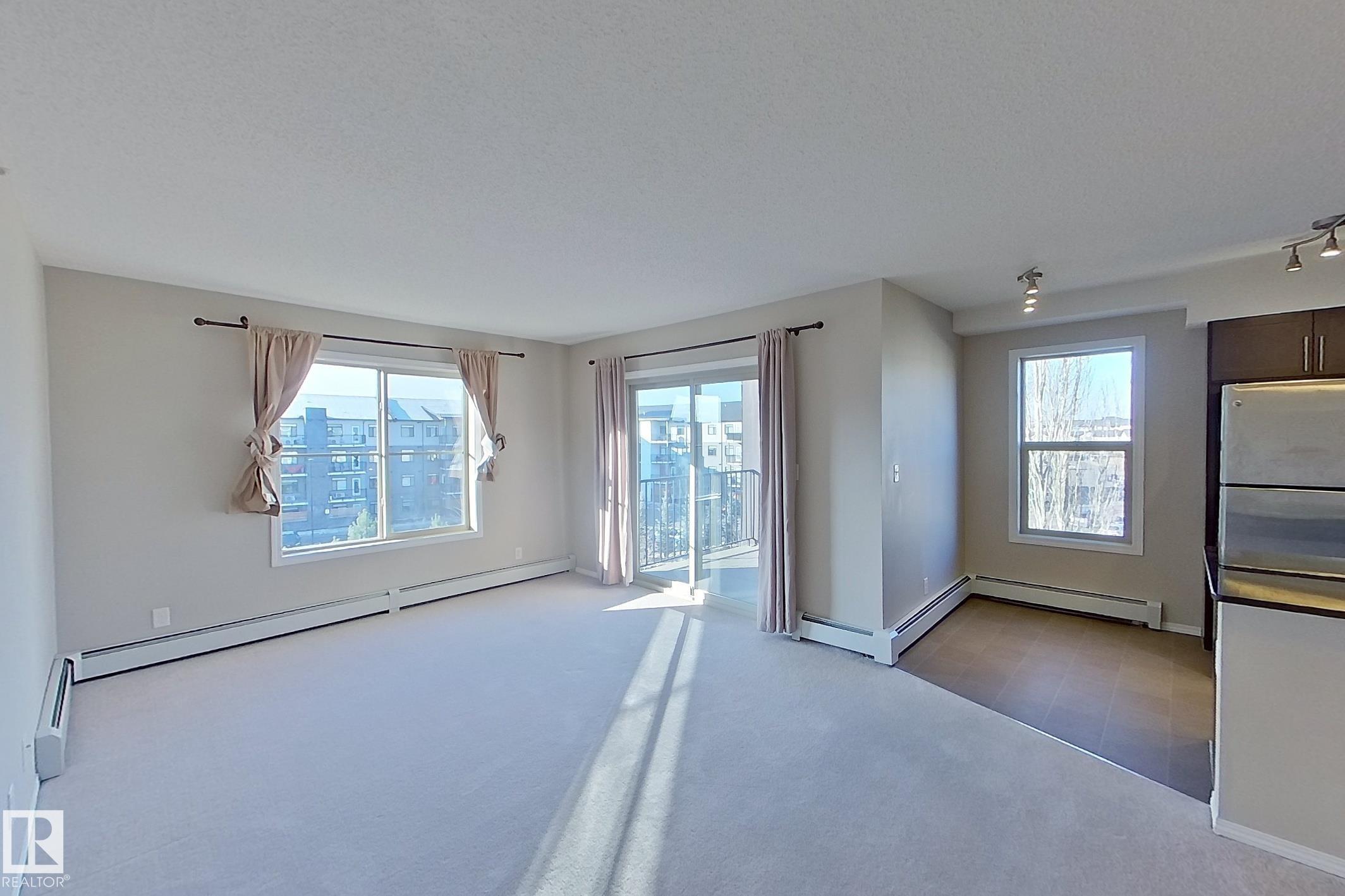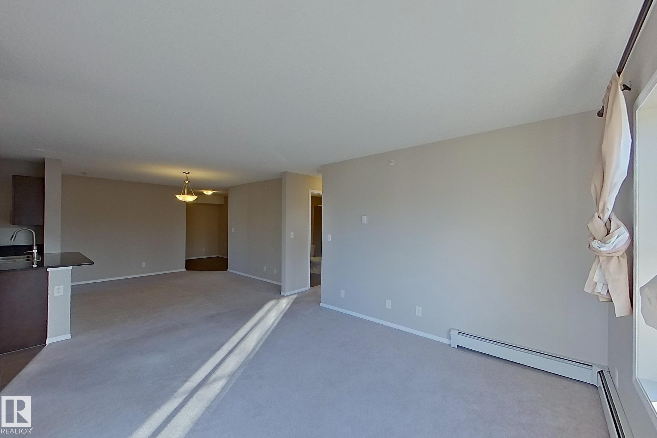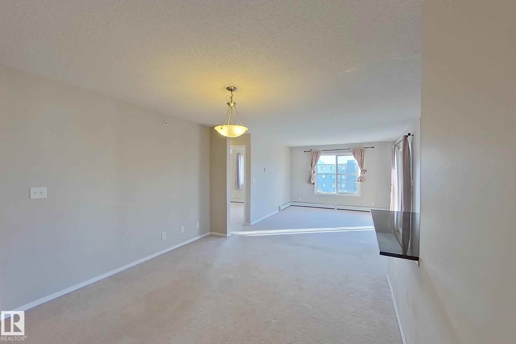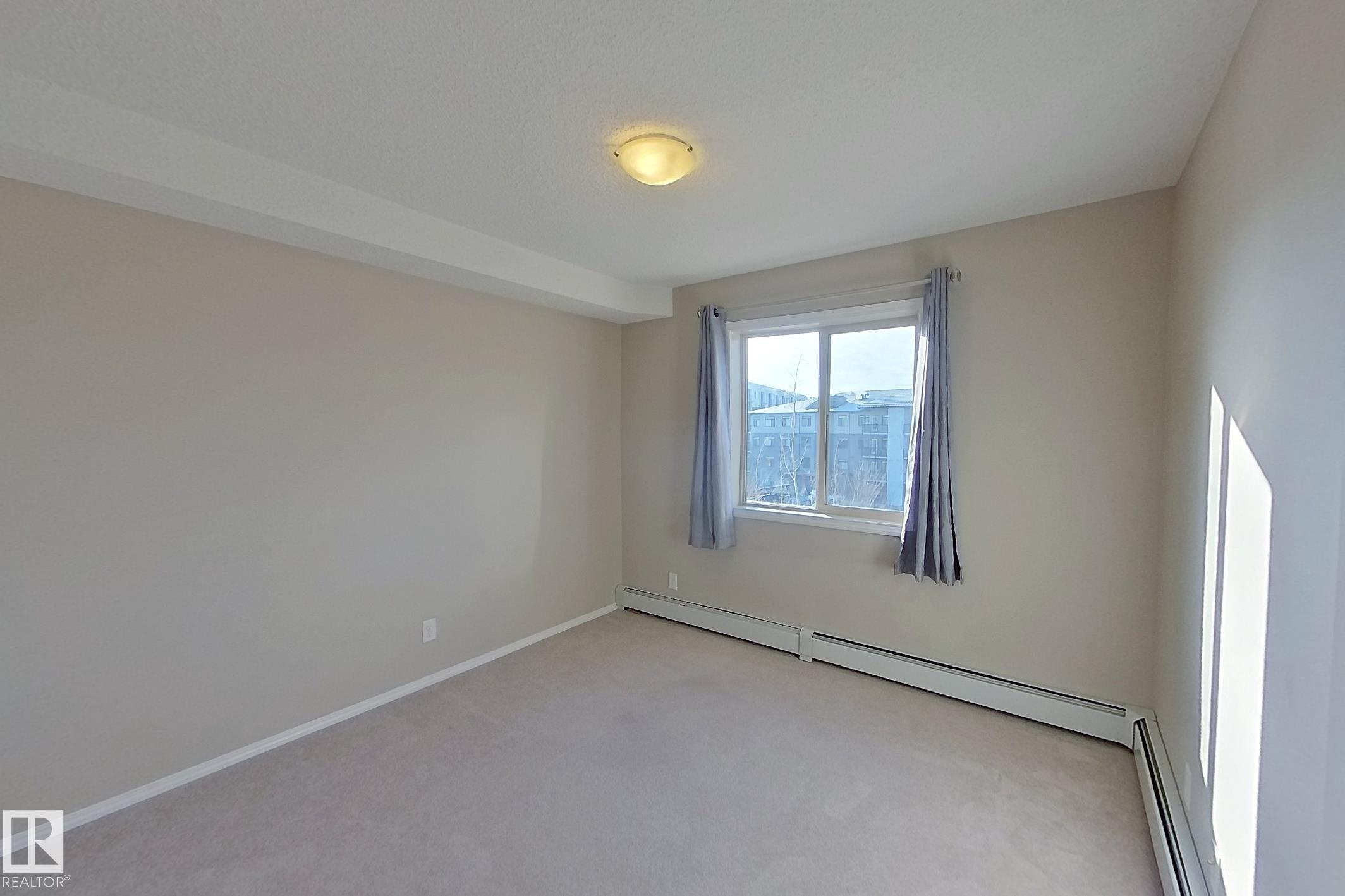 Discover refined living in this bright and spacious top-floor 970 sq ft corner unit with 2 bedrooms and 2 full bathrooms. Multiple windows fill the open-concept living and dining area with natural light, creating a warm and welcoming atmosphere. The kitchen stands out with stylish pendant lighting, premium stainless steel appliances, and sleek quartz countertops. Retreat to a comfortable primary bedroom, complete with a walk-through closet and a private four-piece ensuite. An in-suite laundry room adds convenience while offering extra storage. Step outside to relax or entertain on the generous covered balcony--perfect for soaking up the summer sun. Titled heated underground parking ensures year-round comfort and security. Ideally situated steps from dining, shopping, Edmonton Public Library, walking trails, and other amenities, this residence seamlessly blends modern convenience with everyday practicality--an exceptional opportunity to call home.