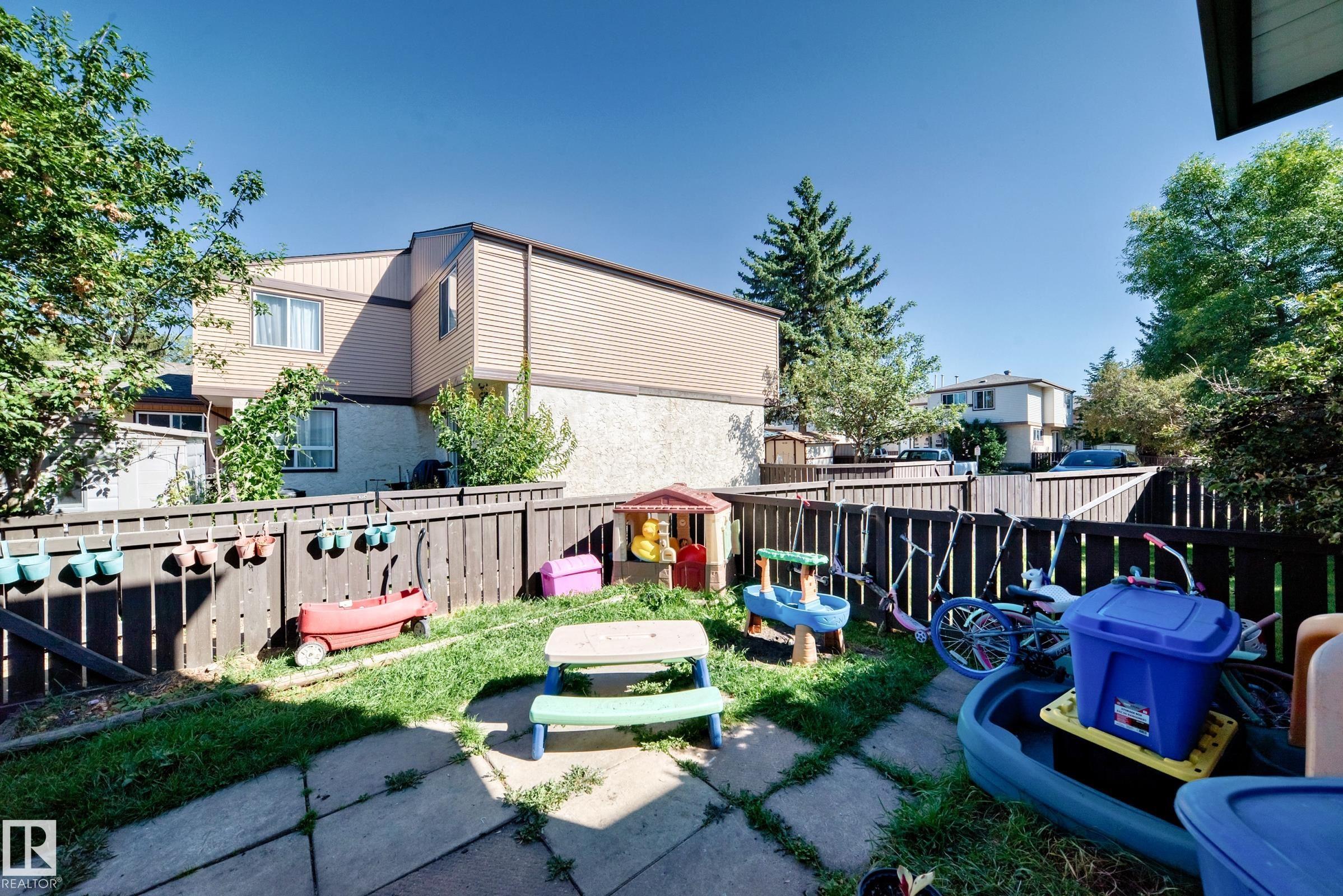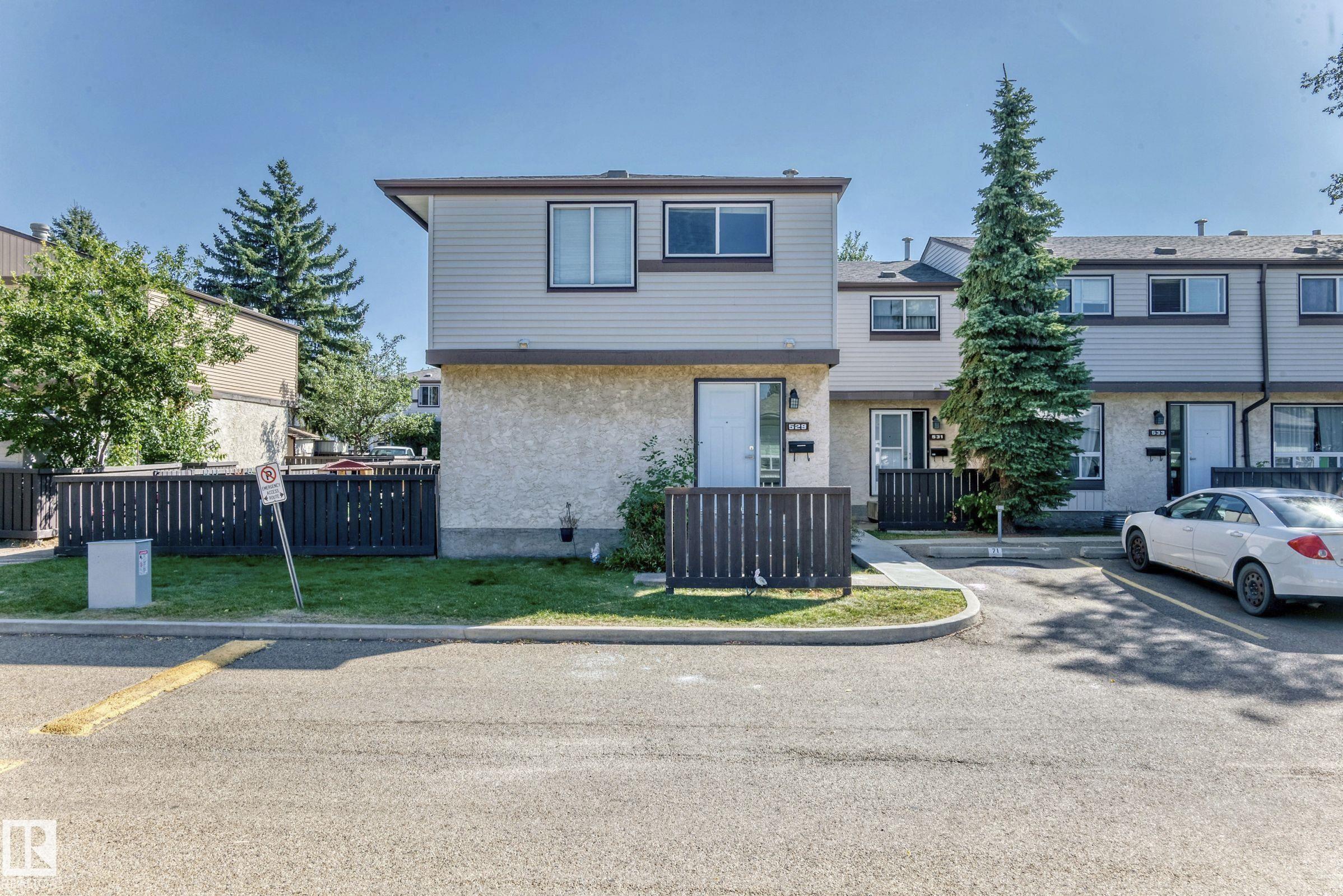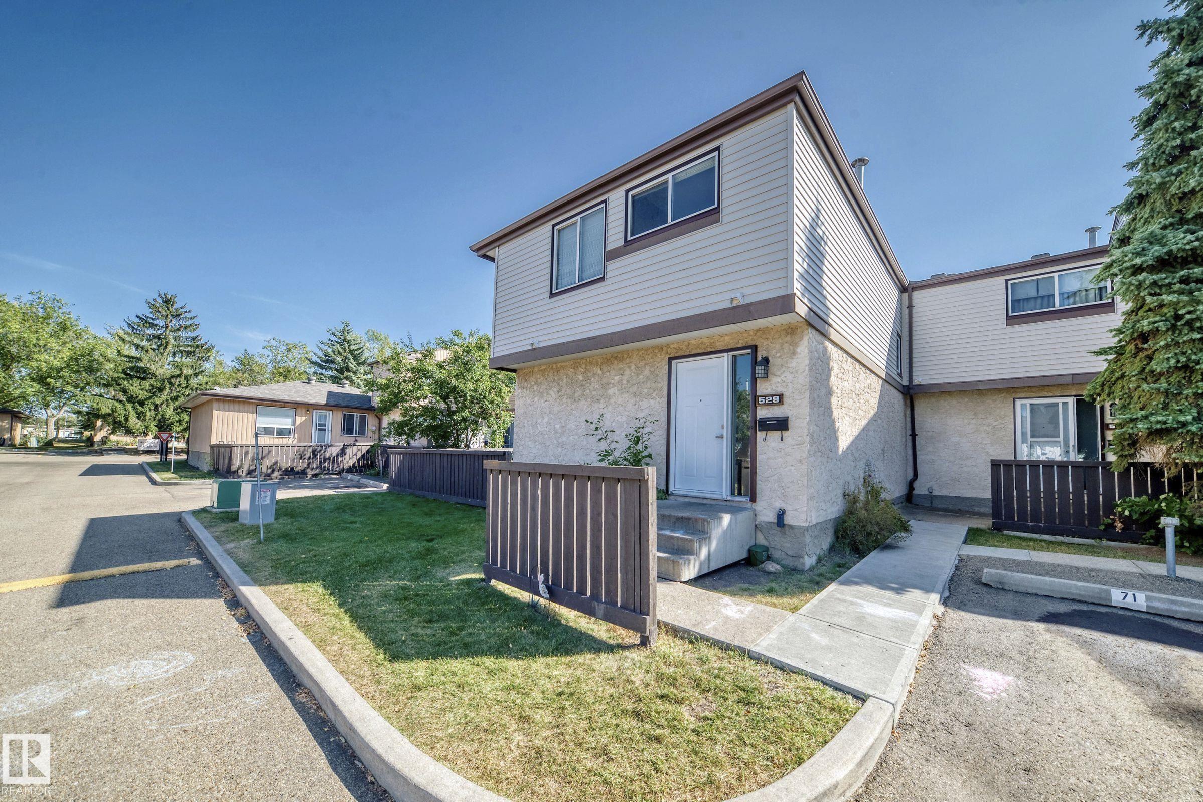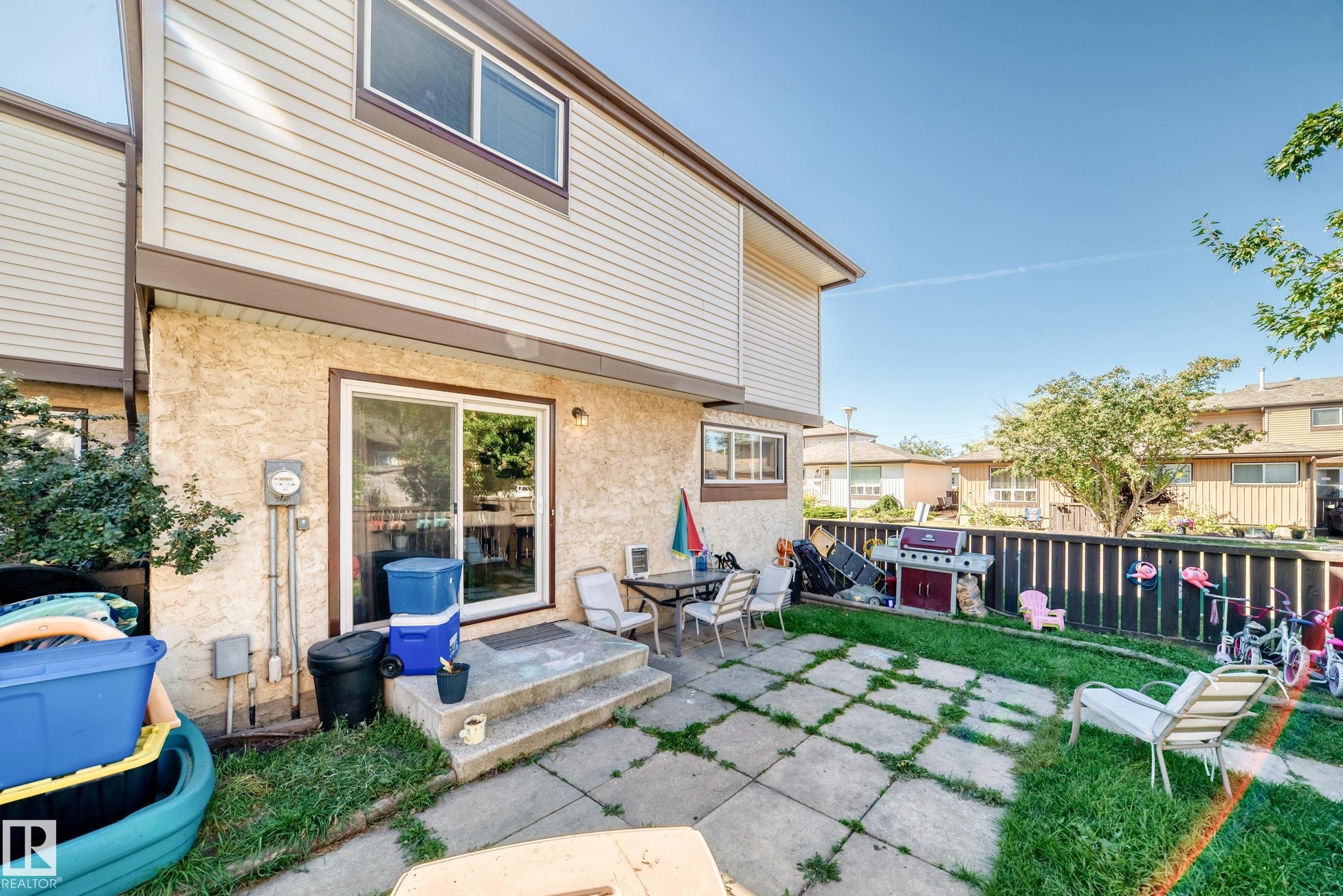 GREAT LOCATION!! This three bedroom, 1 & 1/2 bath townhouse has a large eat in kitchen with loads of counter space, and room for a sizable table. The living room is spacious with patio doors leading out into the private, fenced, outdoor space; half bath completes this level. Upstairs has a large primary suite, two additional bedrooms and a 4 piece bath. The basement is partially finished with loads of storage space. Parking stall right at your front door, close to schools, shopping, transit, and easy access to Anthony Henday. WELCOME HOME!!