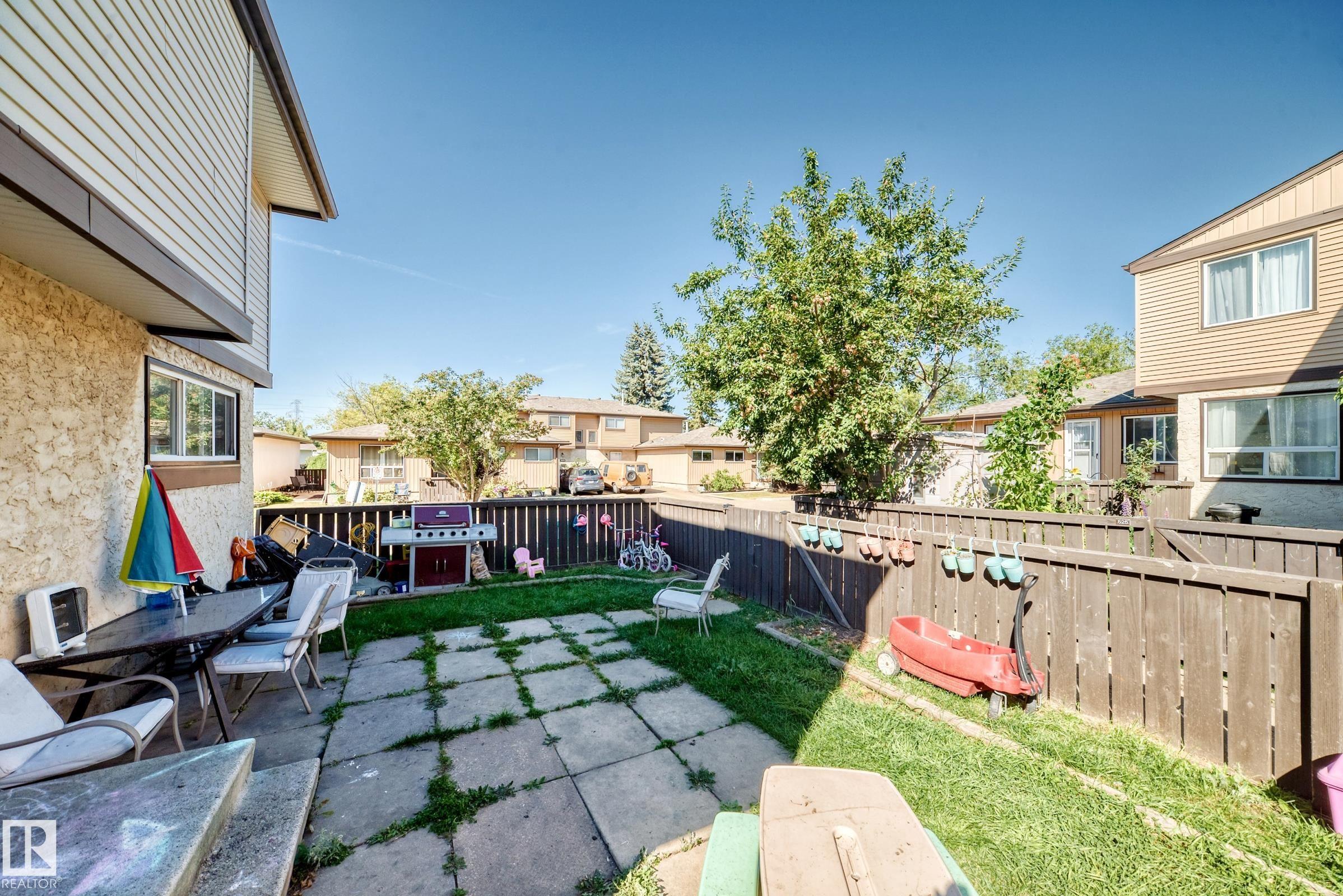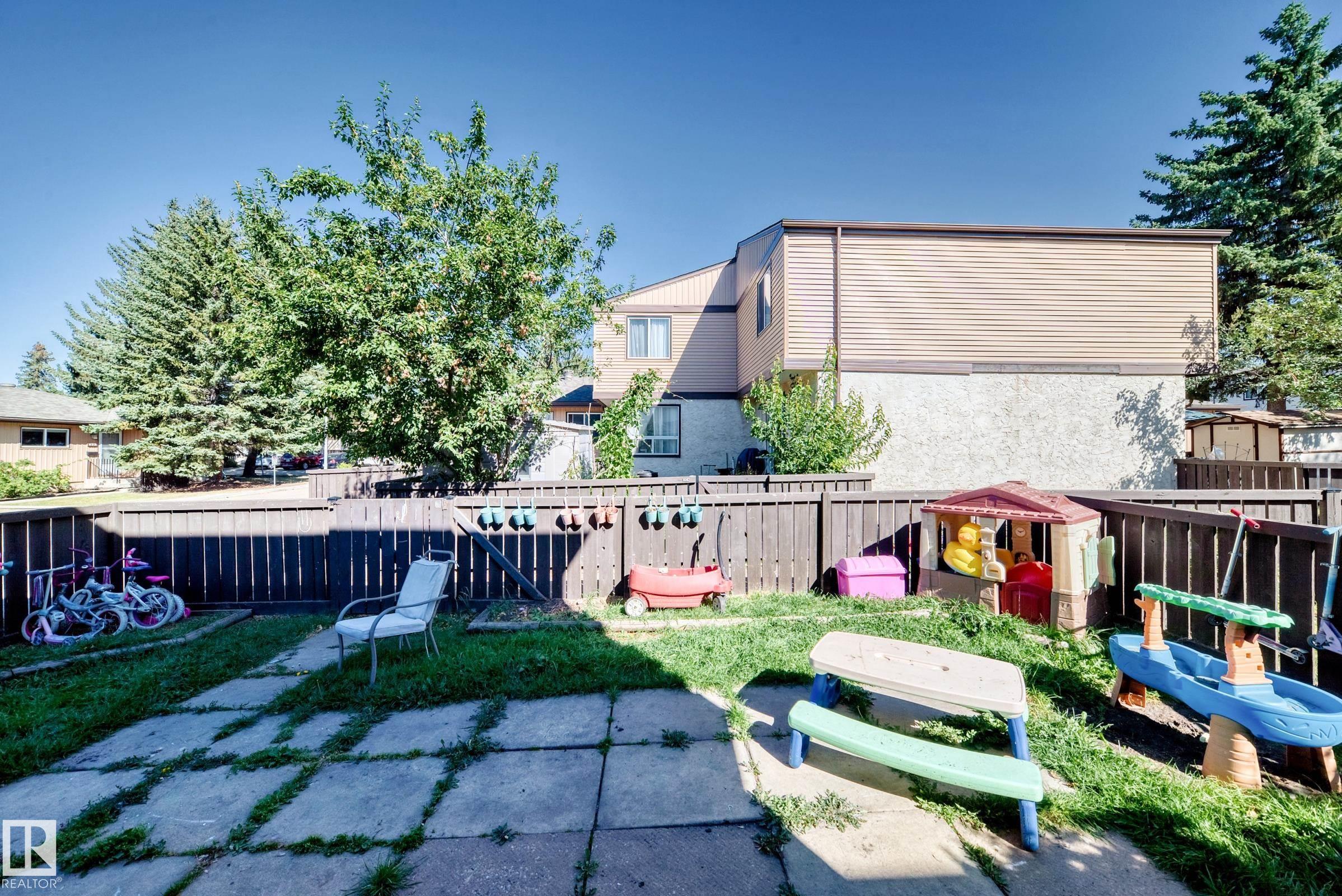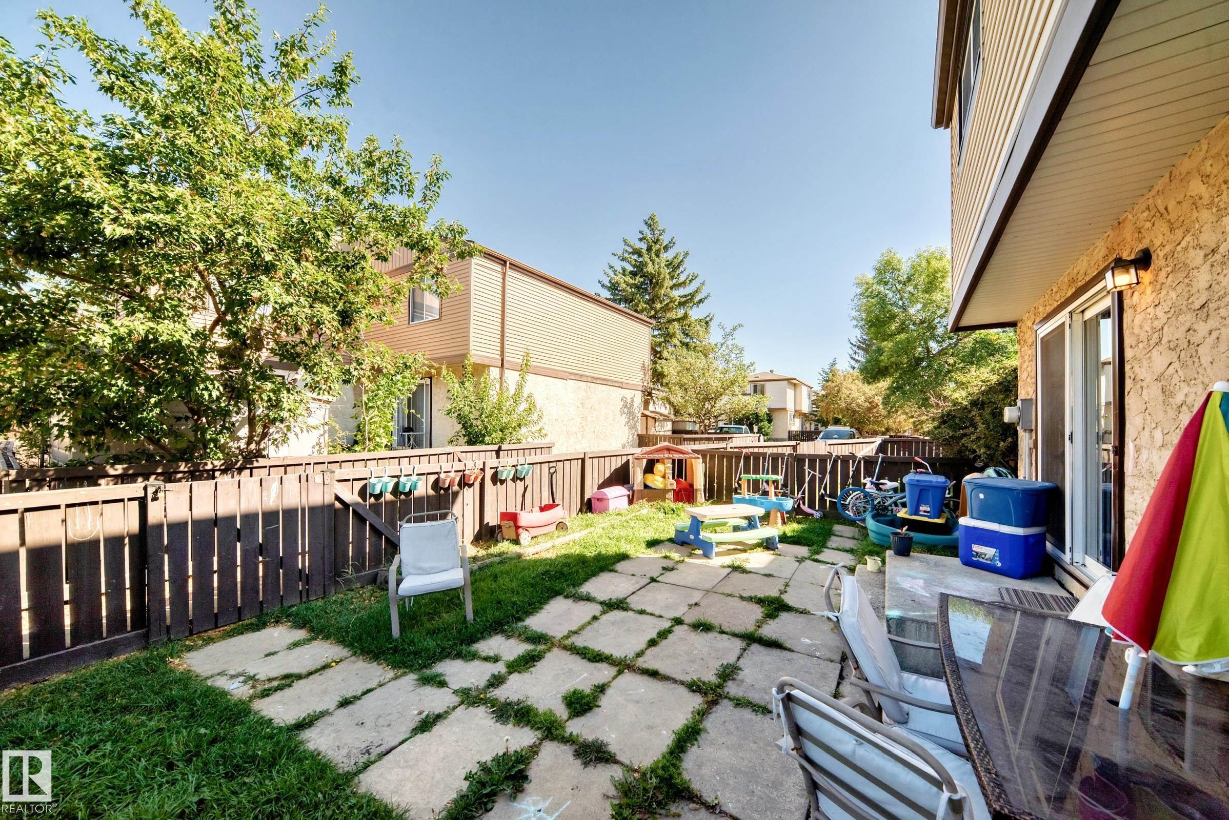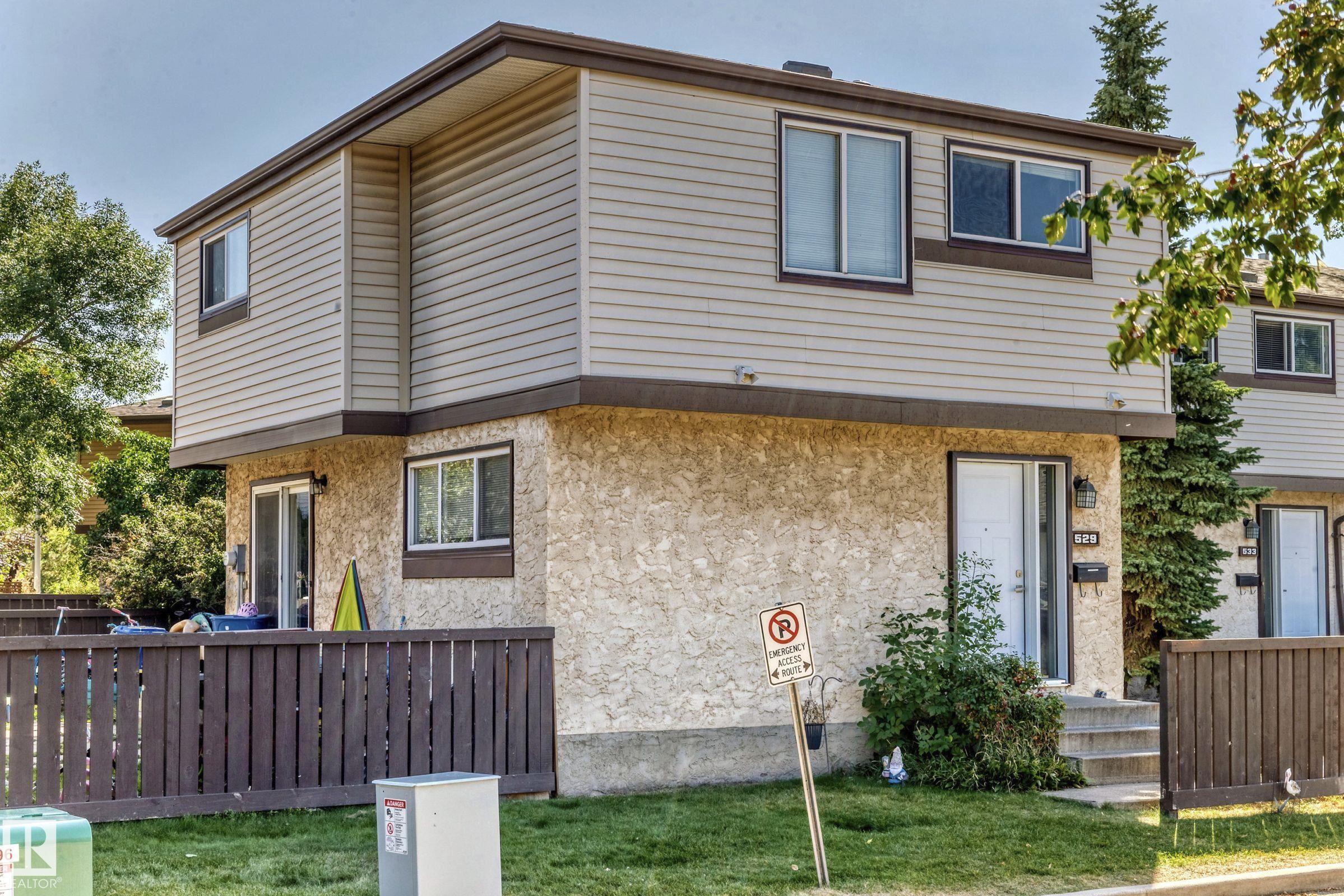 GREAT LOCATION!! This three bedroom, 1 & 1/2 bath townhouse has a large eat in kitchen with loads of counter space, and room for a sizable table. The living room is spacious with patio doors leading out into the private, fenced, outdoor space; half bath completes this level. Upstairs has a large primary suite, two additional bedrooms and a 4 piece bath. The basement is partially finished with loads of storage space. Parking stall right at your front door, close to schools, shopping, transit, and easy access to Anthony Henday. WELCOME HOME!!