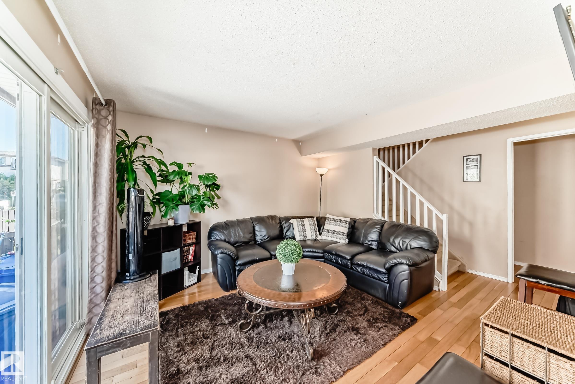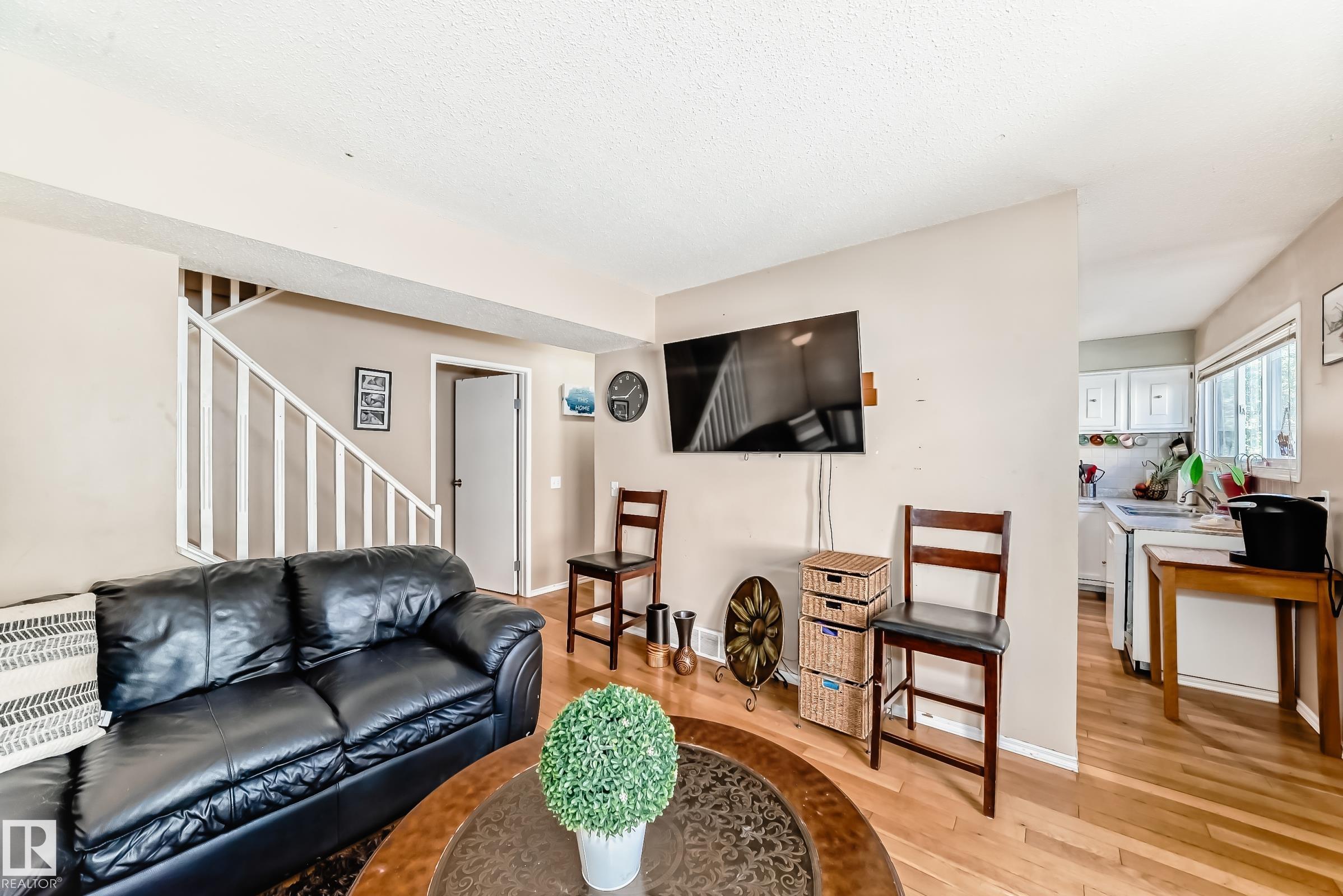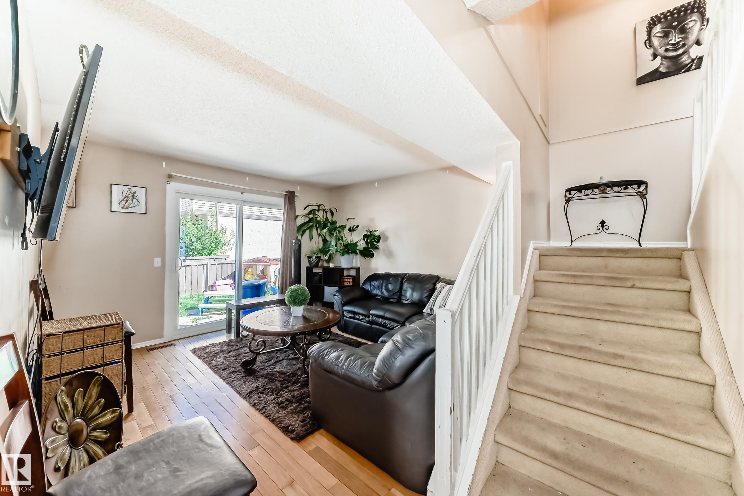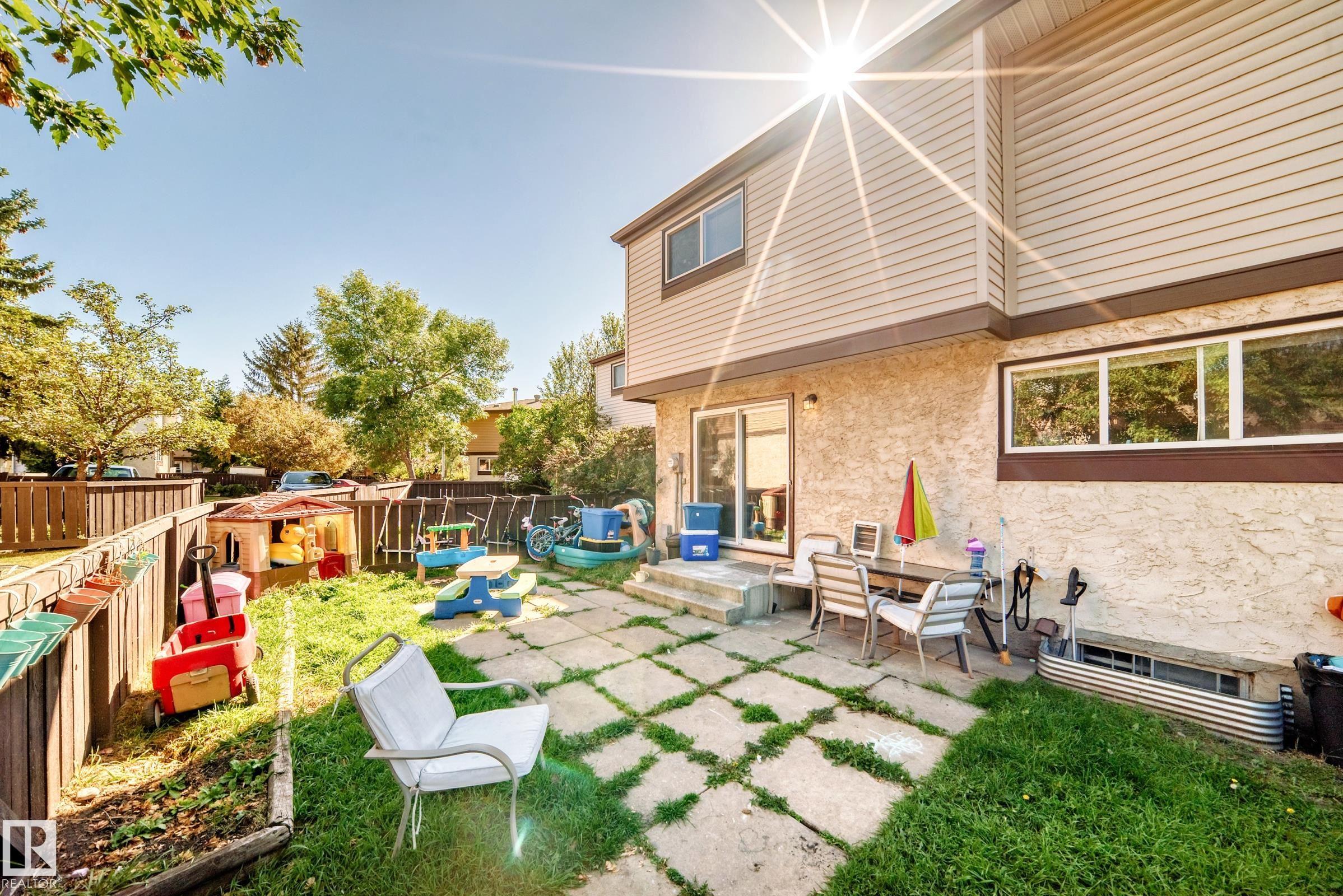 GREAT LOCATION!! This three bedroom, 1 & 1/2 bath townhouse has a large eat in kitchen with loads of counter space, and room for a sizable table. The living room is spacious with patio doors leading out into the private, fenced, outdoor space; half bath completes this level. Upstairs has a large primary suite, two additional bedrooms and a 4 piece bath. The basement is partially finished with loads of storage space. Parking stall right at your front door, close to schools, shopping, transit, and easy access to Anthony Henday. WELCOME HOME!!