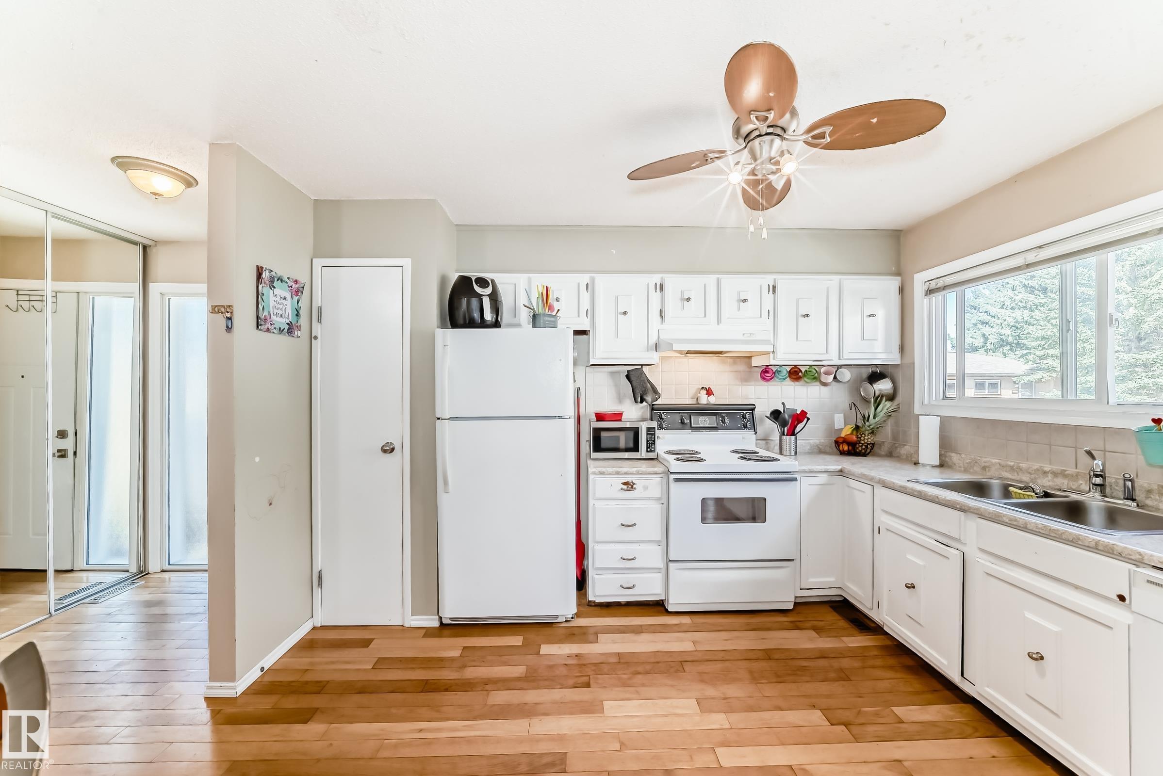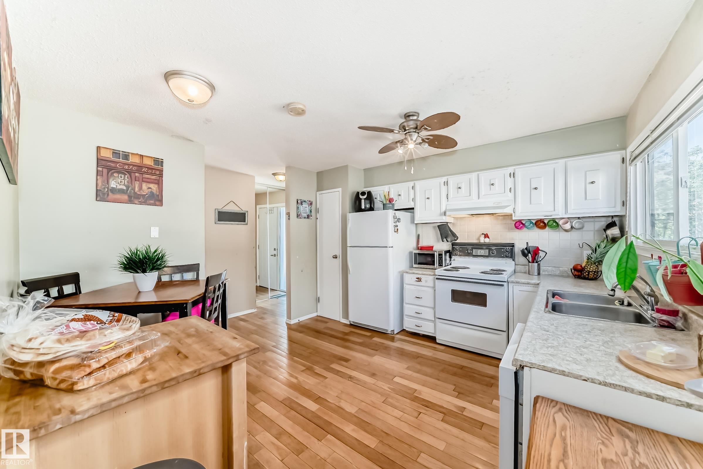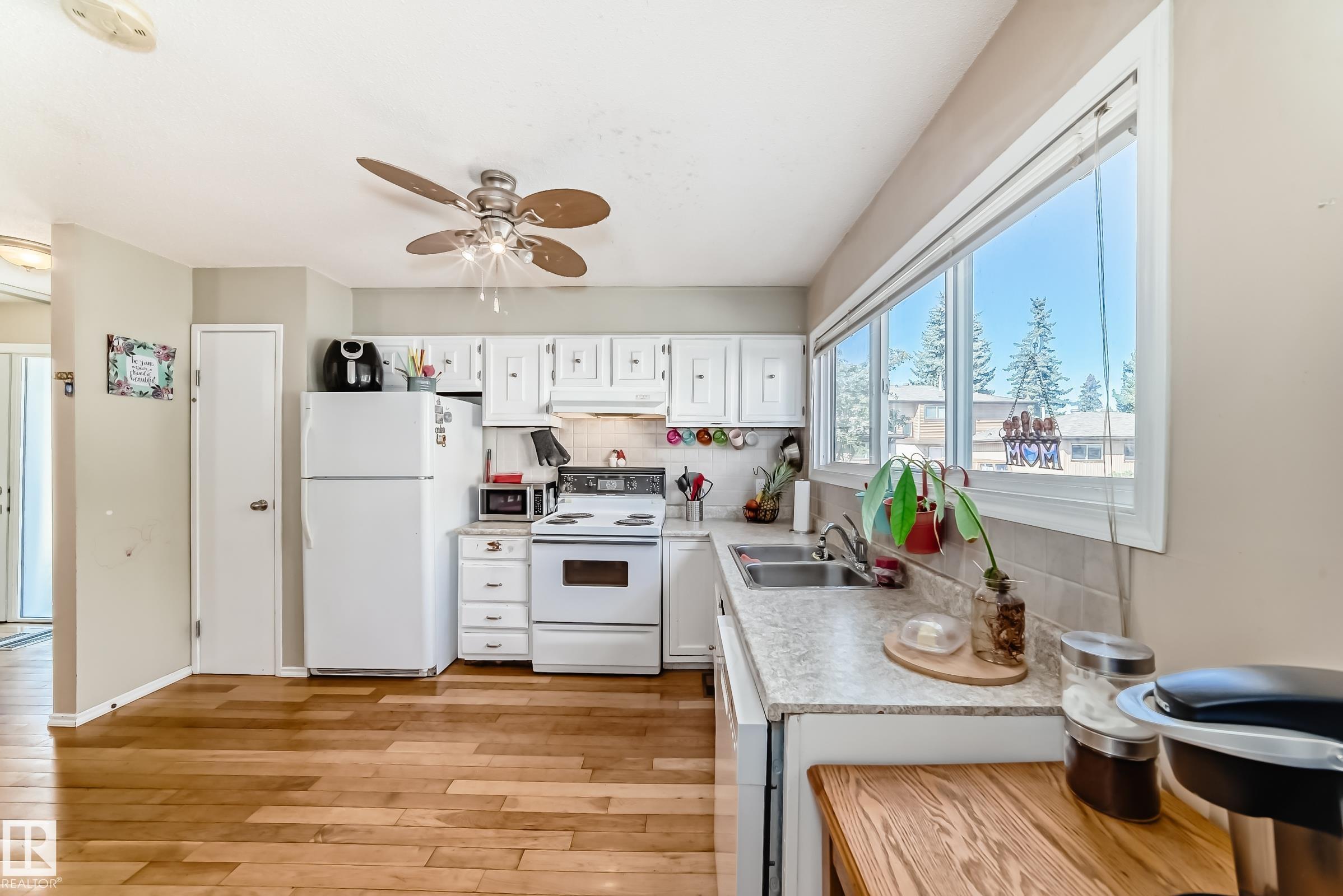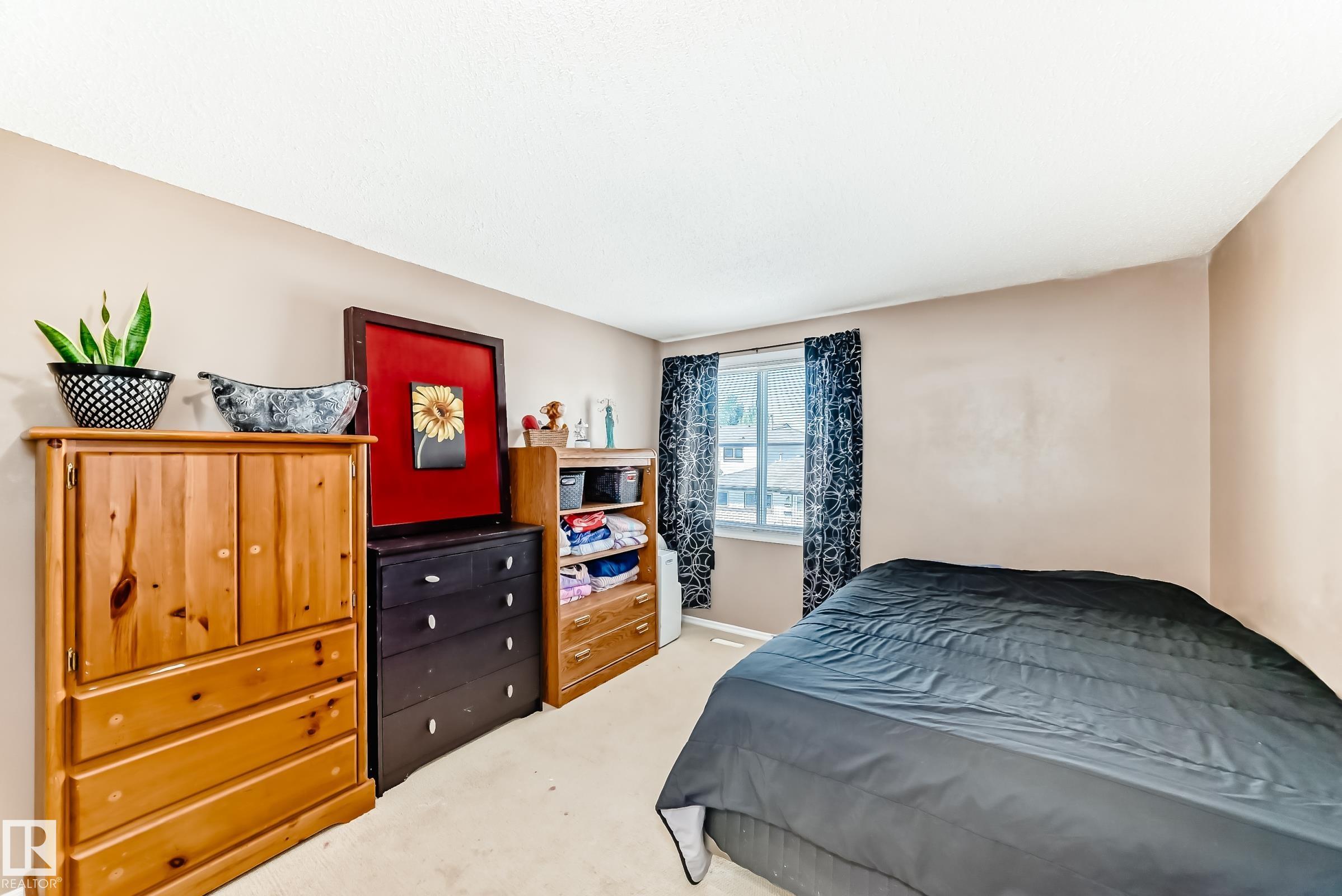 GREAT LOCATION!! This three bedroom, 1 & 1/2 bath townhouse has a large eat in kitchen with loads of counter space, and room for a sizable table. The living room is spacious with patio doors leading out into the private, fenced, outdoor space; half bath completes this level. Upstairs has a large primary suite, two additional bedrooms and a 4 piece bath. The basement is partially finished with loads of storage space. Parking stall right at your front door, close to schools, shopping, transit, and easy access to Anthony Henday. WELCOME HOME!!
