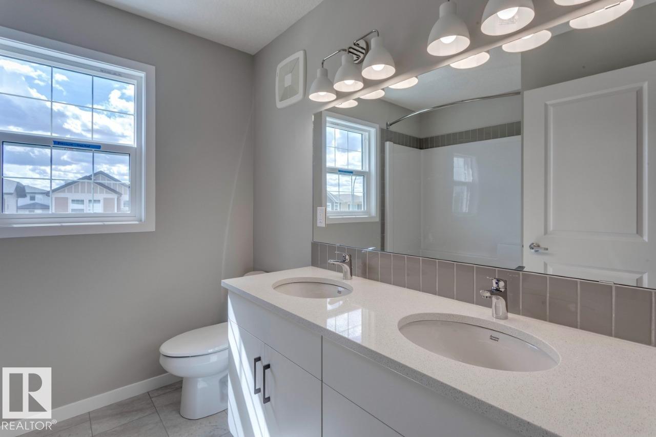 Discover the perfect blend of style and functionality in this stunning 3-bedroom, 2.5-bath home, ideally situated on a desirable corner lot. With a double attached garage and a separate entrance, this home offers both convenience and future flexibility. Step inside to find a spacious main floor featuring a versatile flex room ideal for a home office, playroom, or creative space. The upgraded kitchen impresses with modern touches including quartz countertops, stainless steel appliances, a chimney hood fan, built-in microwave, pot lights, and a sleek, functional layout designed for both cooking and entertaining. Upstairs, you'll enjoy large bedrooms, a dedicated entertainment room, and a full-size laundry room for ultimate everyday ease. The elegance continues with stair railings and quartz countertops in all full bathrooms. Retreat to the luxurious primary ensuite, featuring a fiberglass step-in shower with tile extended to the ceiling -- creating a spa-like atmosphere right at home.