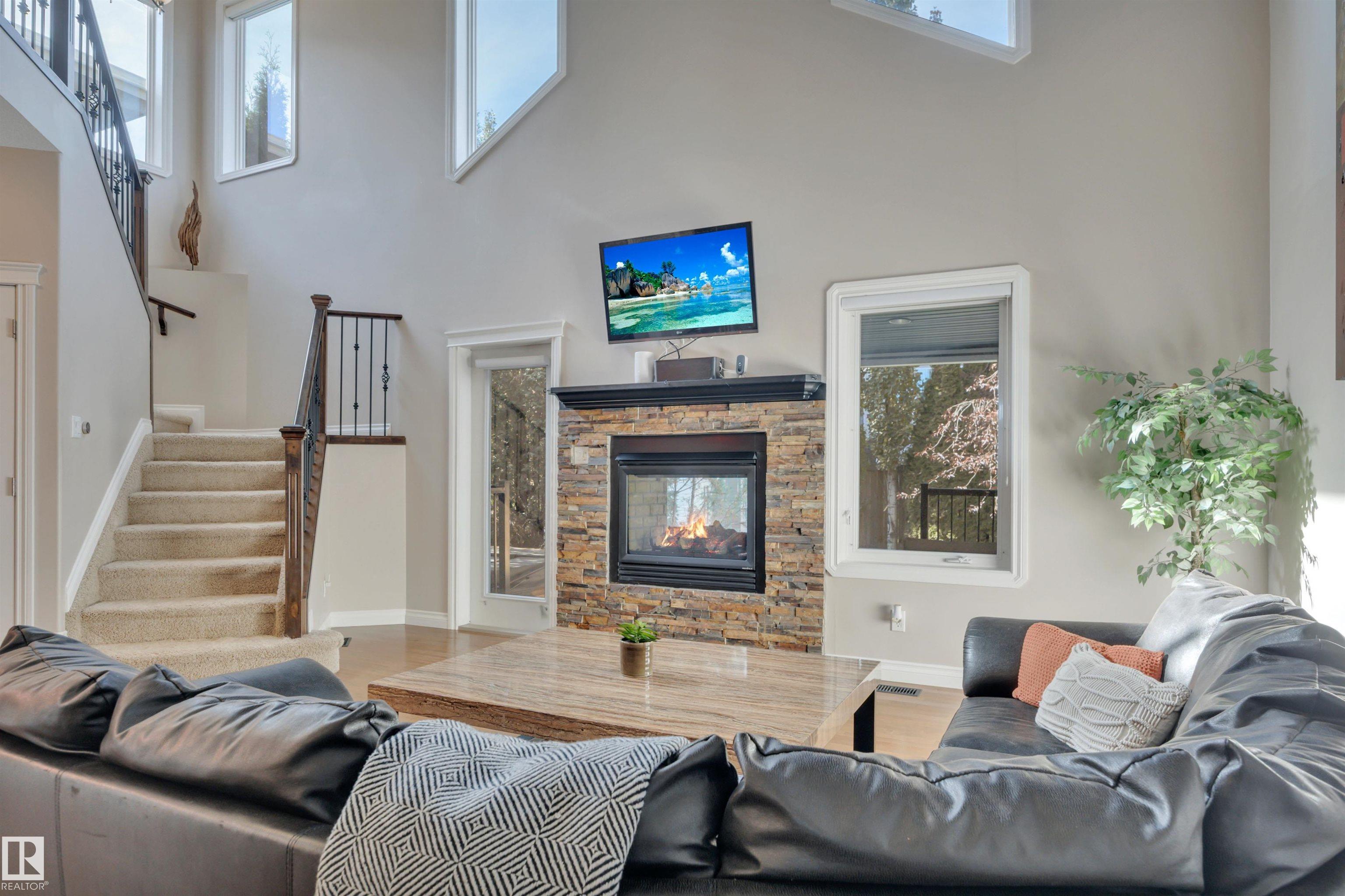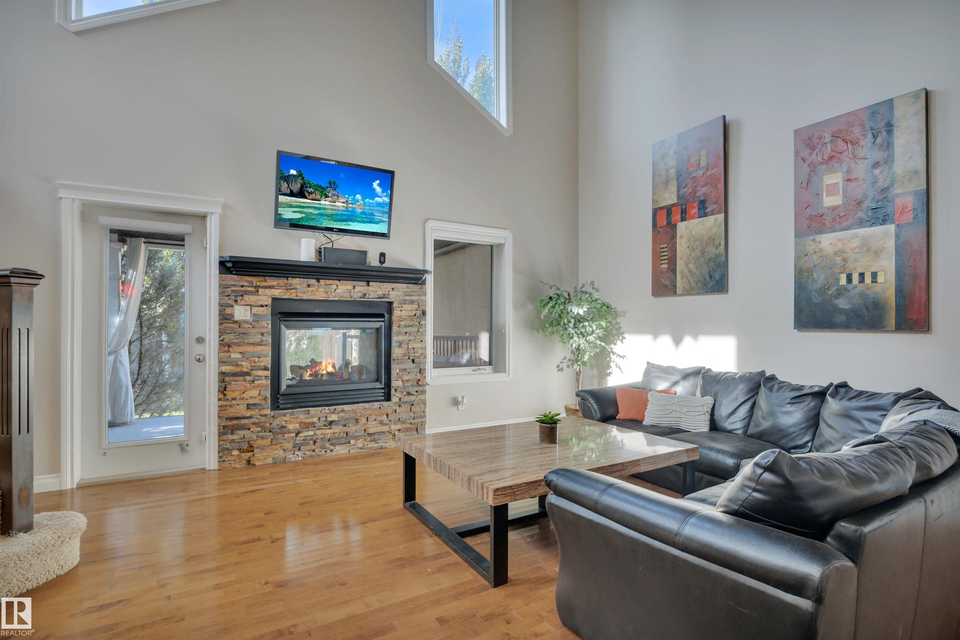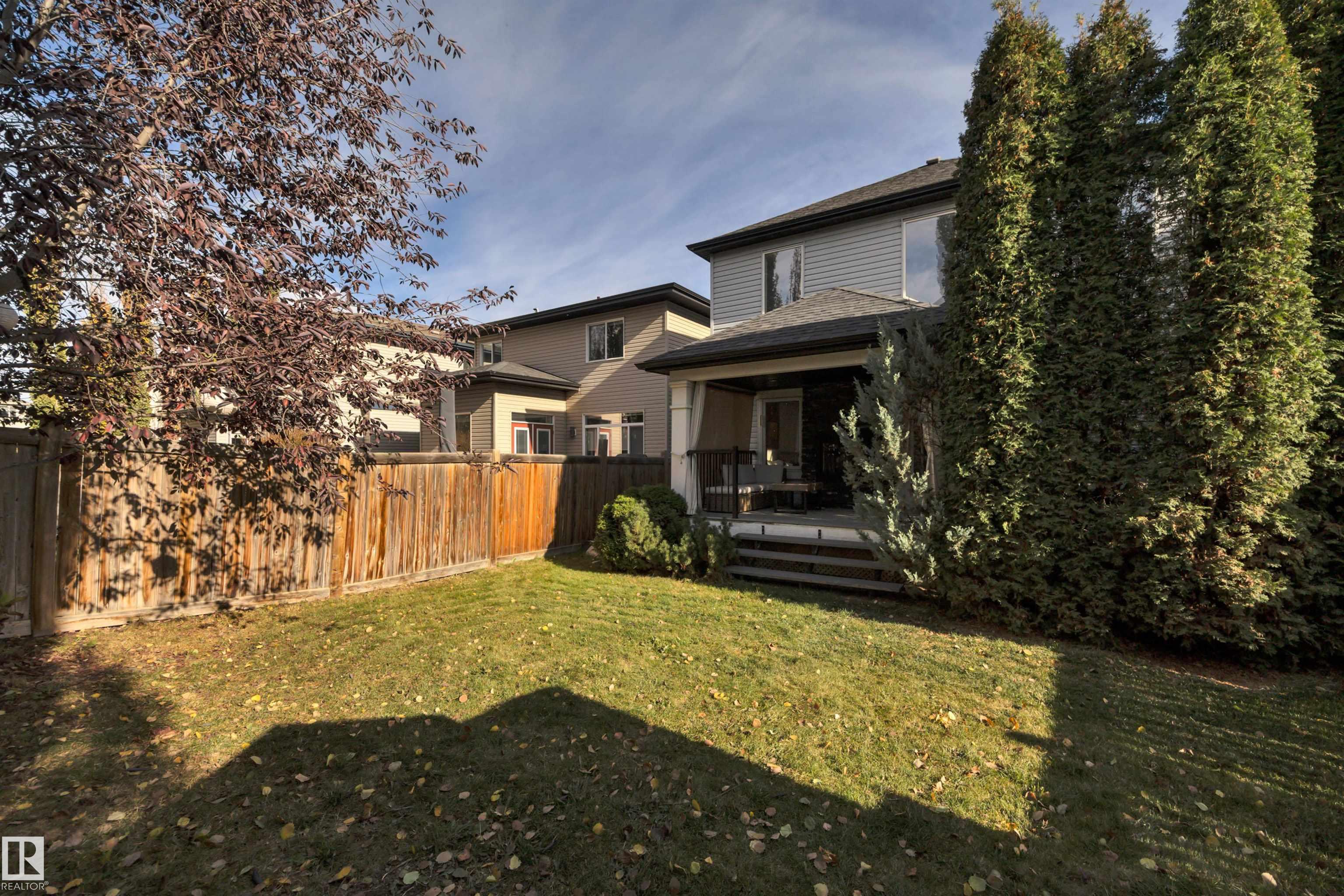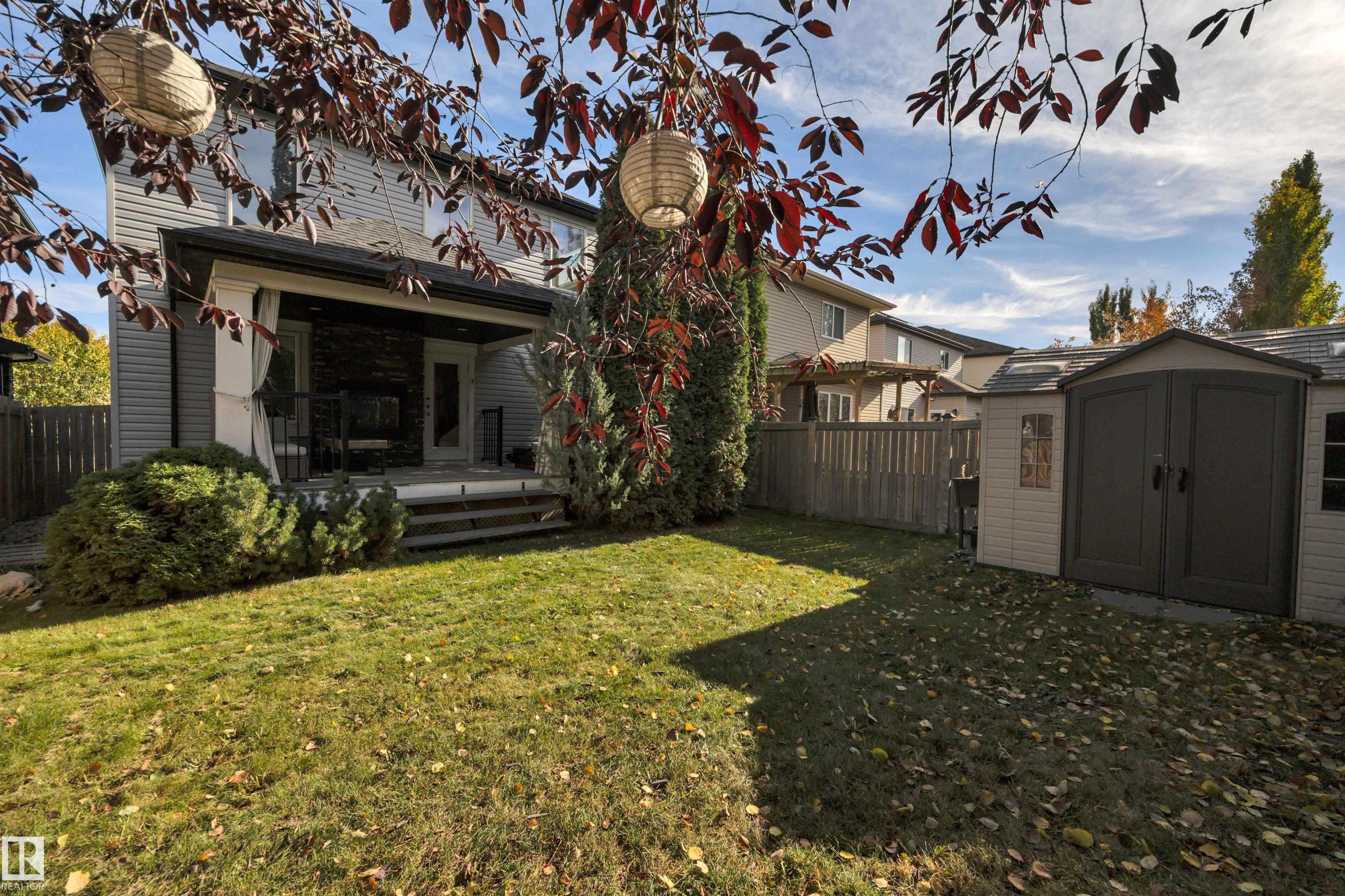 LOOKING FOR A FAMILY! THIS UPGRADED WEST END 2-storey w/ a FULLY FINISHED BASEMENT in a SWEET LOCATION is a PERFECT FAMILY HOME. Granite and quartz countertops throughout plus hardwood on the main floor. A GREAT room that features an 18' high vaulted ceiling with a 2-way indoor/outdoor fireplace. CENTRAL A/C and custom electric blinds round out this beautiful space. Garden doors lead to a PRIVATE covered deck & a treed fenced backyard that is very easy to care for. Natural gas BBQ line and a SALT WATER ARCTIC SPA hot tub (2020) make this living space perfect for quiet coffees and entertaining alike. 3 bedrooms upstairs and a GORGEOUS PERMITTED BASEMENT with a crazy beautiful WET BAR, built-in surround sound speakers & a THIRD FULL BATH. NEW LG app controlled WASHER/DRYER on pedestals w/ storage. Garage boasts a 7' high door and can fit a FULL SIZED TRUCK and a DRAIN. Family friendly community w/ a BRAND NEW RECREATION centre a few blocks away & TWO newer K-9 Schools! Ponds/trails/playgrounds/shopping.