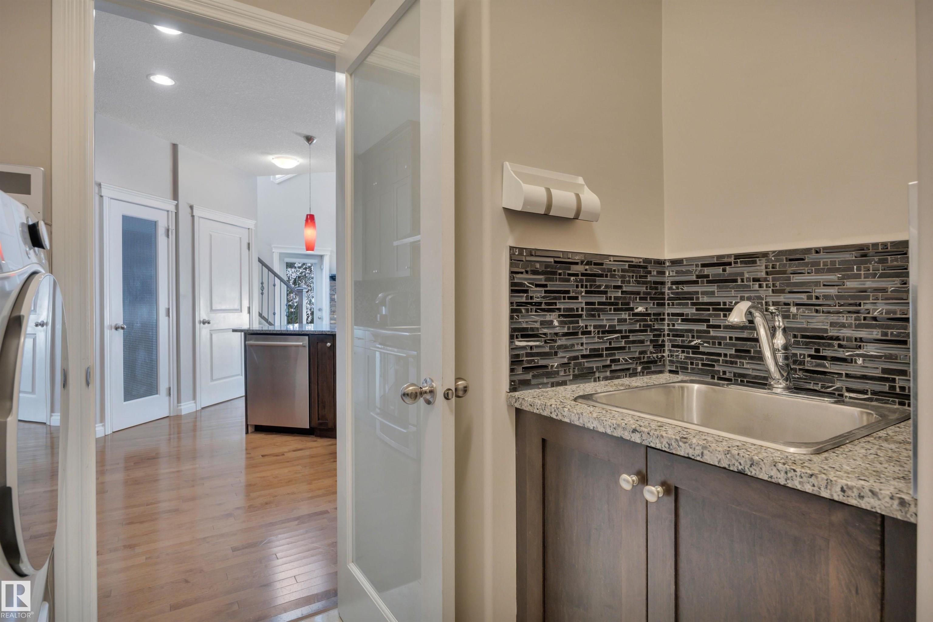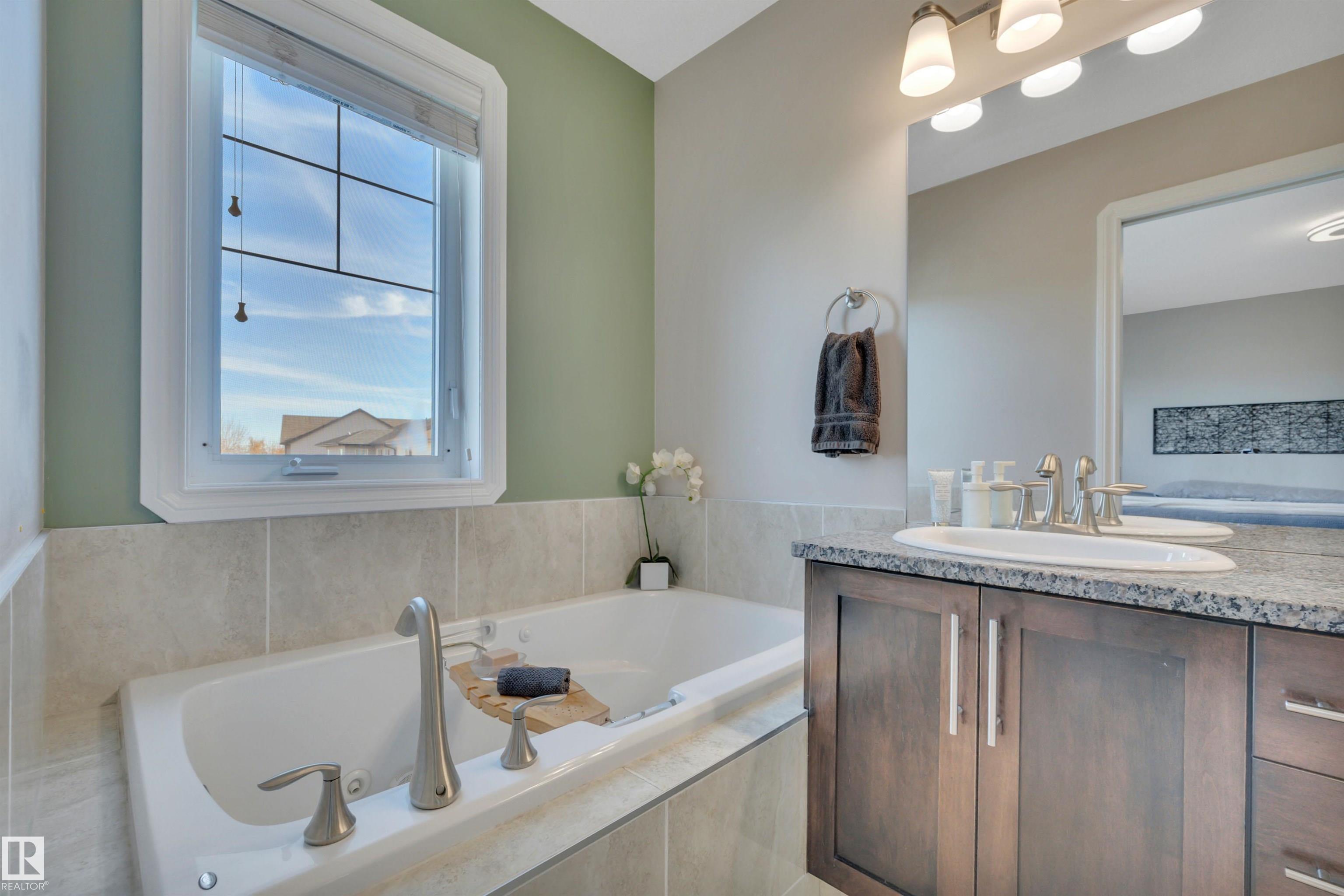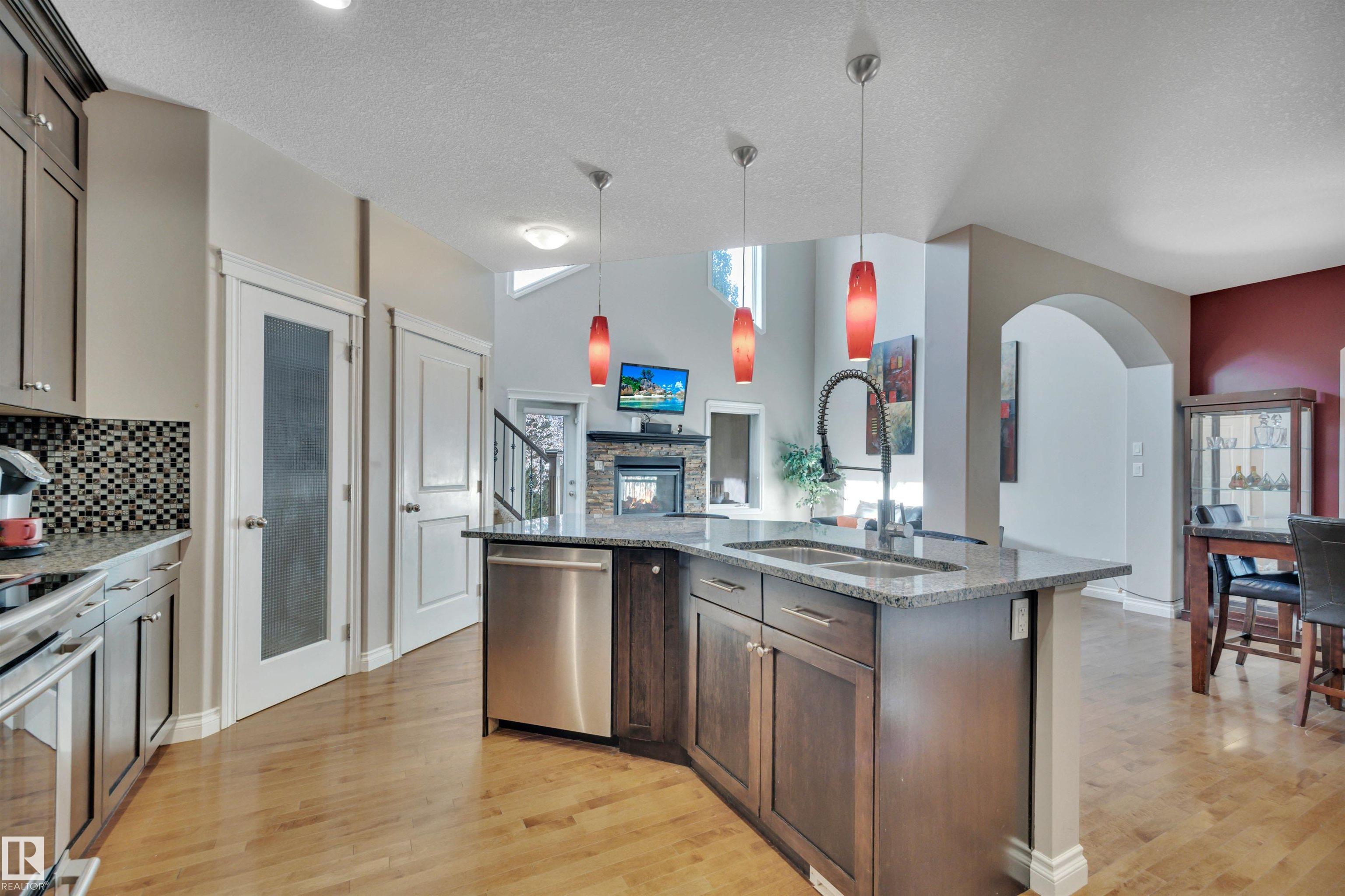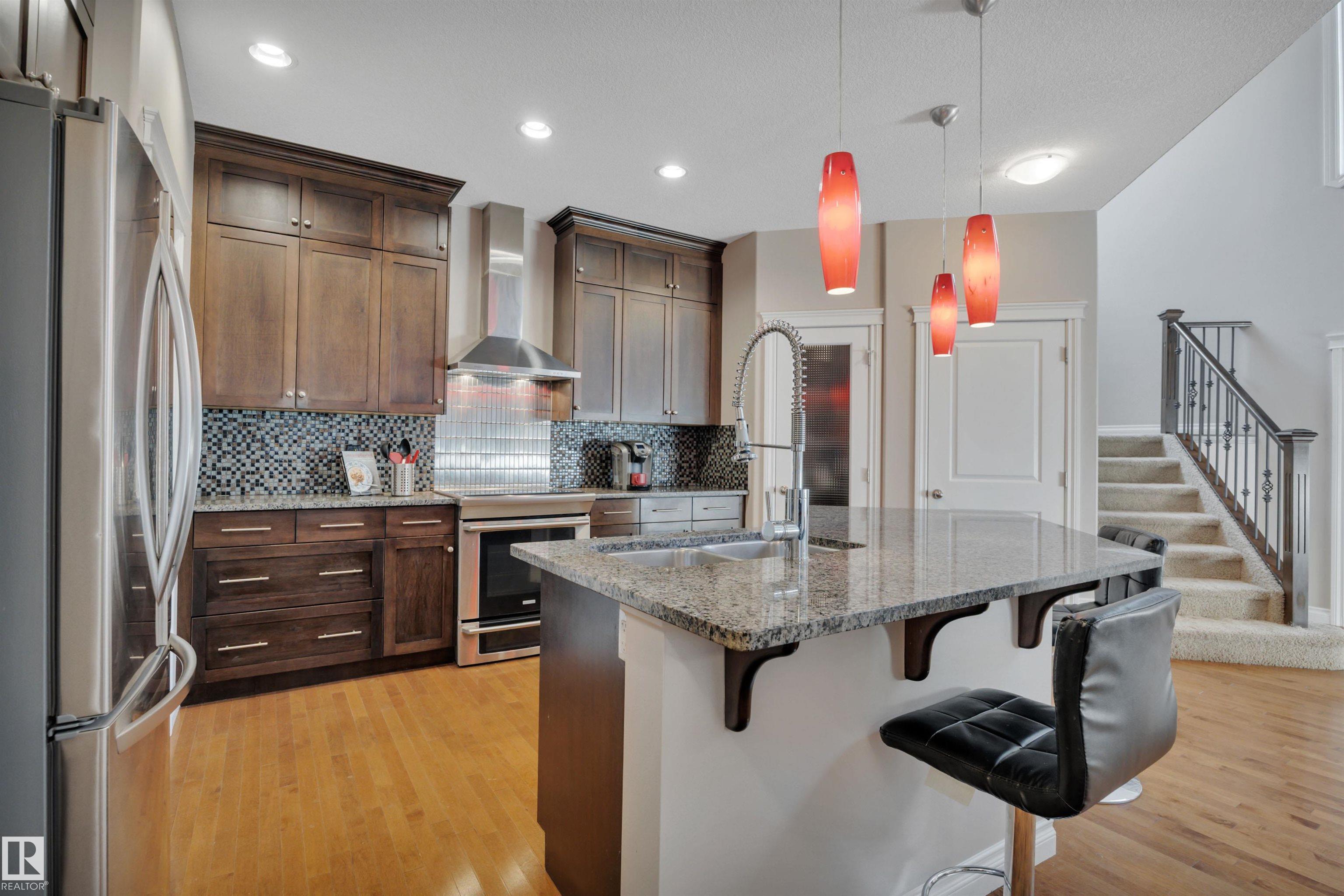 LOOKING FOR A FAMILY! THIS UPGRADED WEST END 2-storey w/ a FULLY FINISHED BASEMENT in a SWEET LOCATION is a PERFECT FAMILY HOME. Granite and quartz countertops throughout plus hardwood on the main floor. A GREAT room that features an 18' high vaulted ceiling with a 2-way indoor/outdoor fireplace. CENTRAL A/C and custom electric blinds round out this beautiful space. Garden doors lead to a PRIVATE covered deck & a treed fenced backyard that is very easy to care for. Natural gas BBQ line and a SALT WATER ARCTIC SPA hot tub (2020) make this living space perfect for quiet coffees and entertaining alike. 3 bedrooms upstairs and a GORGEOUS PERMITTED BASEMENT with a crazy beautiful WET BAR, built-in surround sound speakers & a THIRD FULL BATH. NEW LG app controlled WASHER/DRYER on pedestals w/ storage. Garage boasts a 7' high door and can fit a FULL SIZED TRUCK and a DRAIN. Family friendly community w/ a BRAND NEW RECREATION centre a few blocks away & TWO newer K-9 Schools! Ponds/trails/playgrounds/shopping.