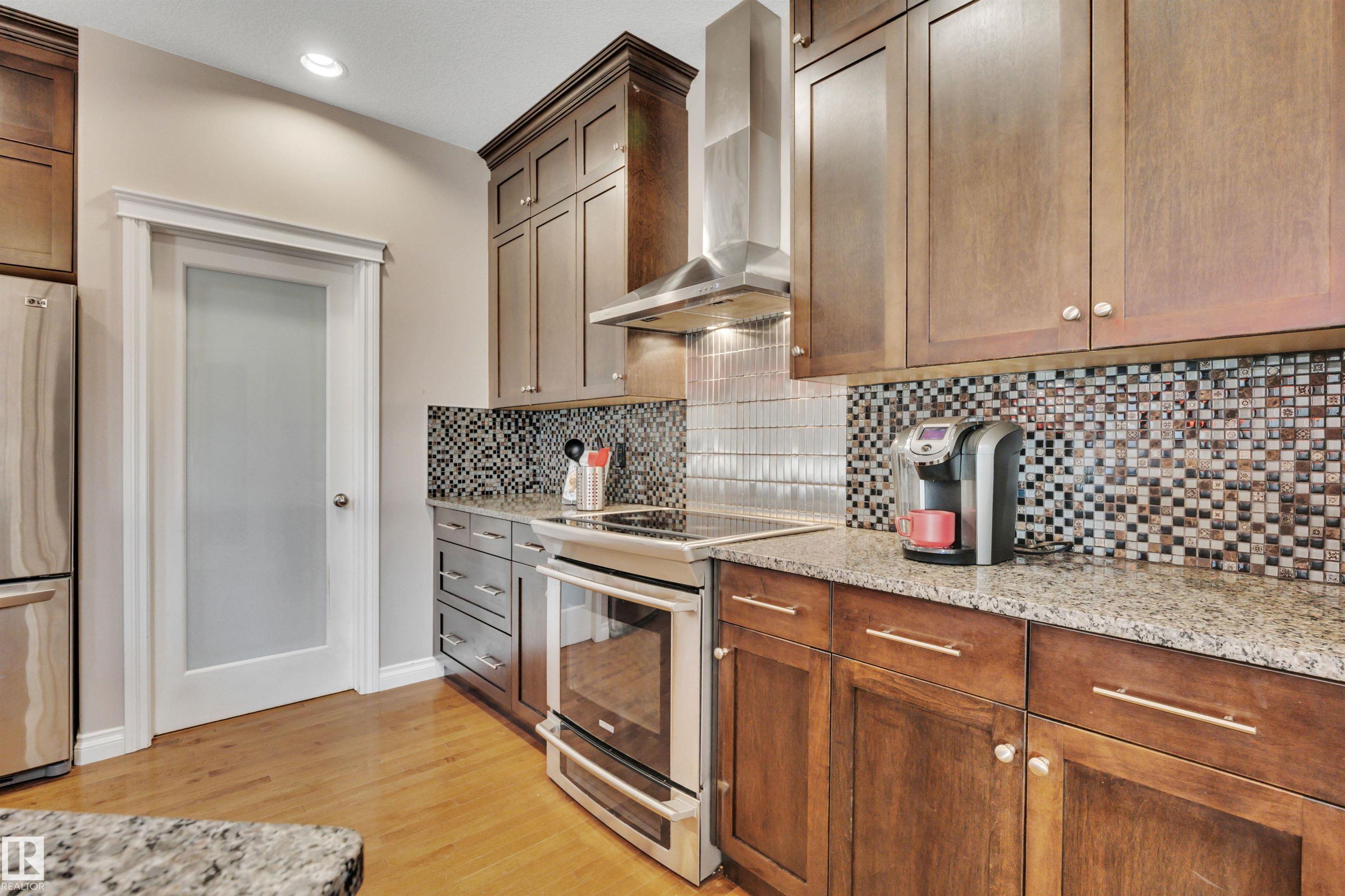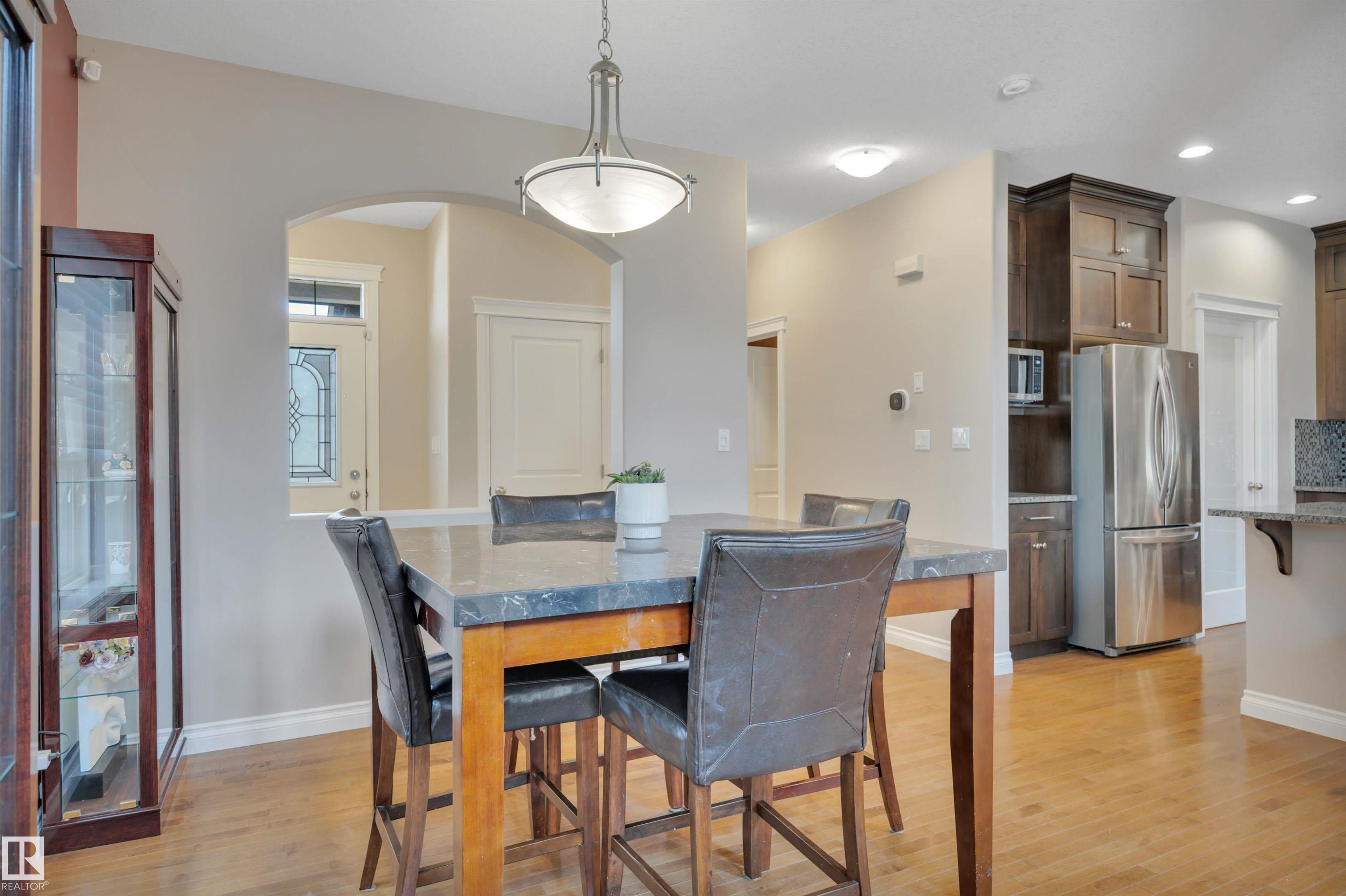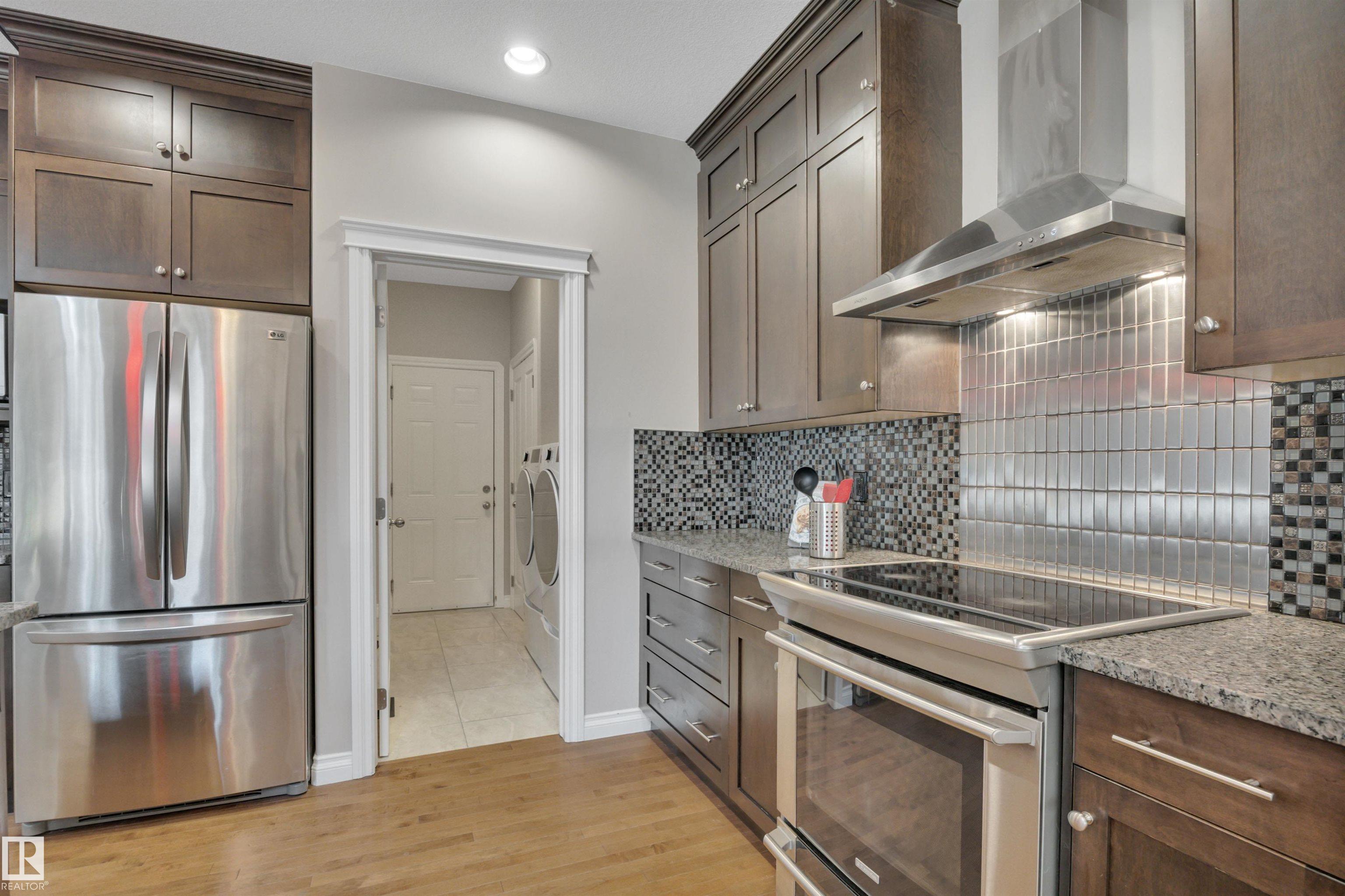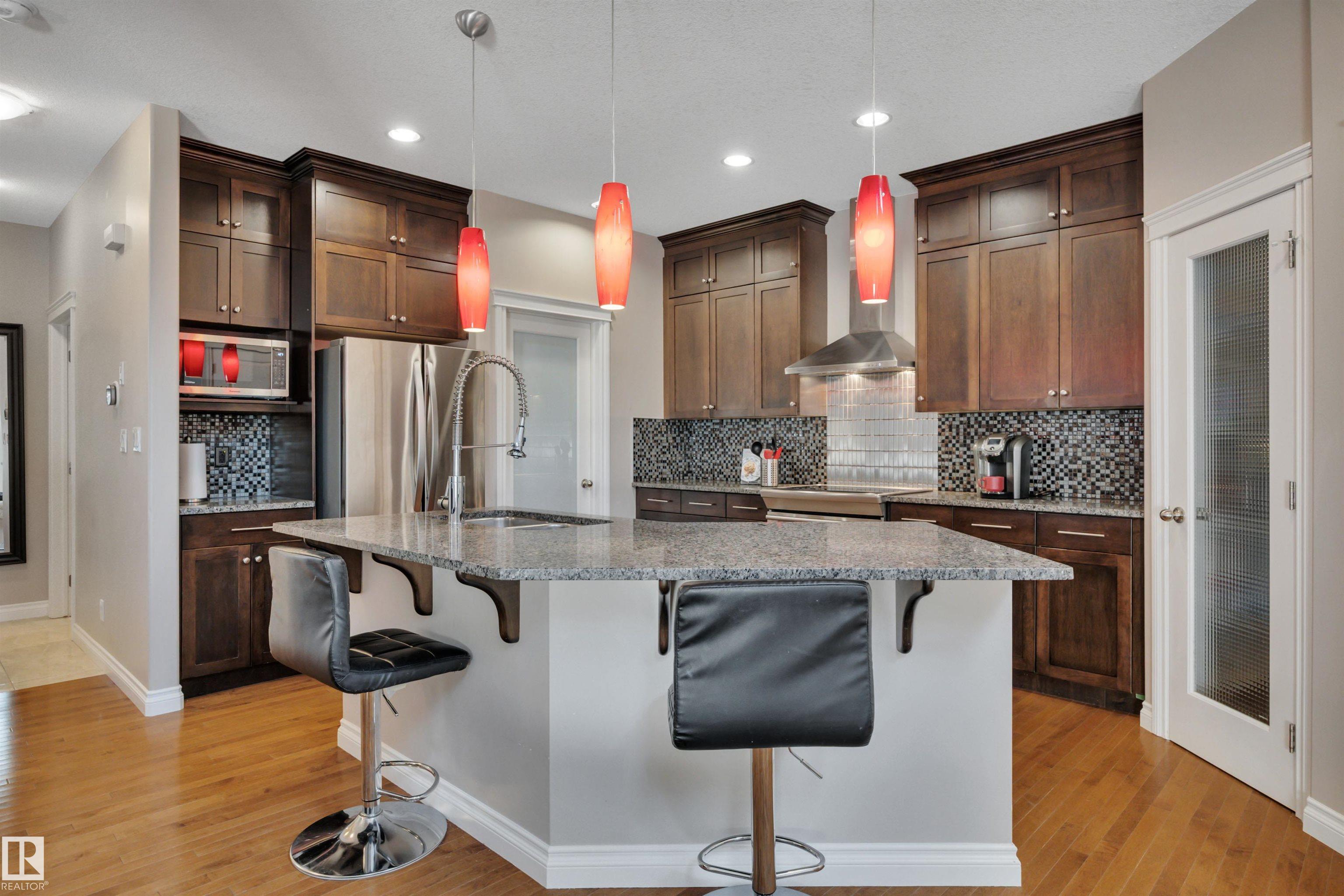LOOKING FOR A FAMILY! THIS UPGRADED WEST END 2-storey w/ a FULLY FINISHED BASEMENT in a SWEET LOCATION is a PERFECT FAMILY HOME. Granite and quartz countertops throughout plus hardwood on the main floor. A GREAT room that features an 18' high vaulted ceiling with a 2-way indoor/outdoor fireplace. CENTRAL A/C and custom electric blinds round out this beautiful space. Garden doors lead to a PRIVATE covered deck & a treed fenced backyard that is very easy to care for. Natural gas BBQ line and a SALT WATER ARCTIC SPA hot tub (2020) make this living space perfect for quiet coffees and entertaining alike. 3 bedrooms upstairs and a GORGEOUS PERMITTED BASEMENT with a crazy beautiful WET BAR, built-in surround sound speakers & a THIRD FULL BATH. NEW LG app controlled WASHER/DRYER on pedestals w/ storage. Garage boasts a 7' high door and can fit a FULL SIZED TRUCK and a DRAIN. Family friendly community w/ a BRAND NEW RECREATION centre a few blocks away & TWO newer K-9 Schools! Ponds/trails/playgrounds/shopping.