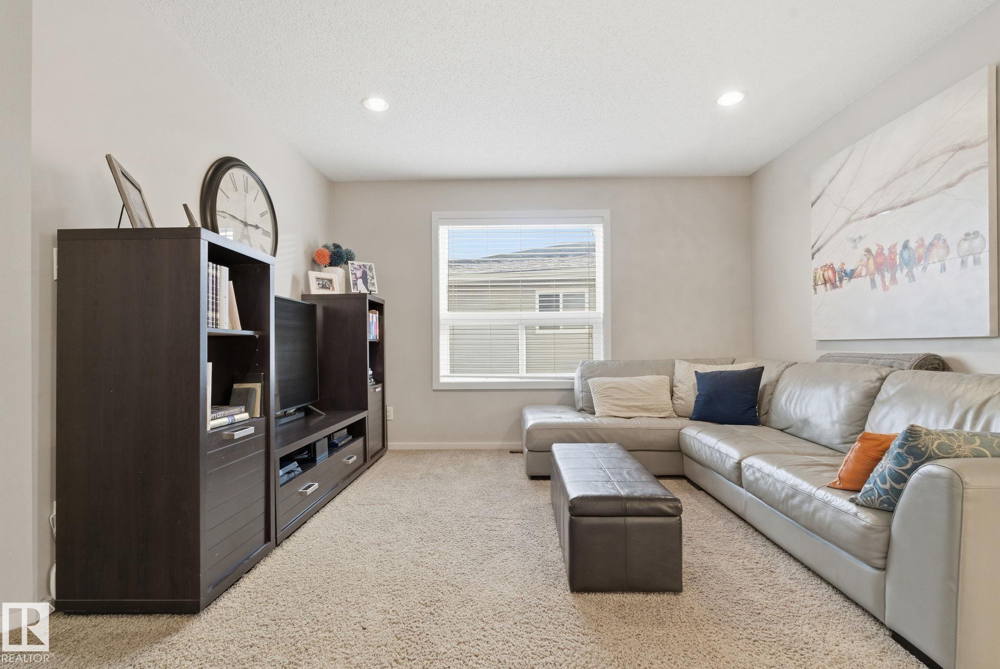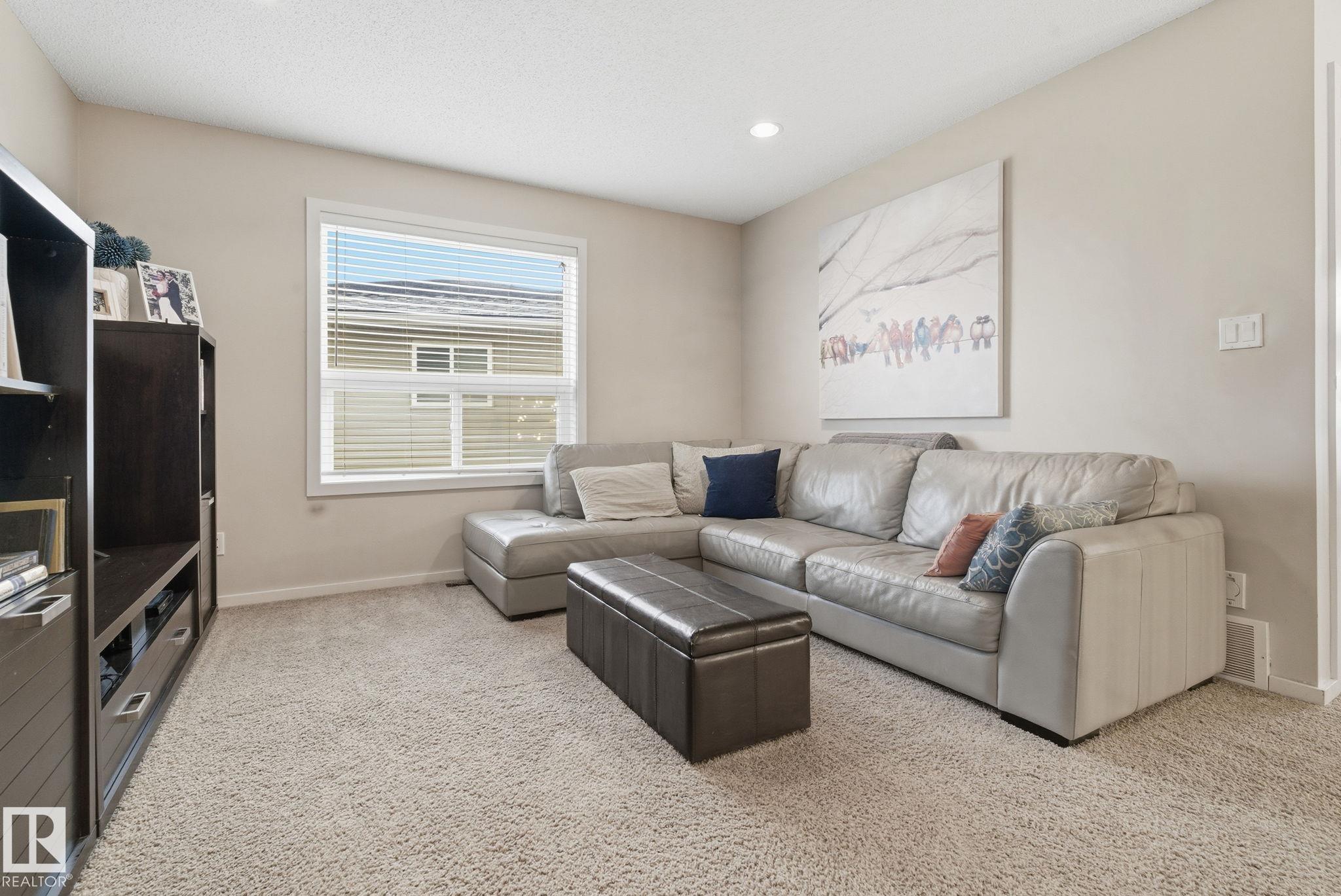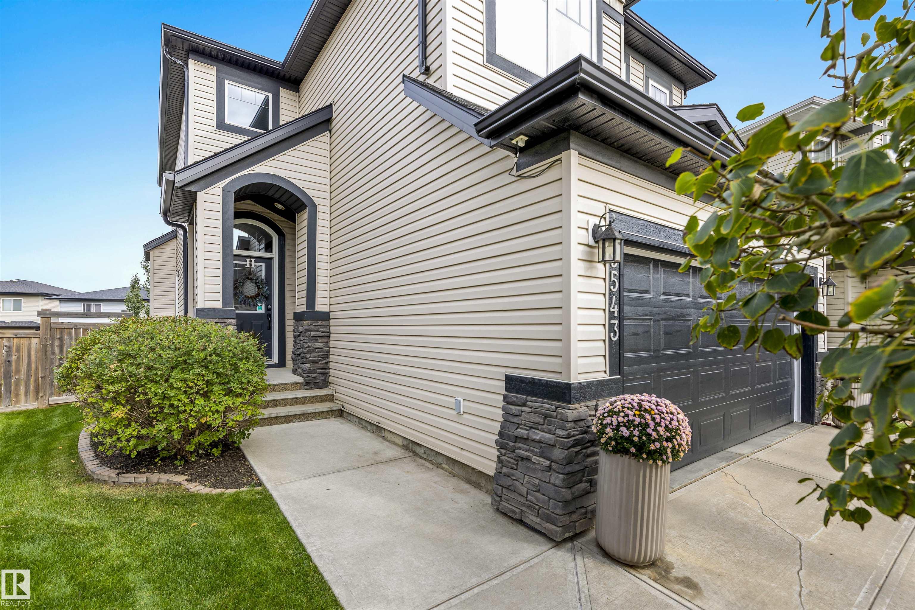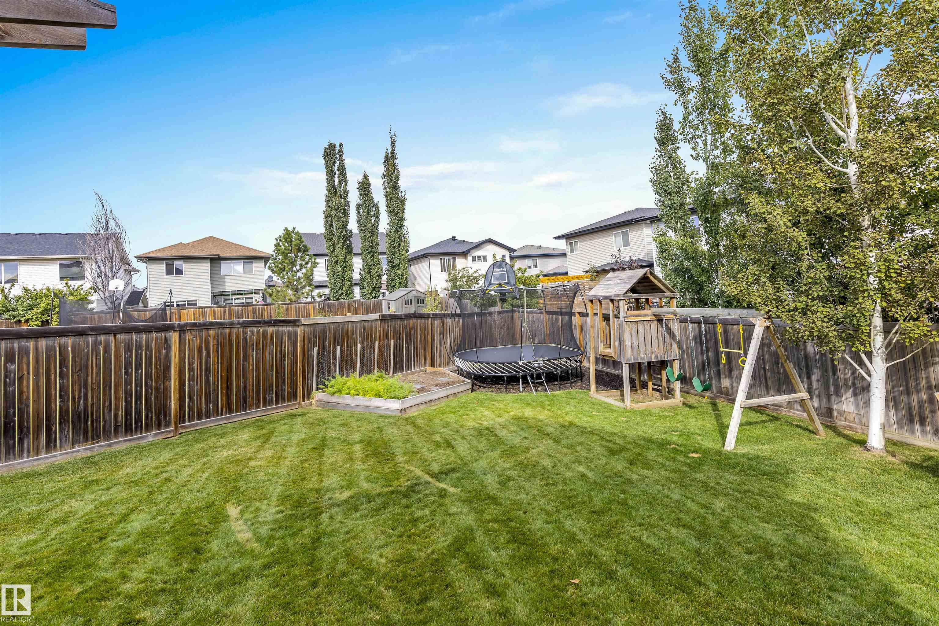 Absolutely stunning home on a big PIE lot! Great open layout- gorgeous kitchen with cabinets all the way up the 9' ceilings, 8' granite island, stainless appliances including new range & walk through pantry to the garage. Currently set up for a large dining table by the cozy gas fireplace & a bright sitting area at the back of the home, but easily switched for a larger living room on the main floor & a table in the nook. The patio door leads out to an incredible yard with an elevated deck, pergola, hot tub & beautifully landscaped paving stone & lush irrigated green oasis! Upstairs are 3 good sized bedrooms, 2 full baths & a central bonus room to separate the bedrooms. The primary has a great walk-in closet & tile & glass shower with quartz counters. The basement is fully finished with a 4th bedroom, 3rd full bathroom & a good sized family room. Quiet street with excellent neighbours, close to walking trails, parks, Public & Catholic schools & Lewis Farms Rec Centre. Central A/C & HWT 2022