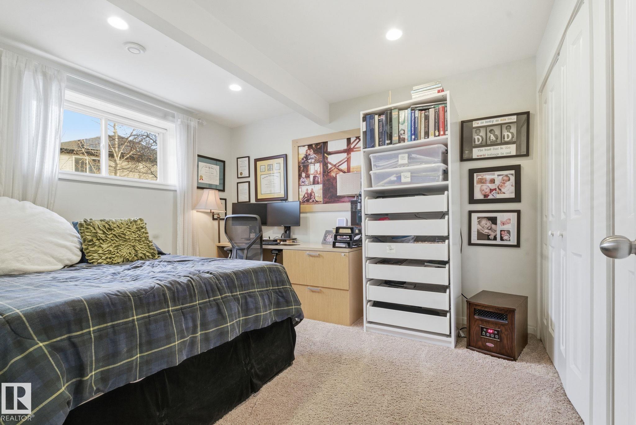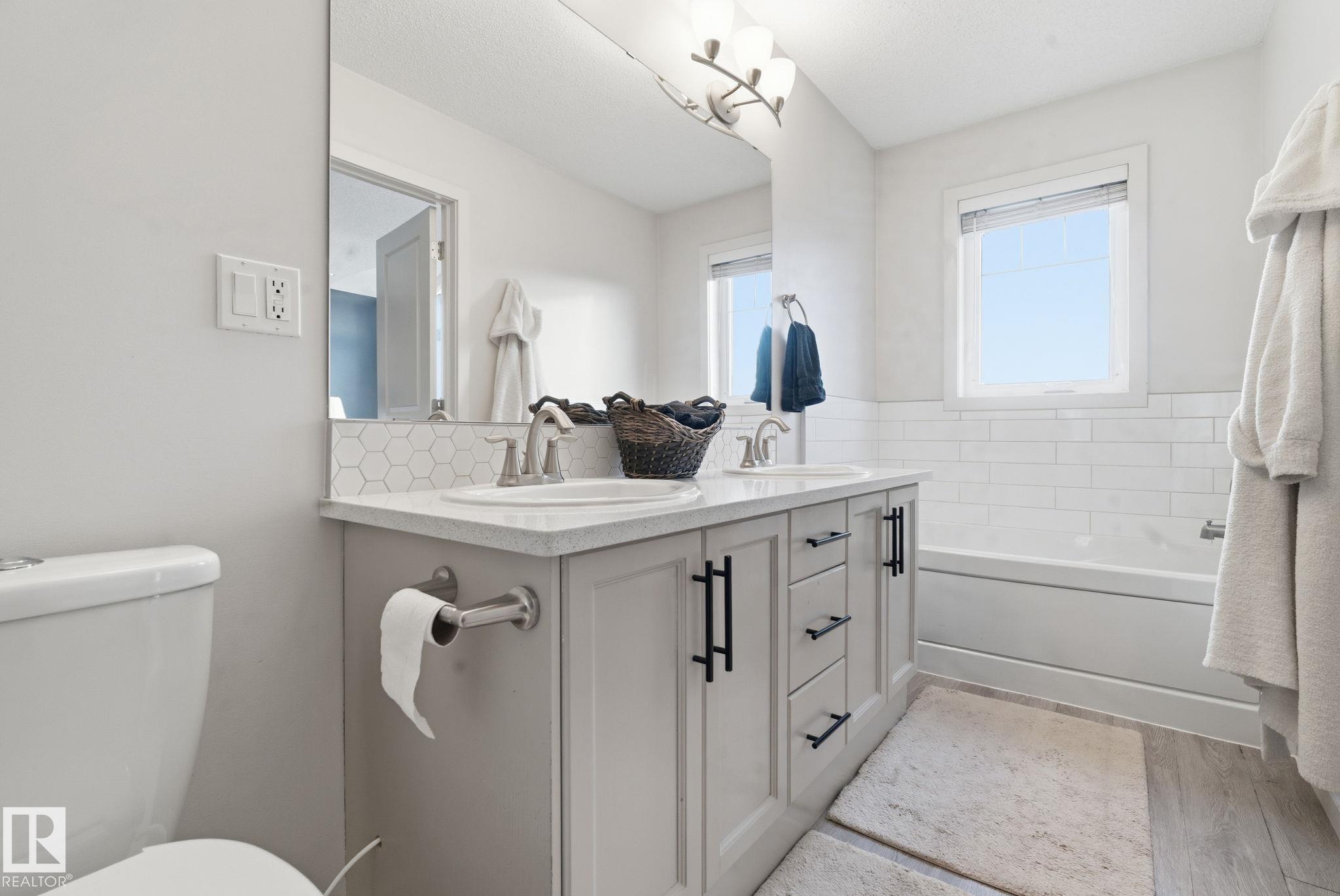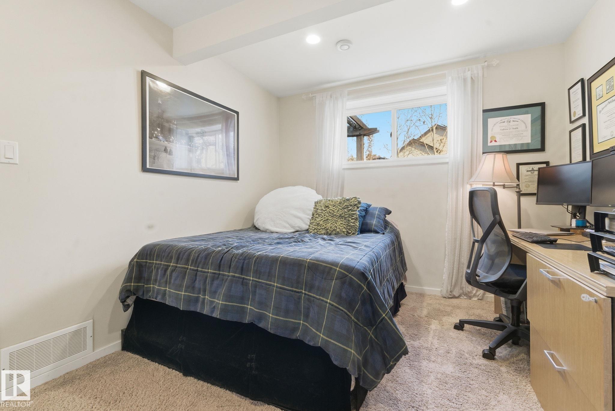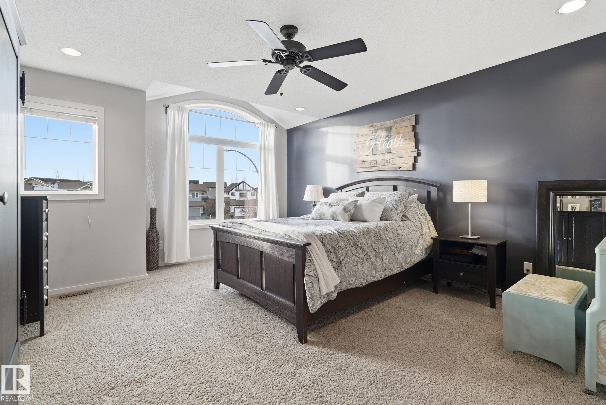 Absolutely stunning home on a big PIE lot! Great open layout- gorgeous kitchen with cabinets all the way up the 9' ceilings, 8' granite island, stainless appliances including new range & walk through pantry to the garage. Currently set up for a large dining table by the cozy gas fireplace & a bright sitting area at the back of the home, but easily switched for a larger living room on the main floor & a table in the nook. The patio door leads out to an incredible yard with an elevated deck, pergola, hot tub & beautifully landscaped paving stone & lush irrigated green oasis! Upstairs are 3 good sized bedrooms, 2 full baths & a central bonus room to separate the bedrooms. The primary has a great walk-in closet & tile & glass shower with quartz counters. The basement is fully finished with a 4th bedroom, 3rd full bathroom & a good sized family room. Quiet street with excellent neighbours, close to walking trails, parks, Public & Catholic schools & Lewis Farms Rec Centre. Central A/C & HWT 2022
