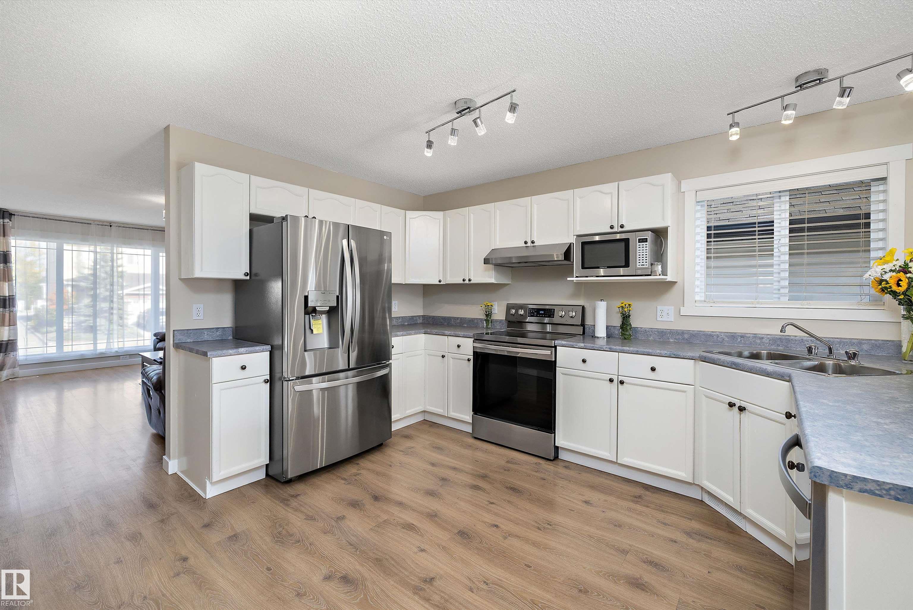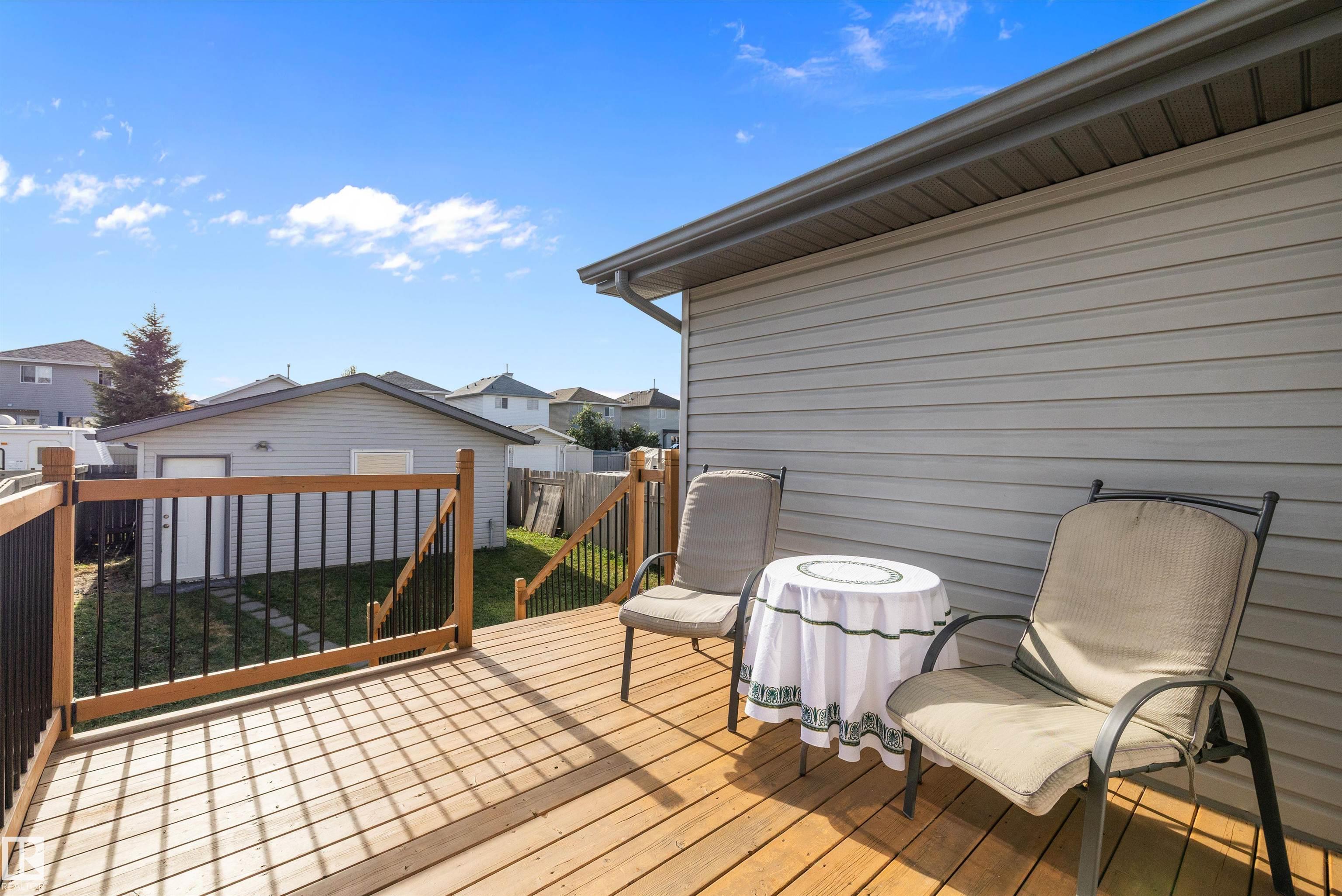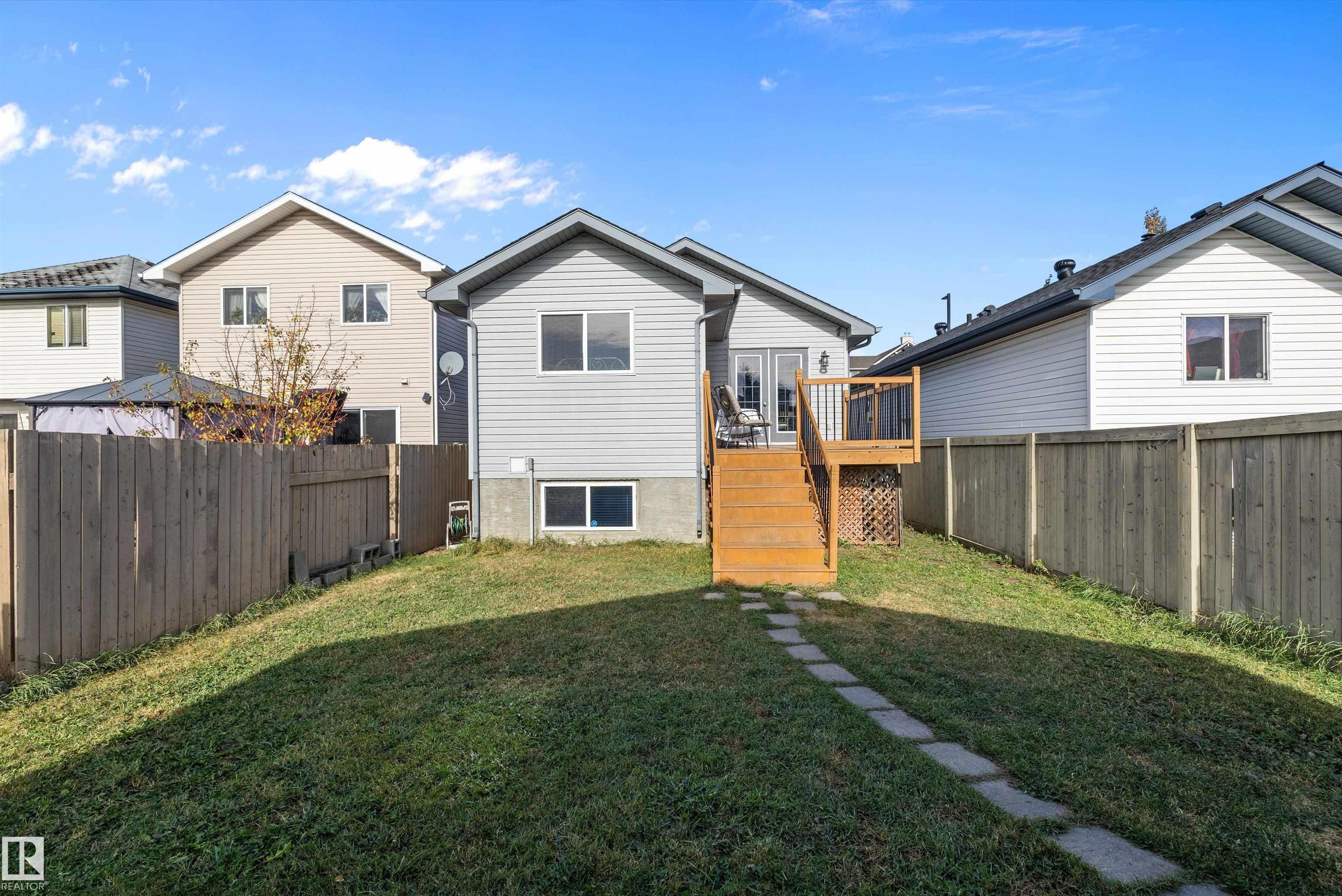 Welcome to this charming bi level home with AIR CONDITIONING in desireable SILVERBERRY. Main level features a large living room with large window, making this a bright space . Beautiful white cabinetry and stainless steel appliances with loads of storage and counter space overlooking the eating area with patio doors leading to back yards are sure to please. Large master bedroom with walk-in closet and 2nd bedroom and 4 piece bath, completes the main floor. The basement has 2 more large bedrooms, a 4-piece bath, and a large recreation area for everyone to enjoy. The south-facing backyard is fenced and features a large sunny deck, fenced yard, and a double detached garage. Move right in and enjoy!