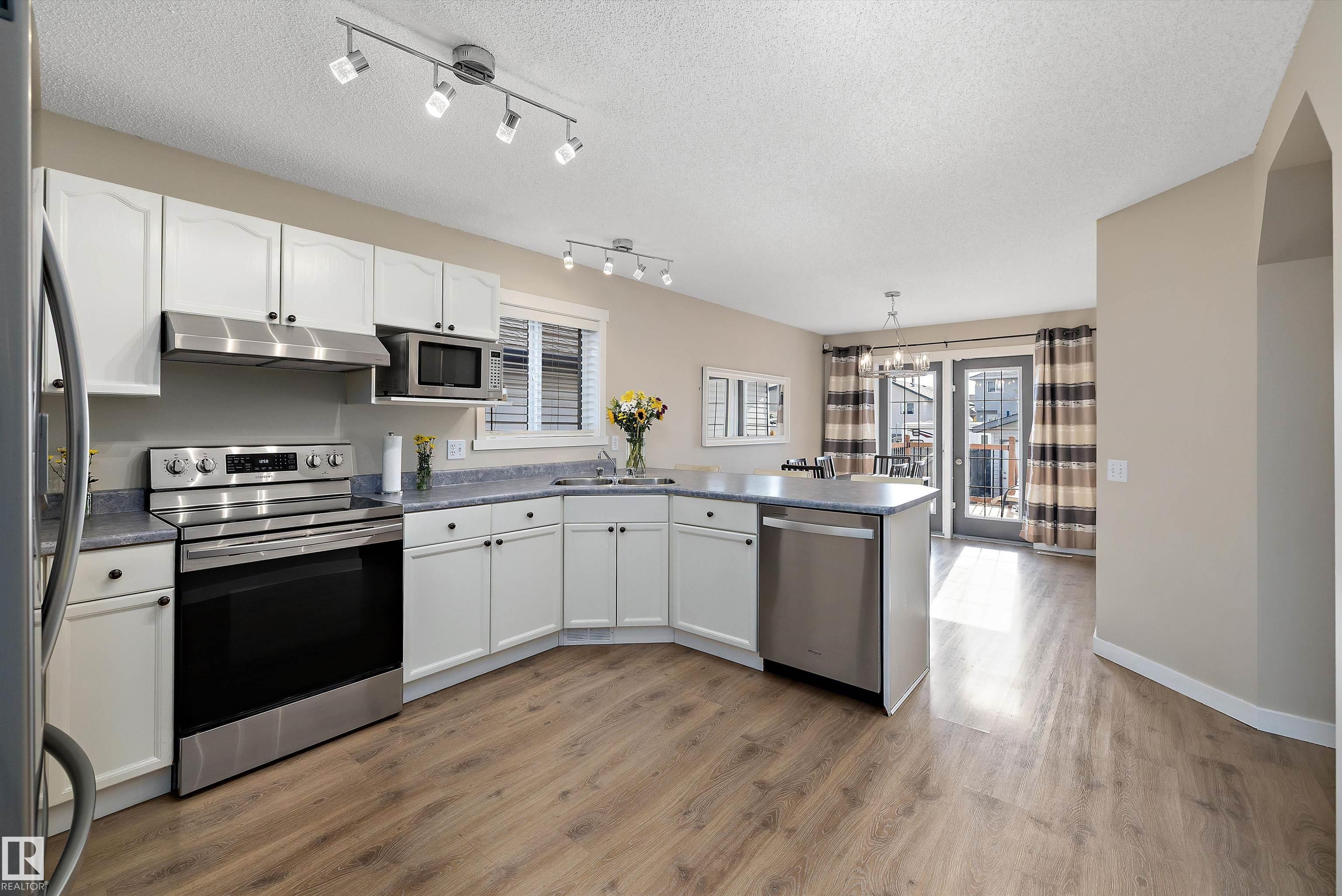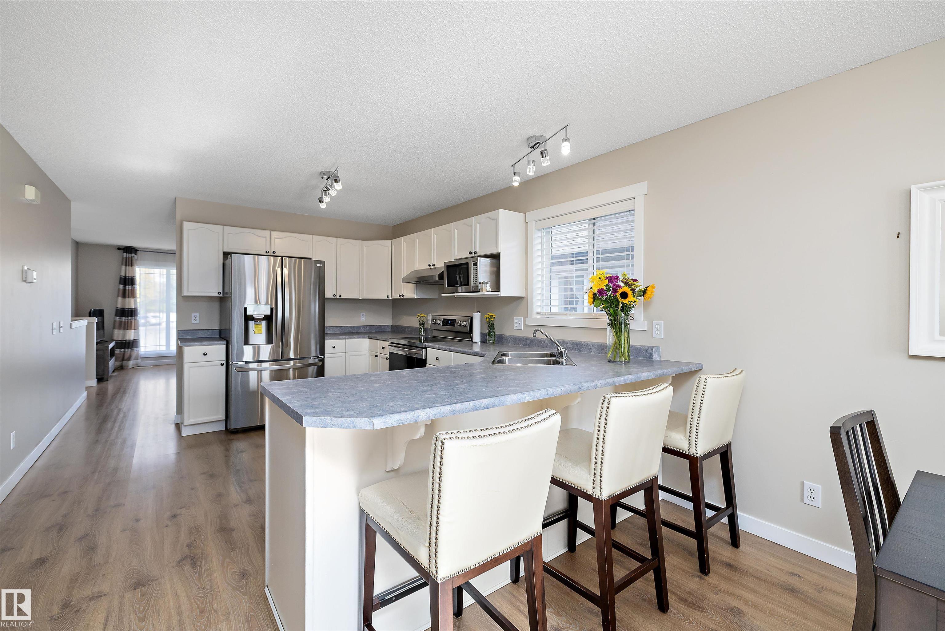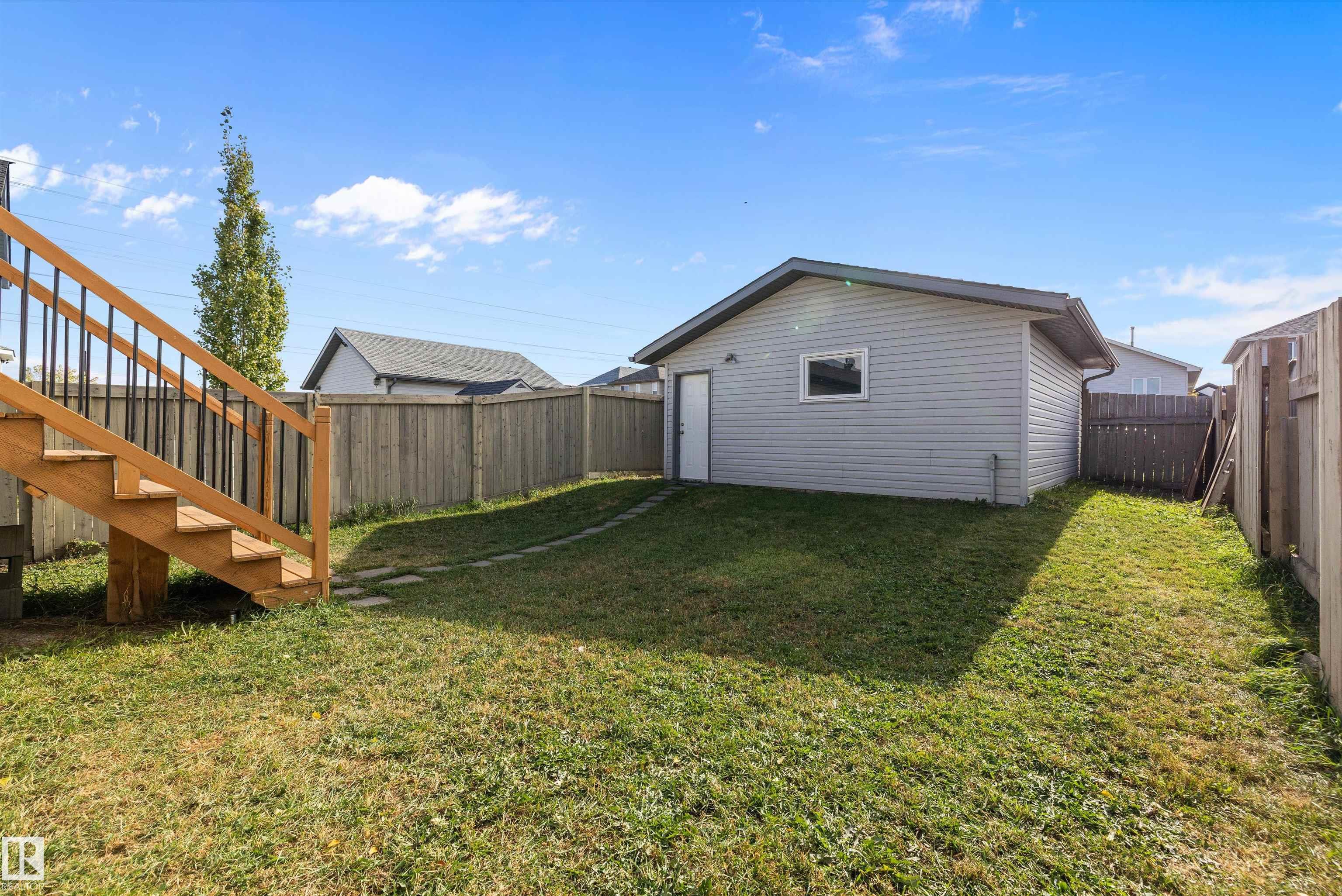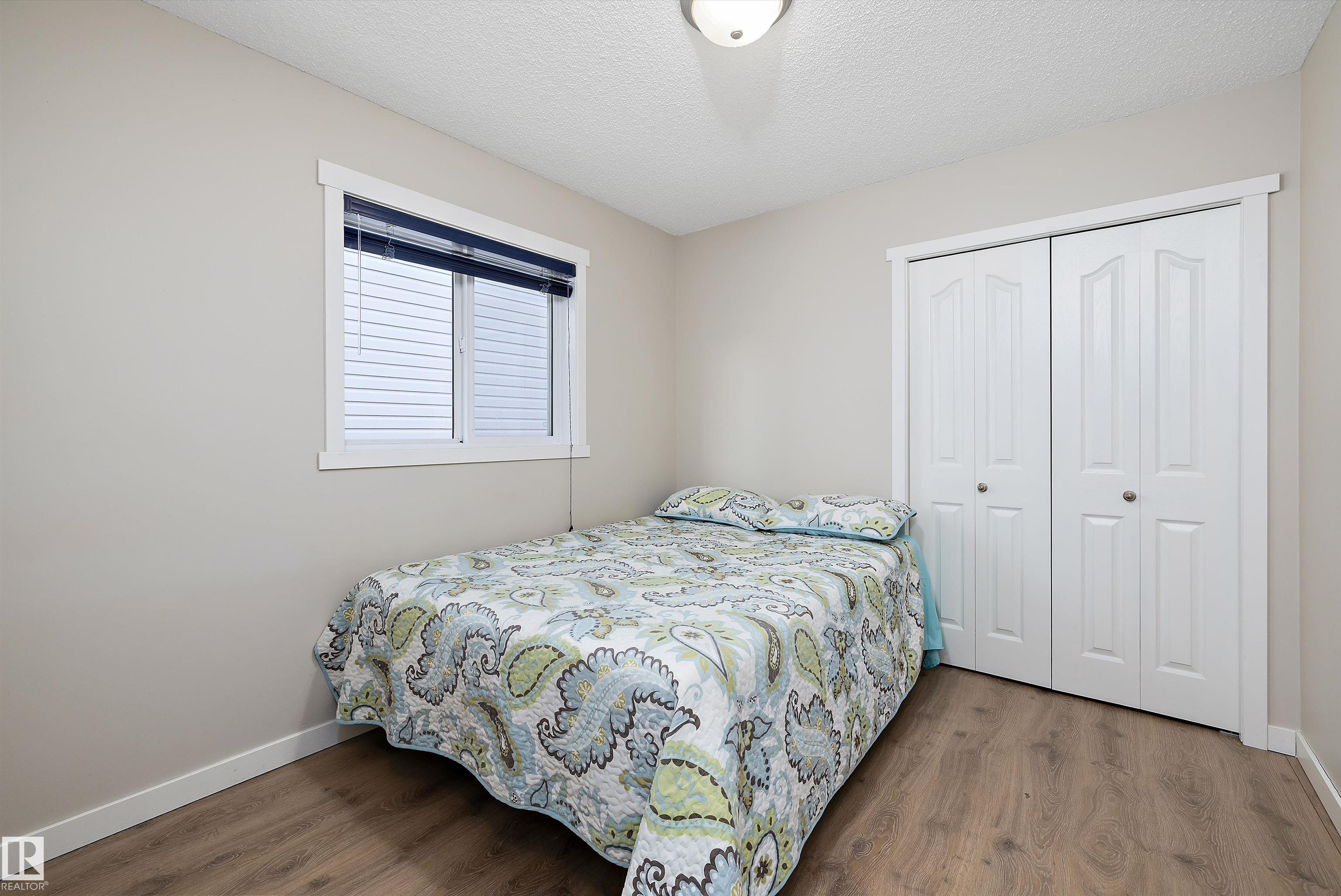 Welcome to this charming bi level home with AIR CONDITIONING in desireable SILVERBERRY. Main level features a large living room with large window, making this a bright space . Beautiful white cabinetry and stainless steel appliances with loads of storage and counter space overlooking the eating area with patio doors leading to back yards are sure to please. Large master bedroom with walk-in closet and 2nd bedroom and 4 piece bath, completes the main floor. The basement has 2 more large bedrooms, a 4-piece bath, and a large recreation area for everyone to enjoy. The south-facing backyard is fenced and features a large sunny deck, fenced yard, and a double detached garage. Move right in and enjoy!