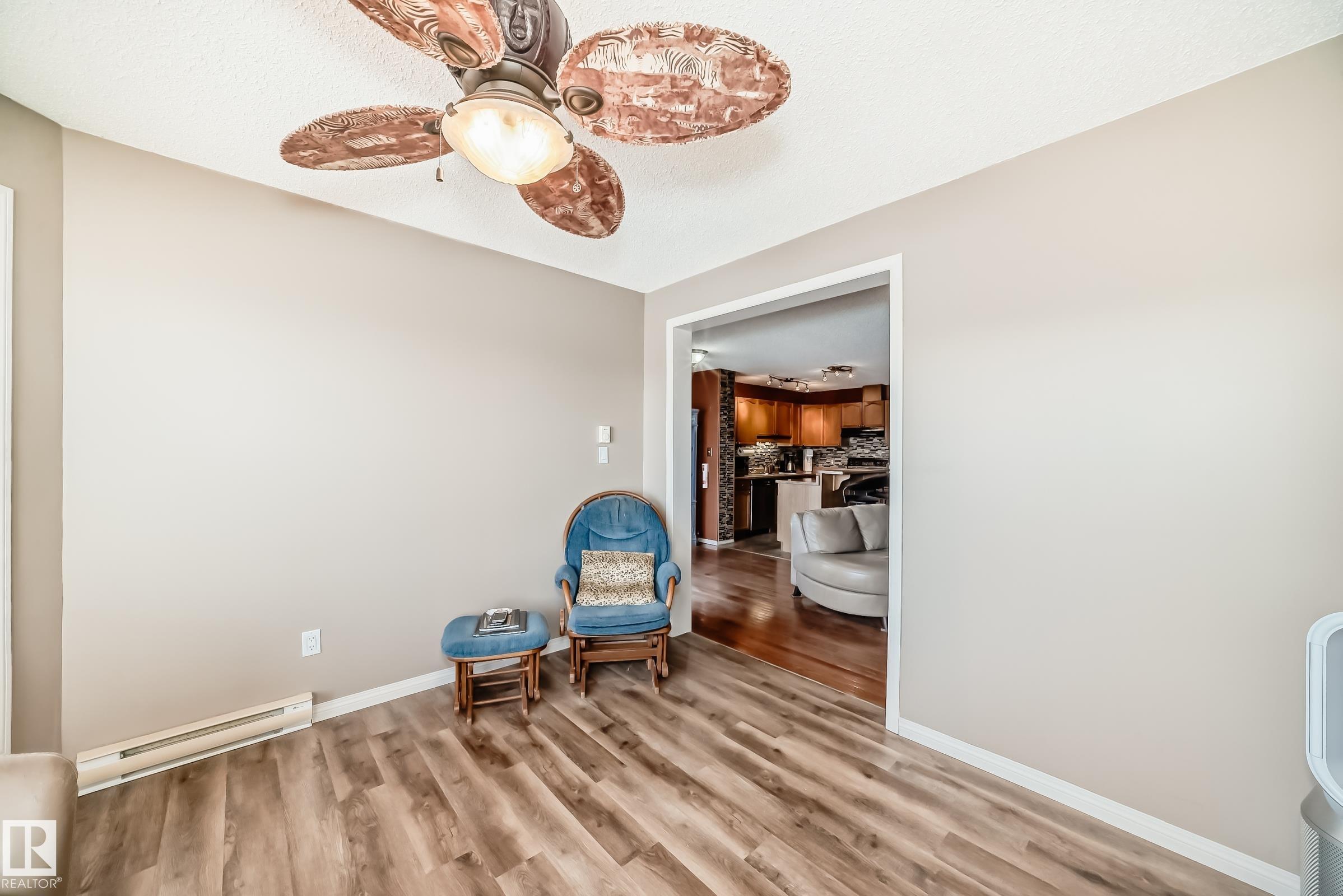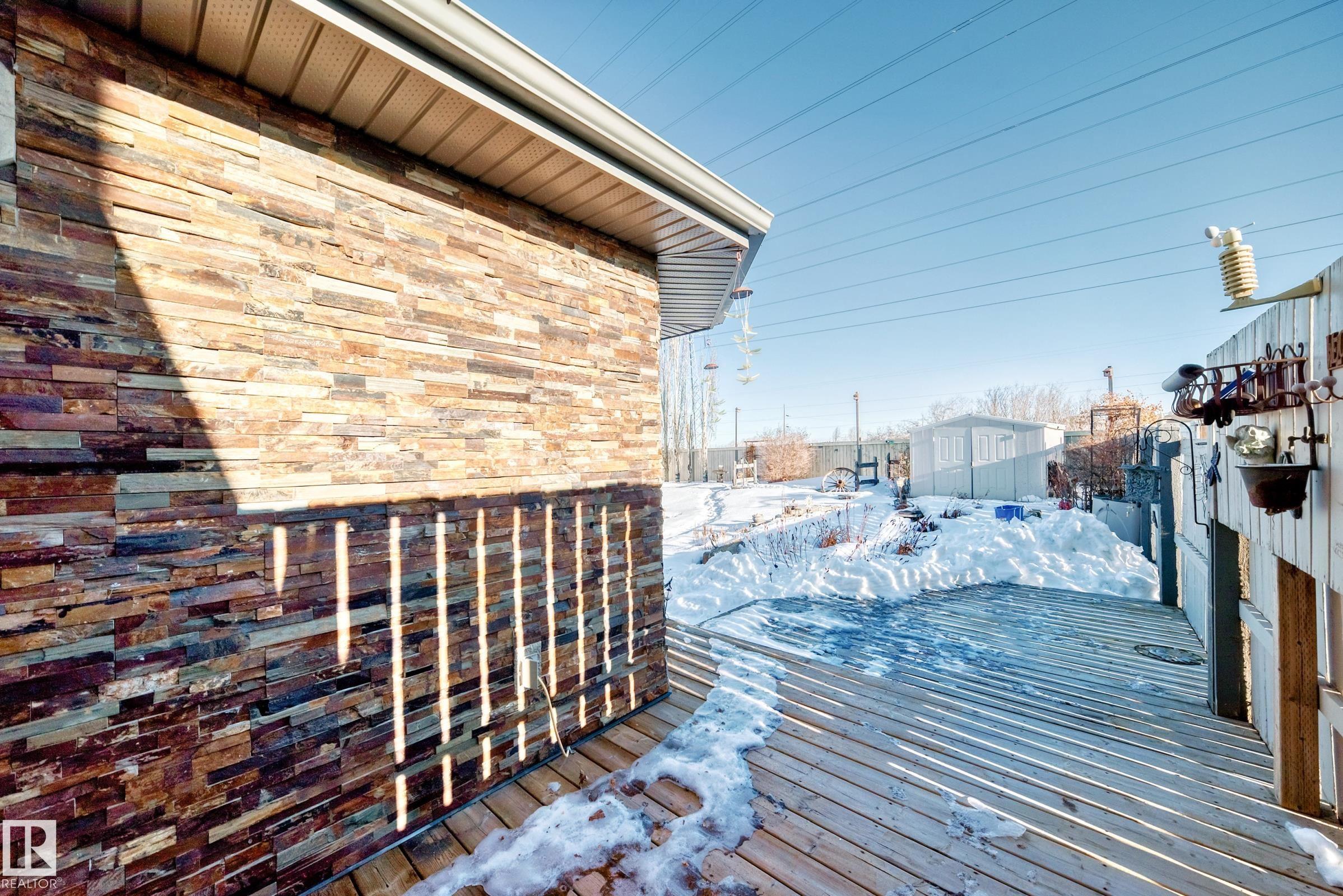 Welcome to Silver Berry and this unique 2-storey duplex, offering over 1,694 sq ft of total finished living space with 1,331 sq ft above grade, all situated on a massive pie-shaped lot backing onto greenbelt and walking trails. This home features two very spacious bedrooms and two bathrooms. The main floor featuresa an open-concept layout with a bright living room highlighted by a warm gas fireplace, a cozy dining area, and a functional kitchen with ample cabinetry. A bonus flex room addition (2009) provides stunning views of the park-like backyard oasis. The exterior is accented with stone for added curb appeal. The finished basement includes a family/games room. Recent updates include newer washer, fridge, central air conditioning, and shingles replaced in 2024. Enjoy the large deck accessed through patio doors, beautifully landscaped grounds, a rock garden, mature trees, and a garden shed for extra storage. Close to schools, shopping, transit, parks, and major roadways like Whitemud & Anthony Henday.