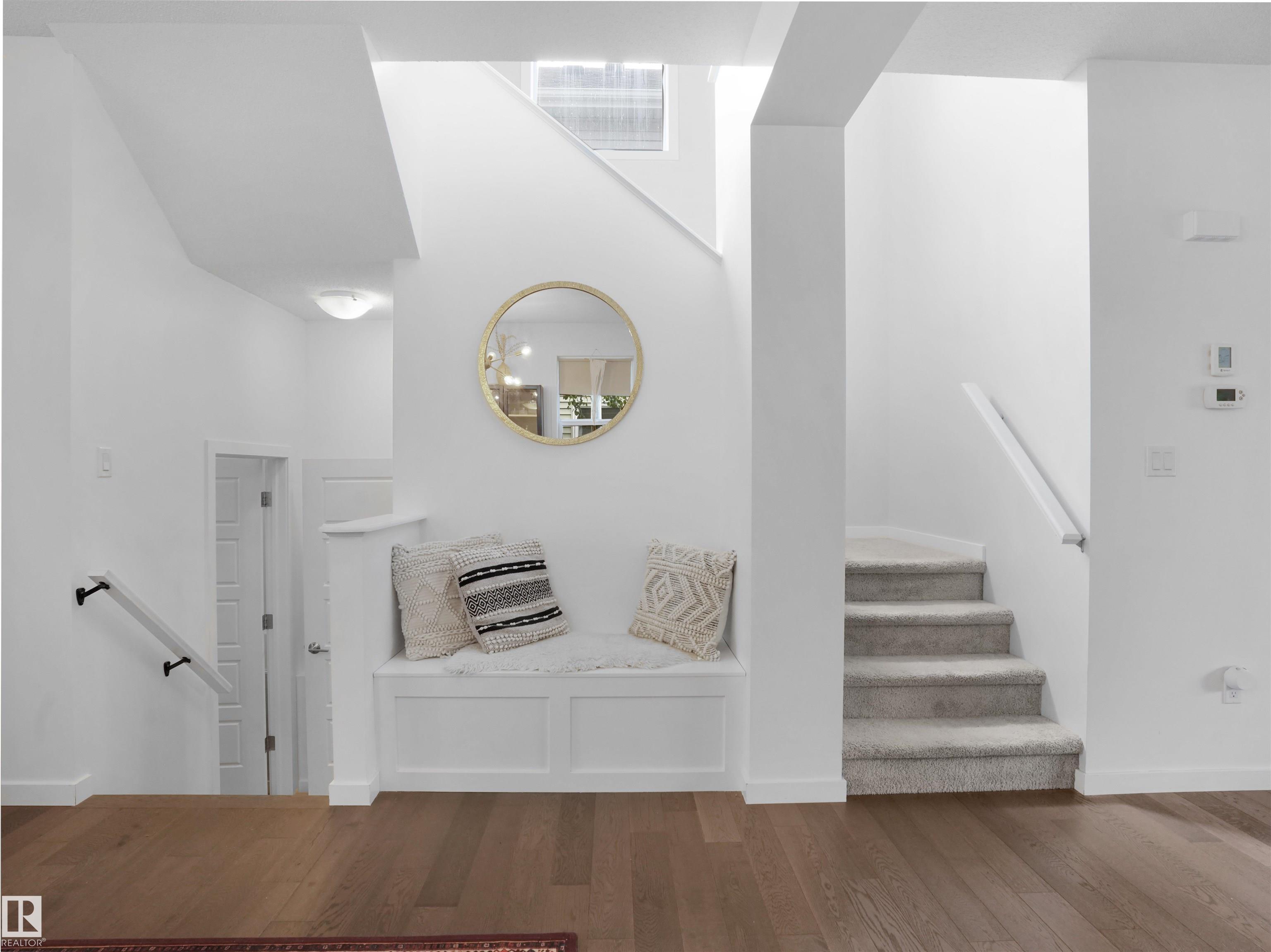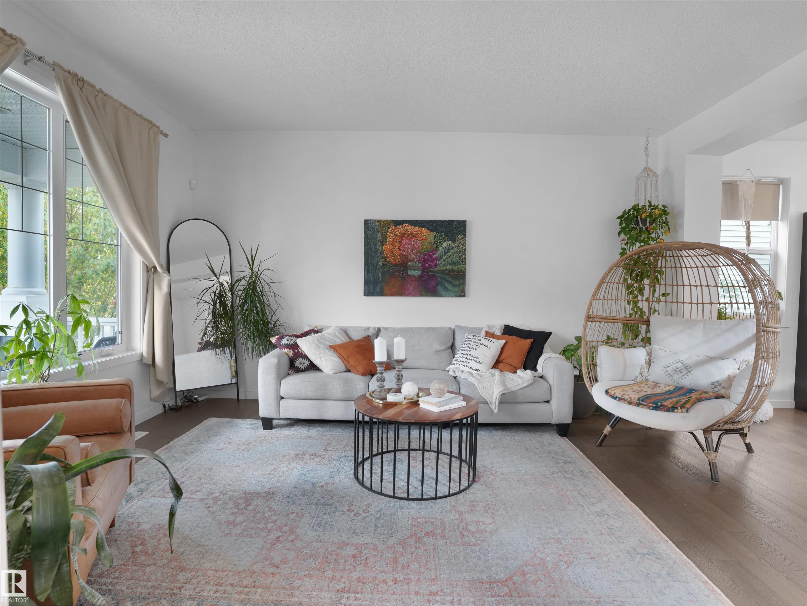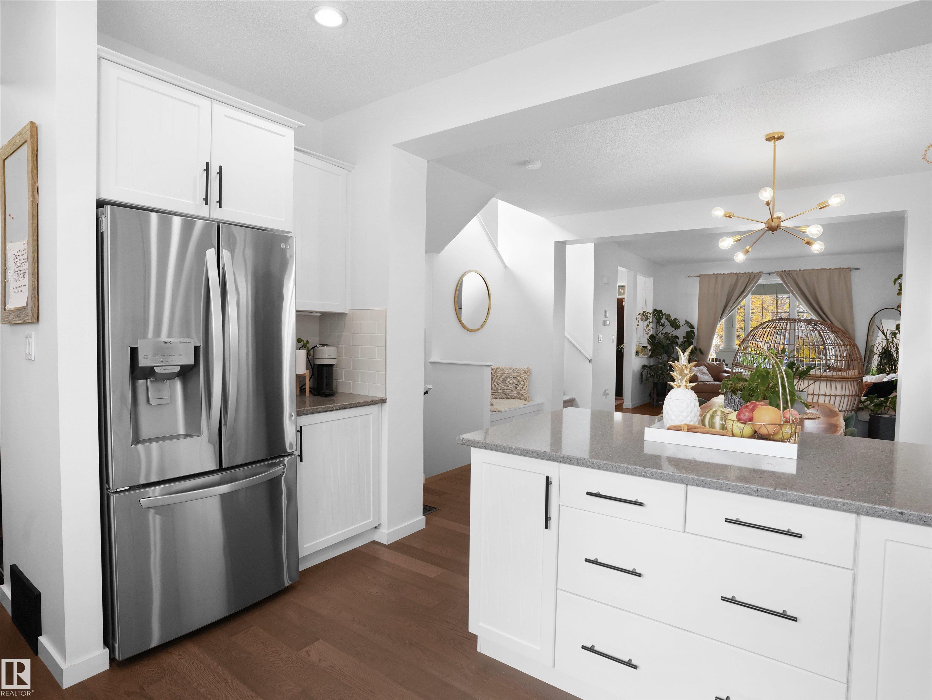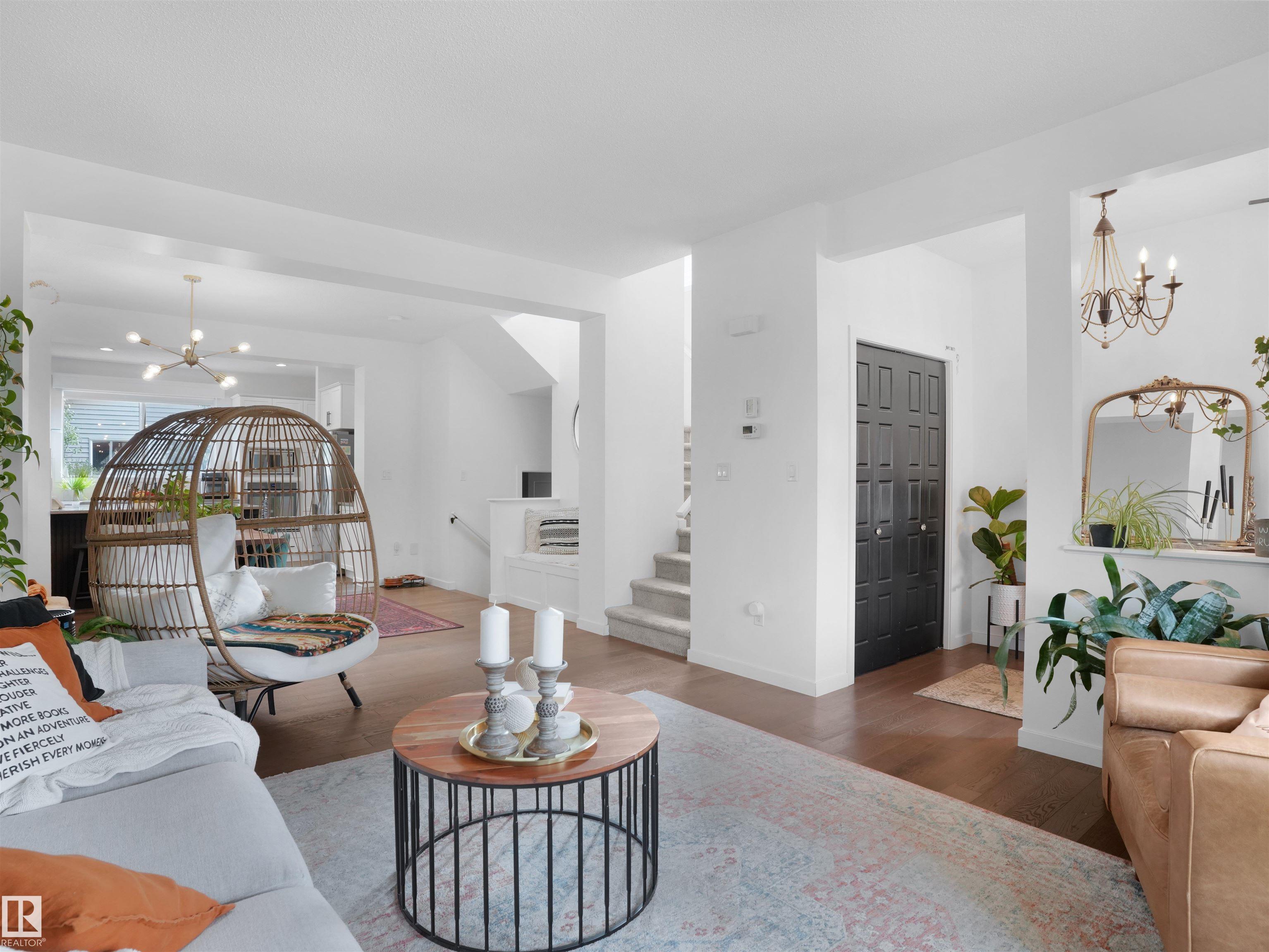 Welcome to your dream home in sought-after Summerside, with exclusive lake access! This stunning 2-storey offers over 2300 sq ft of living space, blending charm with modern comfort! Open-concept main floor with 9' ceilings and large windows that flood the house w natural light, and engineered hardwood flooring throughout. Main level boasts a bright foyer; a large living room; a dining room w cozy bench nook; a beautiful gourmet kitchen w quartz countertops, white cupboards, & St Steel appliances; a half bath; and a mud room. The upper level features a spacious Primary w walk-in closet & 4-piece ensuite, two more good-sized bedrooms, four-piece BATH, and laundry for added convenience. The fully finished basement has a huge REC room, a 4th bedroom, a den, and bathroom rough-ins. The east-facing backyard is beautifully landscaped and has a double garage & patio. Central AC to keep you cool all summer. Lovely front porch for those morning coffees. Easy access to year-round lake activities, schools and shops.