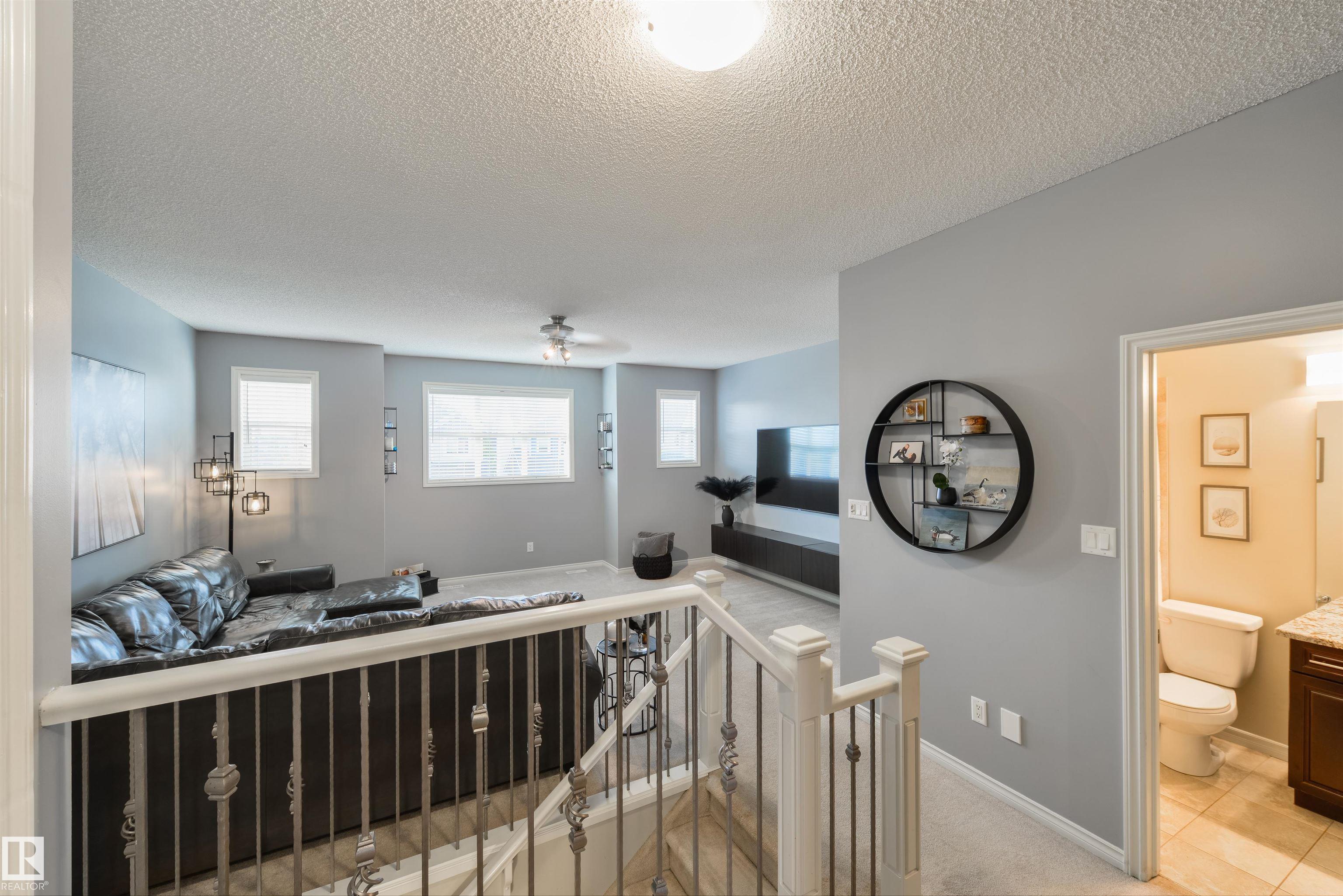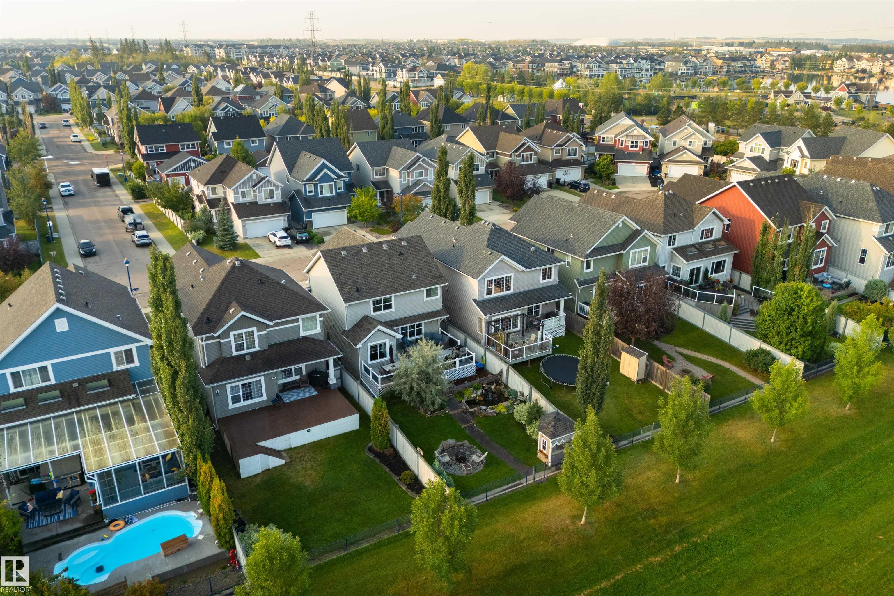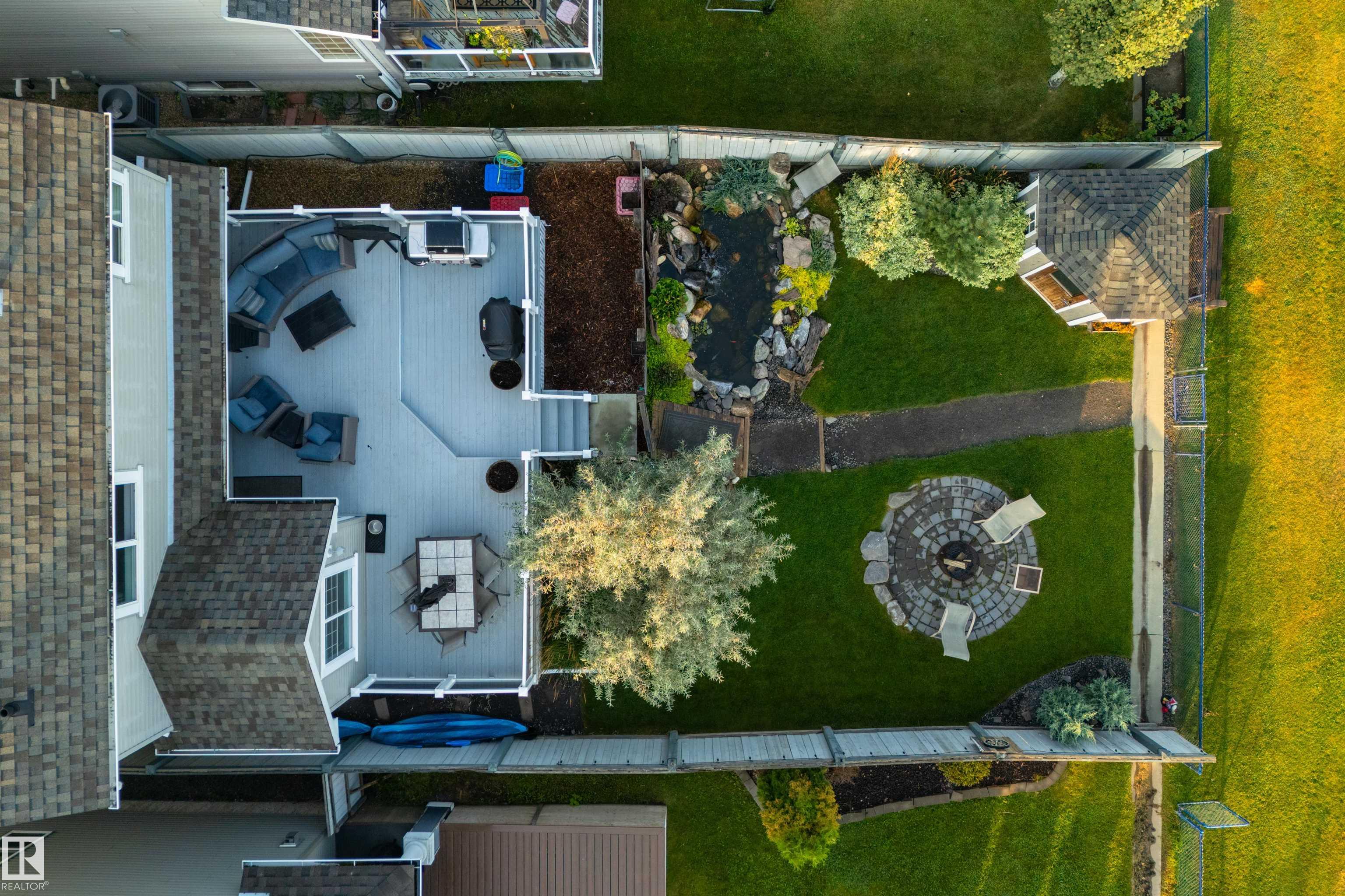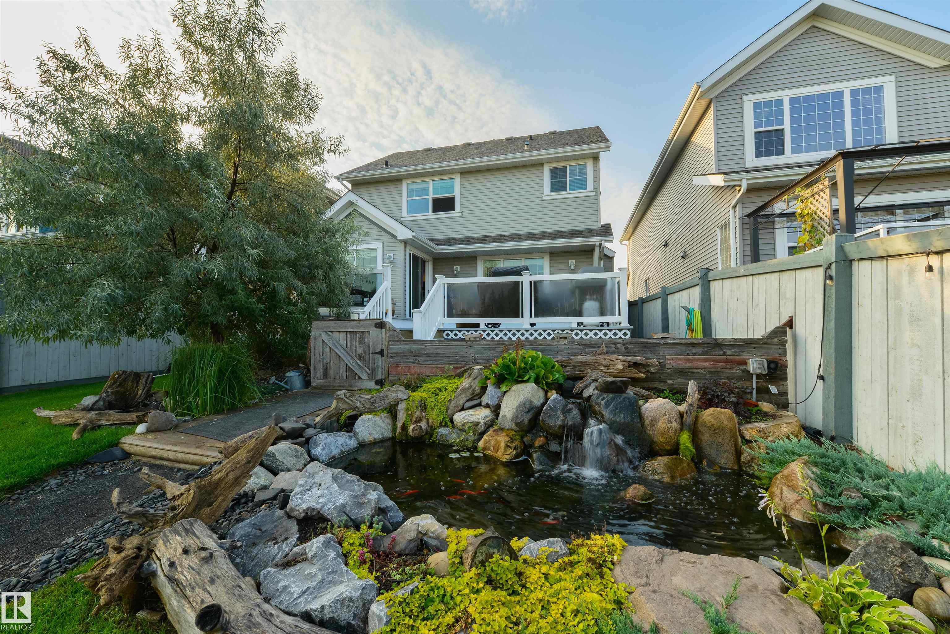 1,862 sq ft fully finished 2 story home which backs onto the park and school field in sought after Summerside! Extensive upgrades throughout featuring exposed aggregate driveway & sidewalk. Main level has engineered hardwood floors, kitchen w/ granite counter tops & stainless steel appliances, large living room and dining room. Main level laundry room and 2 piece bath finish the main level. Upper level w/ huge bonus room w/ 2 additional bedrooms & 4-piece bathroom. Primary bedroom w/ 4-piece ensuite & walk-in closet overlooking the park space finishes the upper level. Lower level is fully finished w/ large family room/fitness area & 3-piece bath. Backyard backs the park so you can watch your kids walk to the K-9 school! Oversized maintenance free deck, custom built exterior shed and heated water feature with fish! Located on a quiet cul-de-sac, a short walk from Summerside beach & clubhouse - enjoy the year-round lake amenities including skating, boating, fishing & tennis. Must be seen to be appreciated.