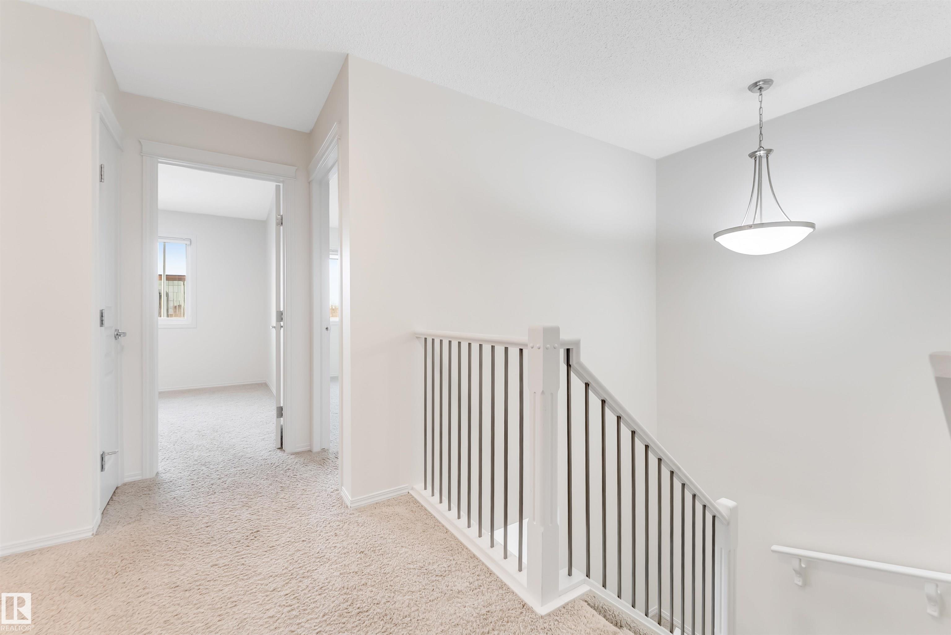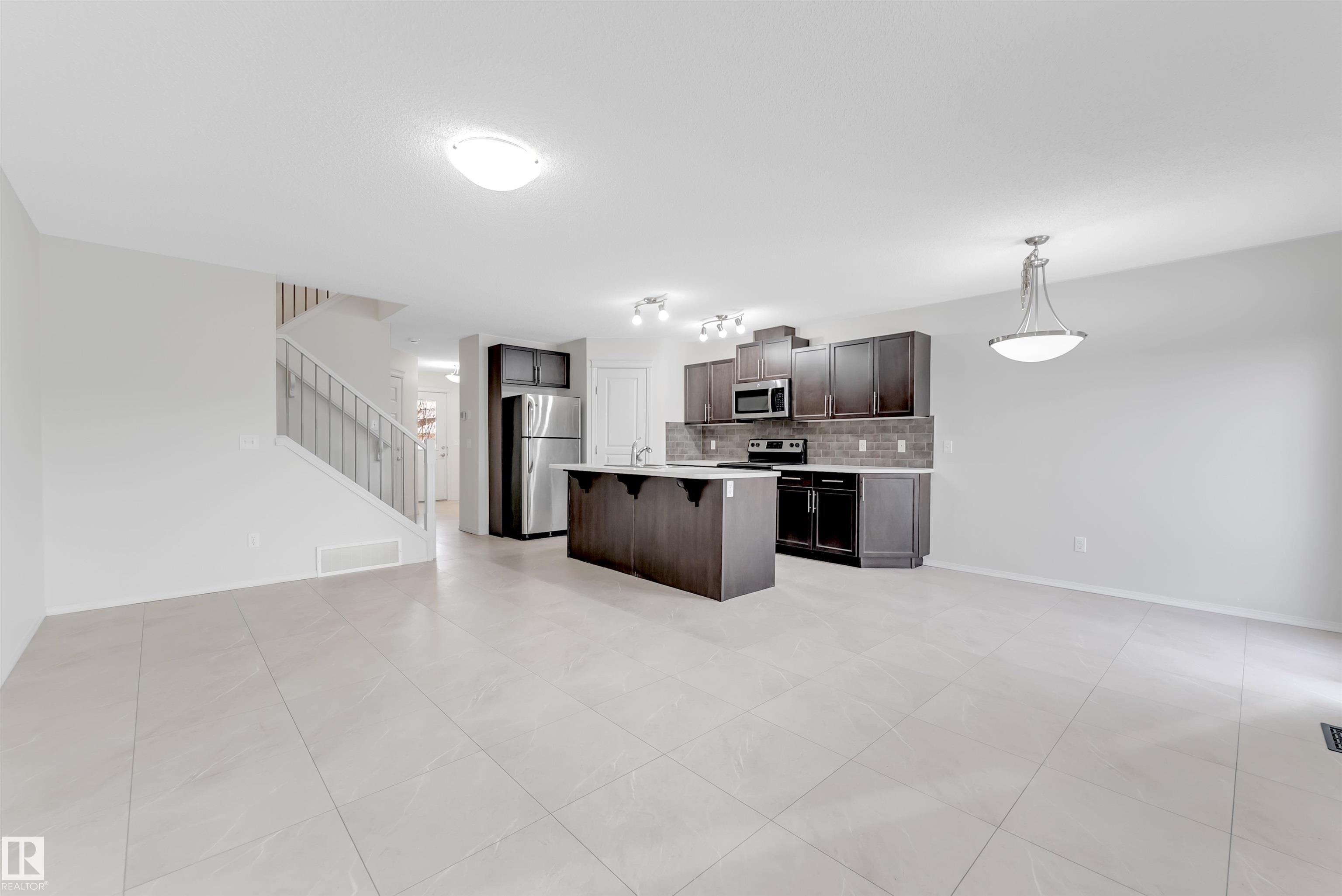 Welcome to this stylish 1,422 sq ft townhouse in Tamarack Backing on to Meadows Rec Center 17 Street! This well-maintained home offers 3 bedrooms, 2.5 baths, new main-floor flooring, fresh paint, and a bright open layout. The spacious kitchen features pantry, stainless steel appliances and soft-close cabinetry, perfect for everyday living. Upstairs, the primary bedroom includes a walk-in closet and ensuite, plus two additional bedrooms and a full bath. The unfinished basement offers excellent future potential. Enjoy a two-tier deck with no neighbours behind, along with a single attached garage with gas line and driveway parking. EAST Facing house will get you all the SUNLIGHT you need. Walking distance to Meadows Rec Centre, library, schools, parks, shopping, and transit, with easy access to Anthony Henday and Whitemud.