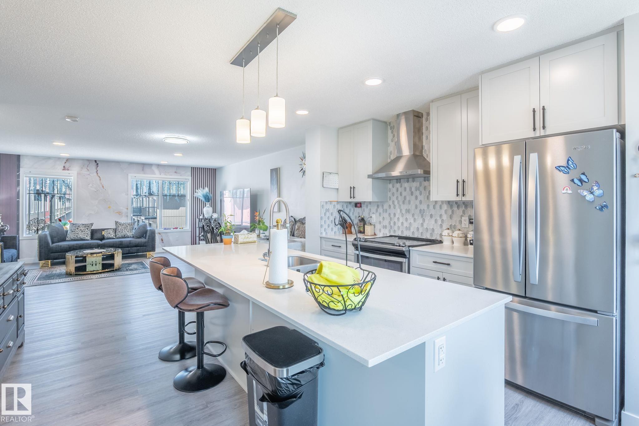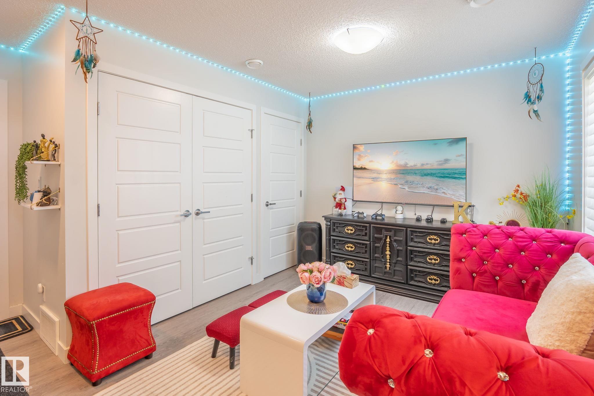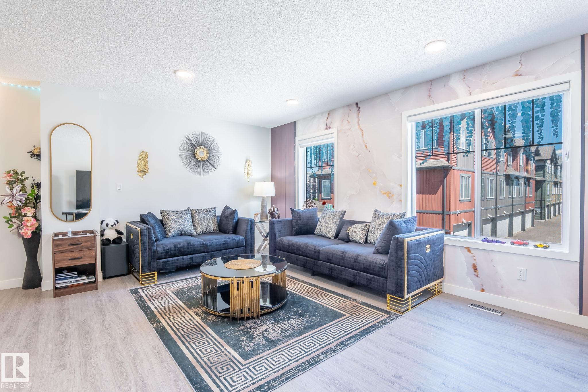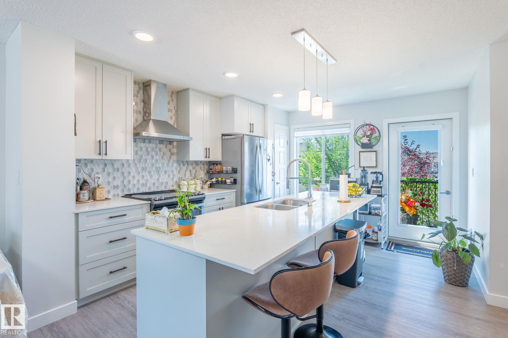 Rare Find - Over 1,498 Sq Ft! Immaculate, upgraded executive condo with pride of ownership throughout. Featuring two spacious primary bedrooms with 3-pc ensuites, three baths, two living areas, and a double attached garage. Enjoy the private fenced patio with high-end turf, perfect for low-maintenance outdoor living. Interior highlights include quartz countertops throughout, vinyl plank flooring (no carpet), quality appliances, and custom window coverings. Bright, open layout with a modern color palette. As an exclusive Orchards resident, enjoy access to premium amenities: clubhouse, NHL-size outdoor rink, tennis, pickleball, social clubs, and more. Ideal for young professionals or downsizers. Minutes to YEG, Henday, schools, dining, and entertainment. Low condo fees, prime location, and exceptional value--this home has it all.