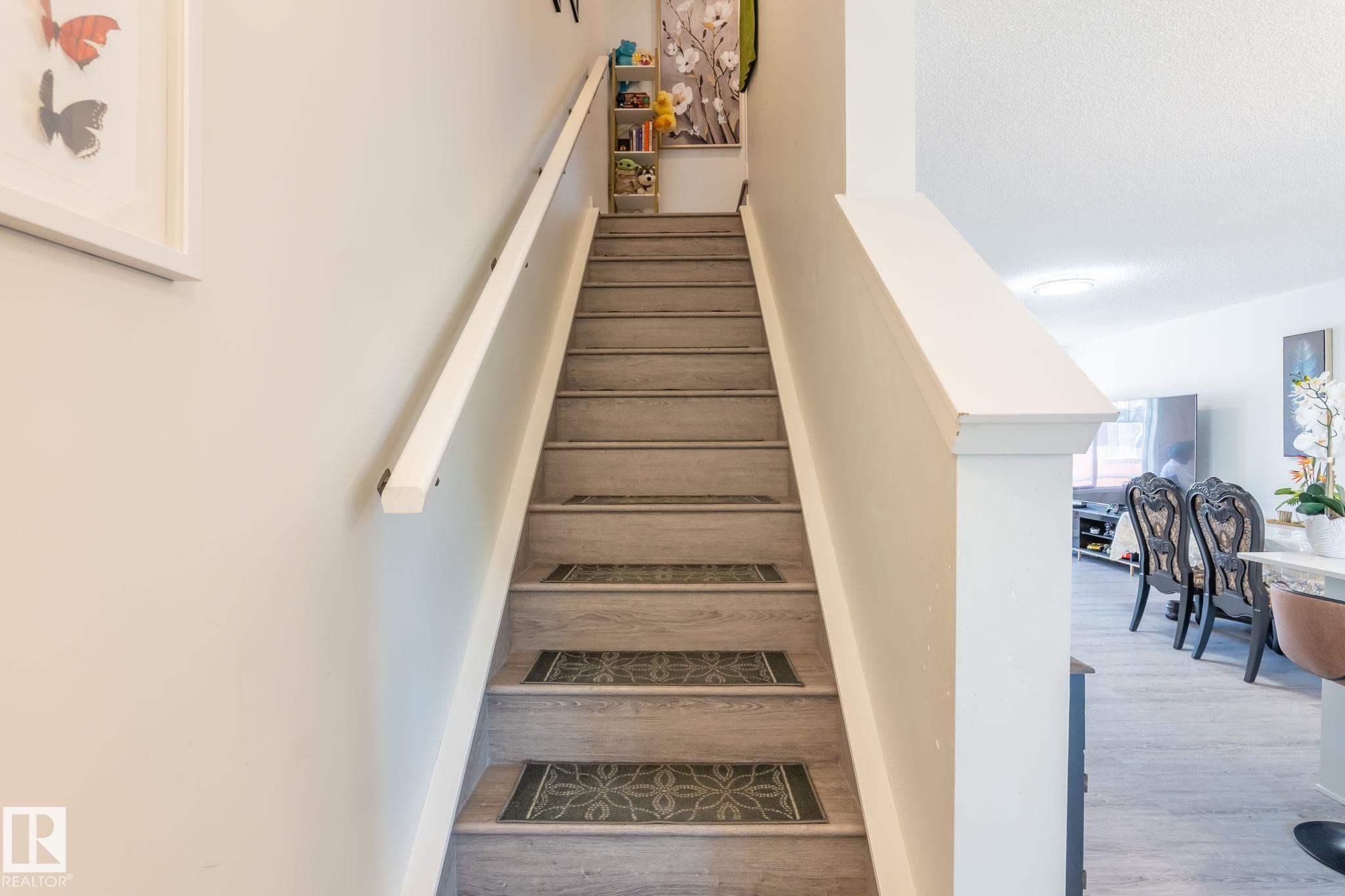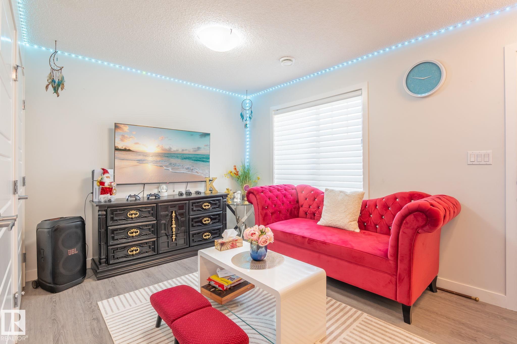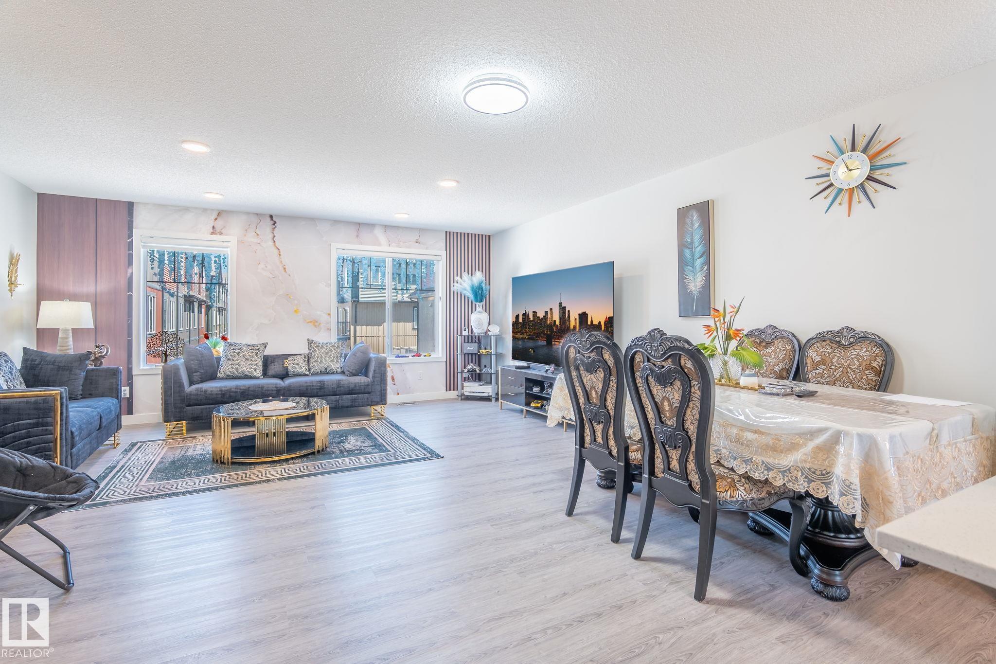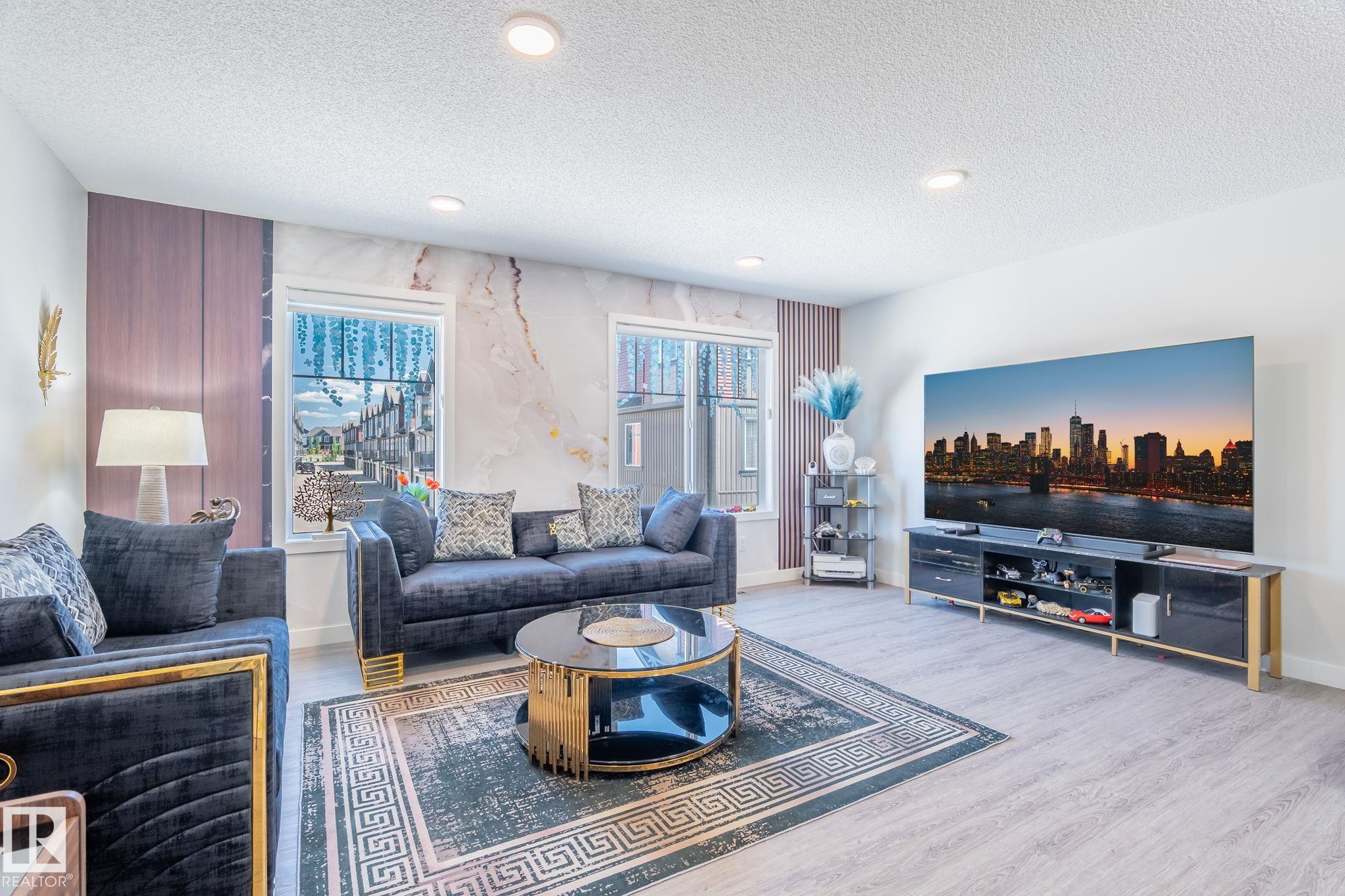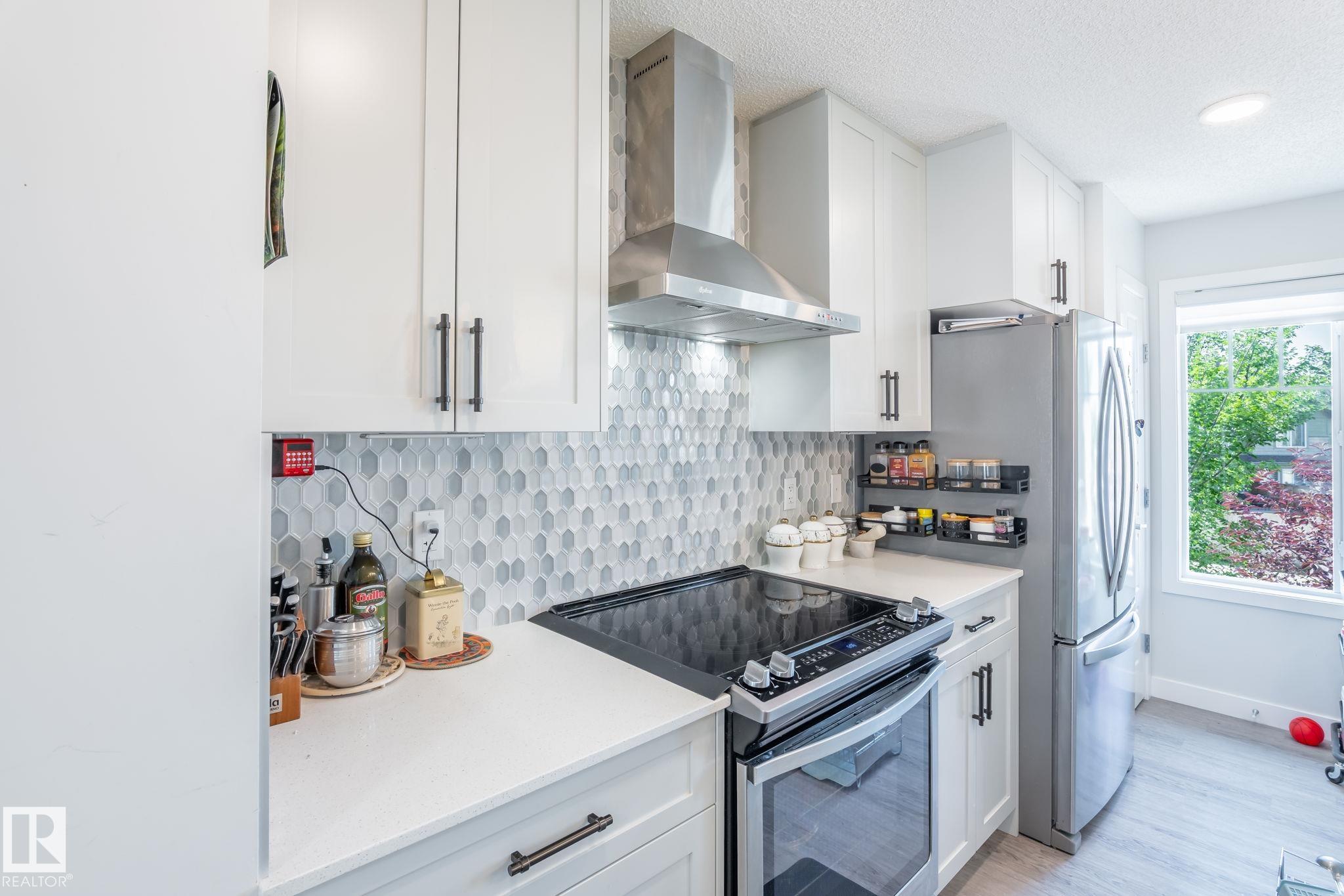 Rare Find - Over 1,498 Sq Ft! Immaculate, upgraded executive condo with pride of ownership throughout. Featuring two spacious primary bedrooms with 3-pc ensuites, three baths, two living areas, and a double attached garage. Enjoy the private fenced patio with high-end turf, perfect for low-maintenance outdoor living. Interior highlights include quartz countertops throughout, vinyl plank flooring (no carpet), quality appliances, and custom window coverings. Bright, open layout with a modern color palette. As an exclusive Orchards resident, enjoy access to premium amenities: clubhouse, NHL-size outdoor rink, tennis, pickleball, social clubs, and more. Ideal for young professionals or downsizers. Minutes to YEG, Henday, schools, dining, and entertainment. Low condo fees, prime location, and exceptional value--this home has it all.