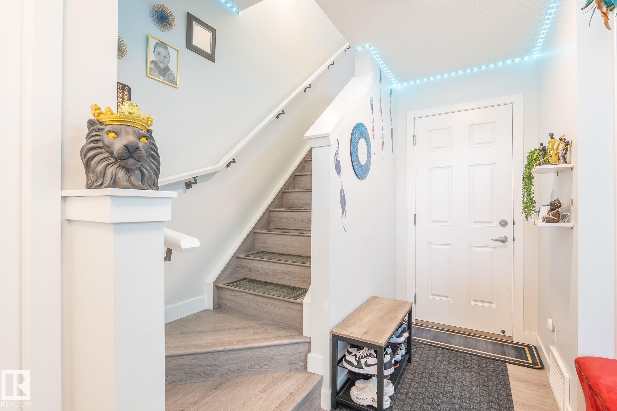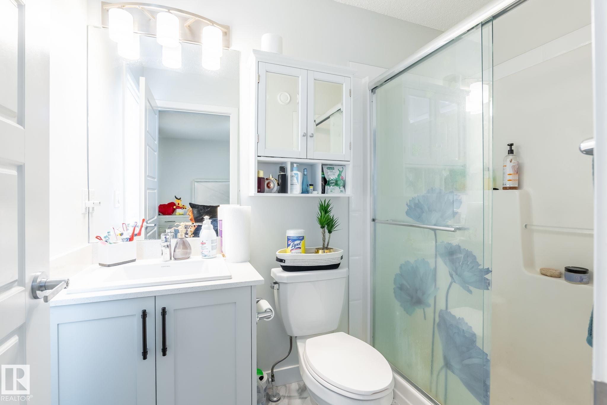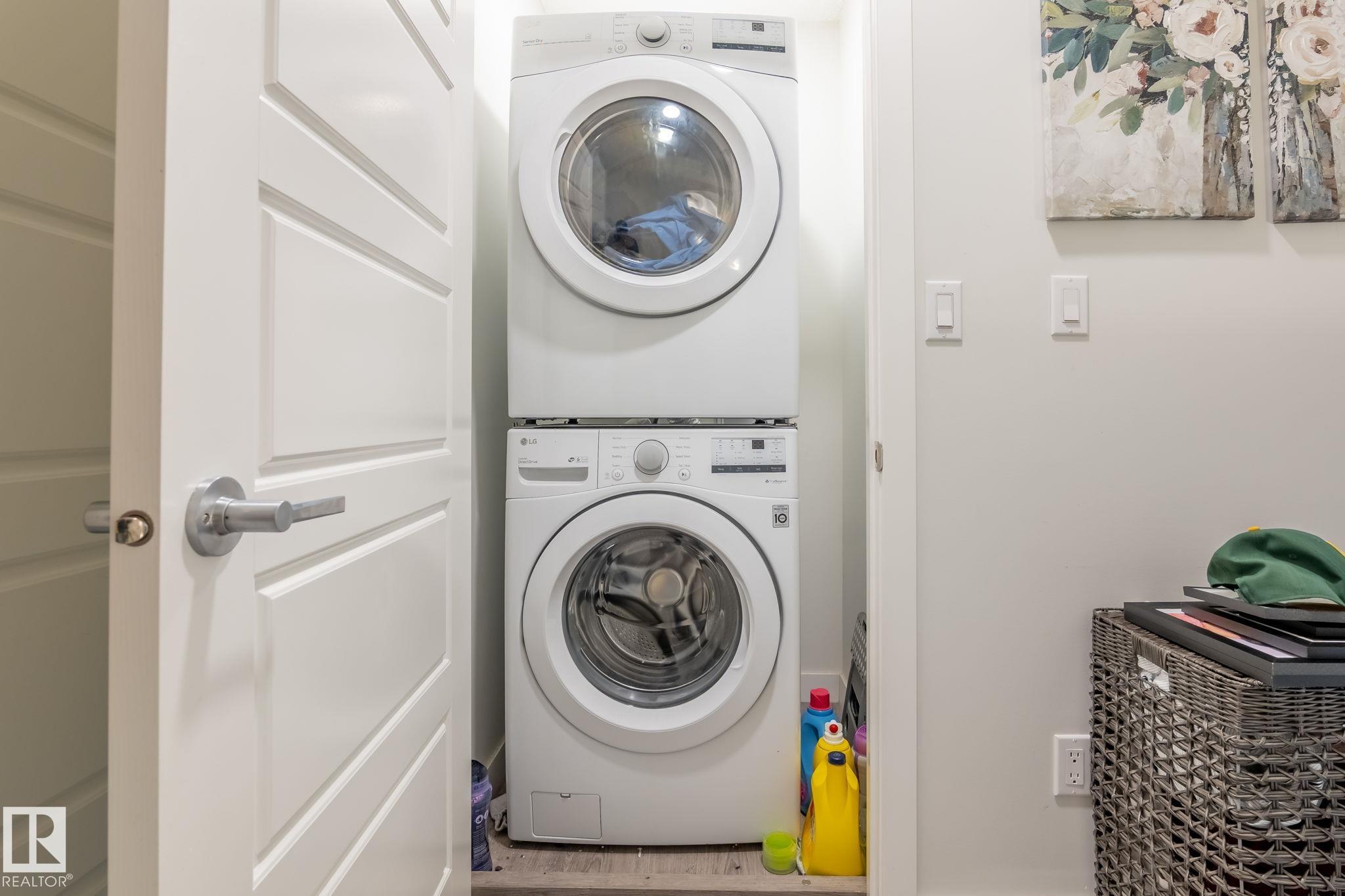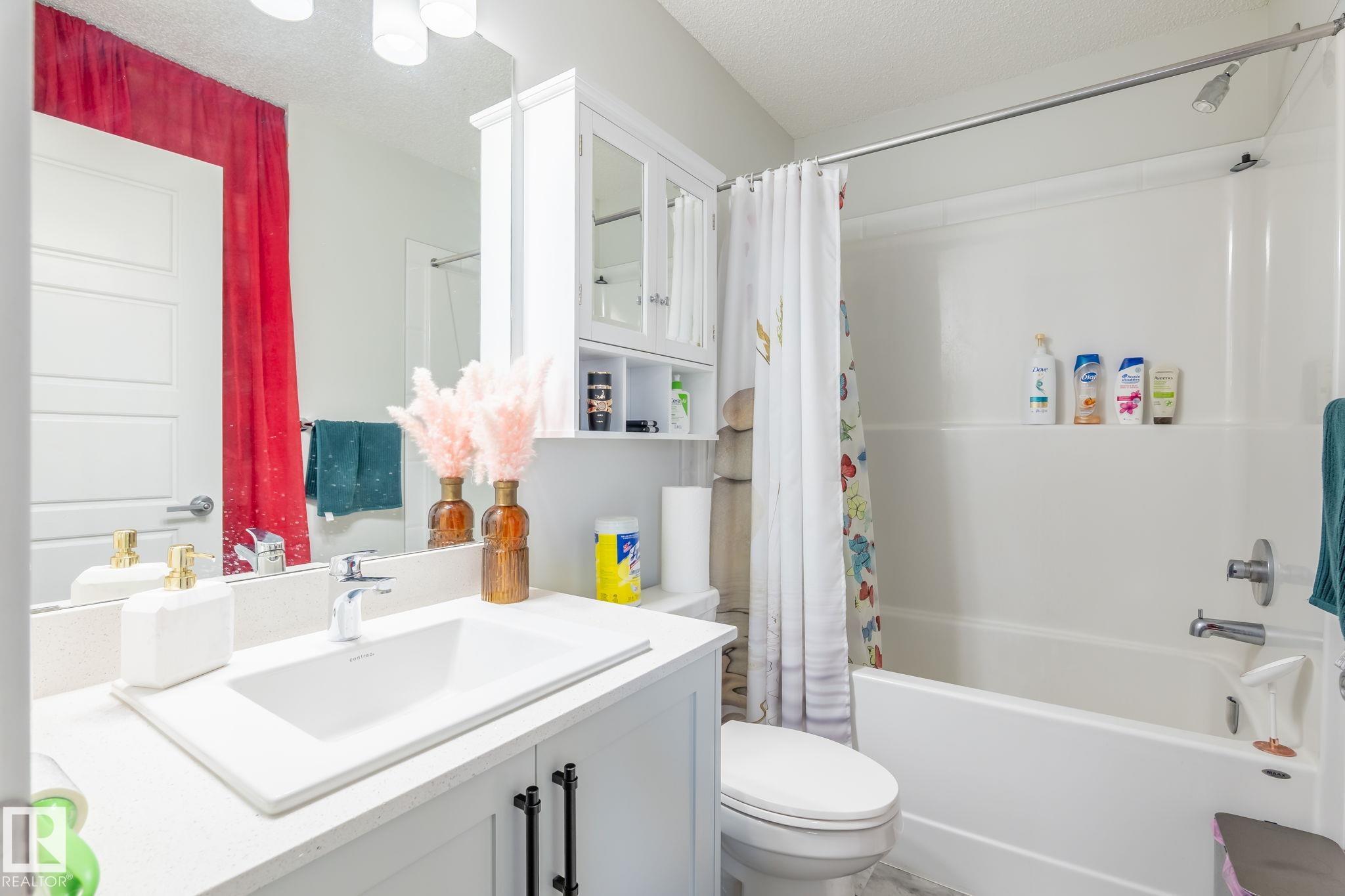 Rare Find - Over 1,498 Sq Ft! Immaculate, upgraded executive condo with pride of ownership throughout. Featuring two spacious primary bedrooms with 3-pc ensuites, three baths, two living areas, and a double attached garage. Enjoy the private fenced patio with high-end turf, perfect for low-maintenance outdoor living. Interior highlights include quartz countertops throughout, vinyl plank flooring (no carpet), quality appliances, and custom window coverings. Bright, open layout with a modern color palette. As an exclusive Orchards resident, enjoy access to premium amenities: clubhouse, NHL-size outdoor rink, tennis, pickleball, social clubs, and more. Ideal for young professionals or downsizers. Minutes to YEG, Henday, schools, dining, and entertainment. Low condo fees, prime location, and exceptional value--this home has it all.