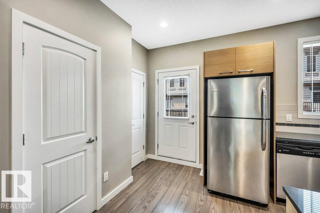 Lovely 3-bedroom townhouse in the community of Walker. Boasting an amazing main floor with open concept floorplan, 9ft ceilings, oversized windows, laminate floors, spacious living/dining room, large eating bar with black granite counters and finally access to both front and rear decks. The upper level comprises of sleeping quarters with the primary suite including double closets and full 4pc ensuite. Laundry is conveniently located on this level as well with new washer/dryer.. The lower level offers finished storage space plus access to your double attached garage. The property comes complete with new paint and new blinds thru entire home. You will love the low condo fees, tranquil setting and easy access to all of the amenities that surround your new home.