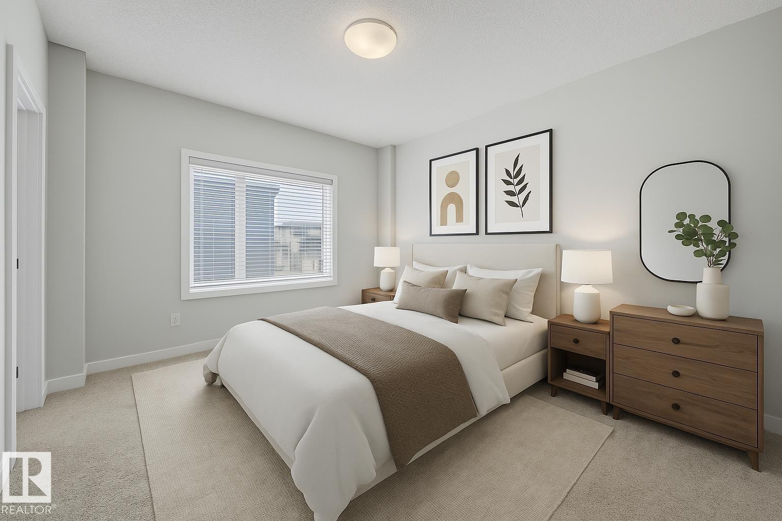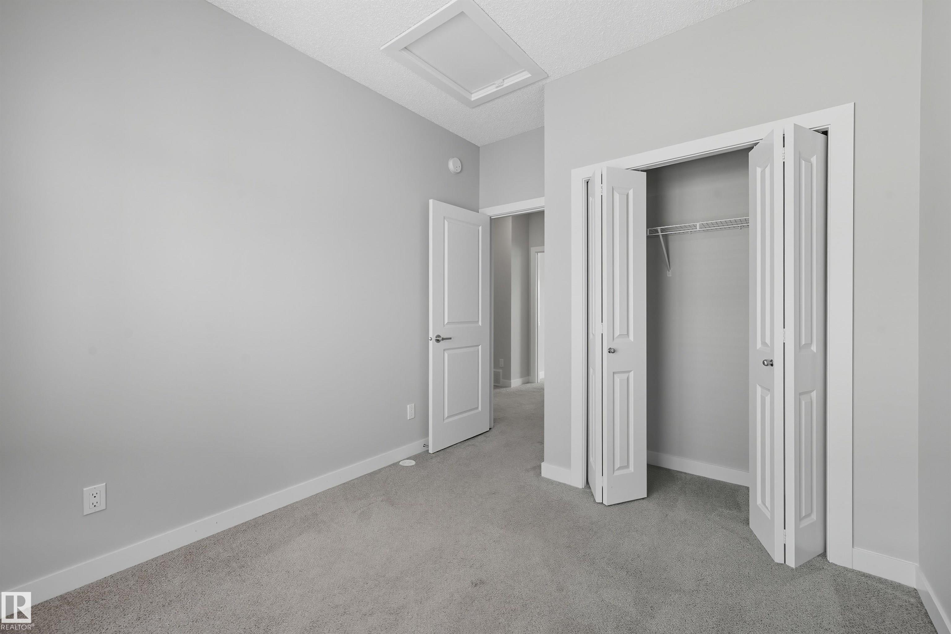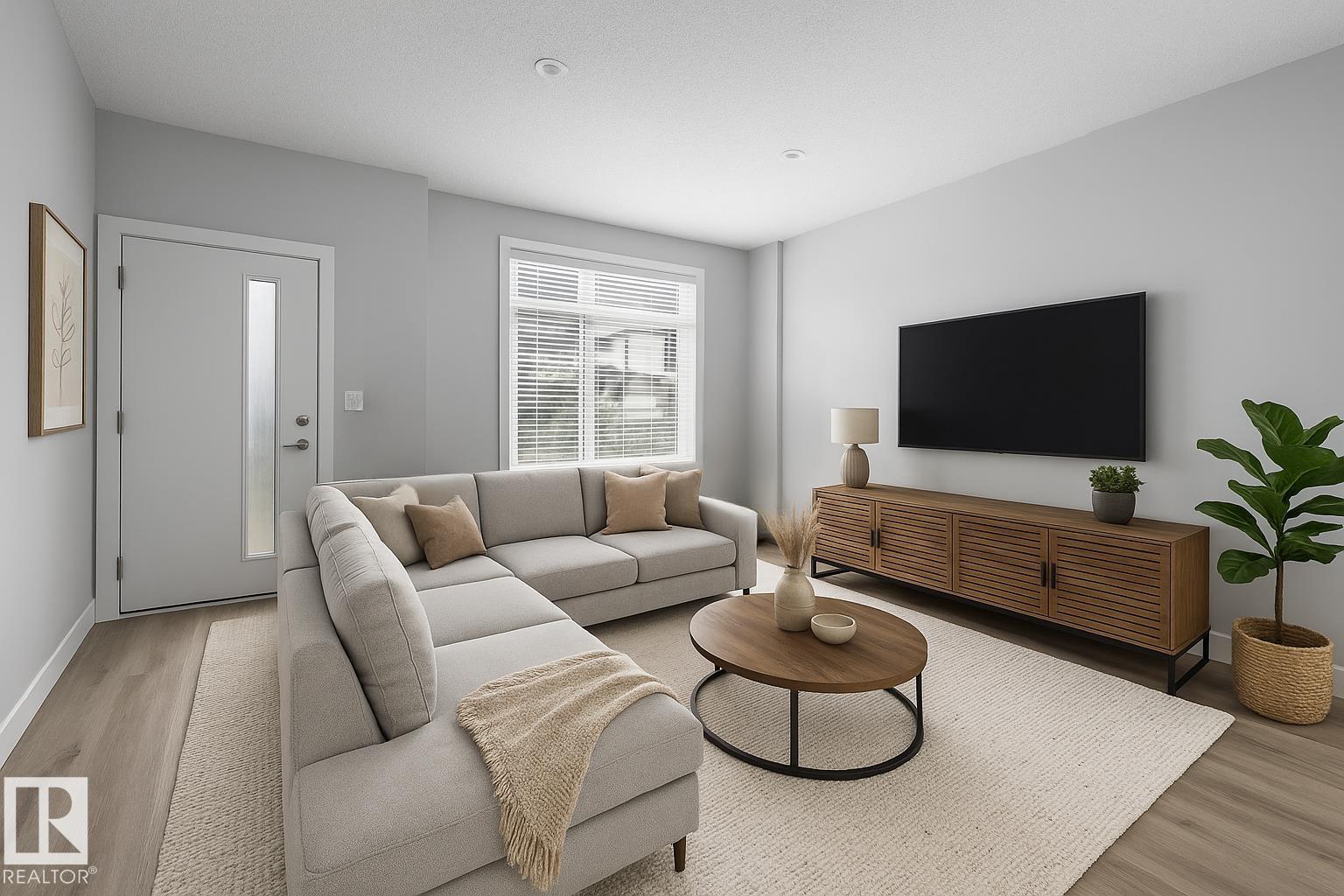 Bright, modern & spacious 3 bed/2.5 bath townhouse w/ double attached garage in the desirable Walker neighborhood. 1545 sf total living space. Perfect for first time home owners or investors! Main floor features 9' ceilings, vinyl plank floors & a roomy living room filled with natural light from the large South facing window. Kitchen offers a functional layout, stainless steel appliances, quartz countertops, tons of counter space, walk-in pantry, eating bar, & built in desk. Upper level also has 9' ceilings & large primary bedrm w/ 4pc ensuite & walk in closet. Two other well sized bedrms, 4 pc main bath & laundry complete this level. Lower level flex room is perfect for an office, play rm, exercise area, or extra storage space! Energy-efficient mechanical including HRV & tankless hot water for a lower utility bill. This well maintained complex offers visitor parking and nearby walking trails & lake. Conveniently close to shopping, schools & public transit. Quick access to commuter routes incl Henday