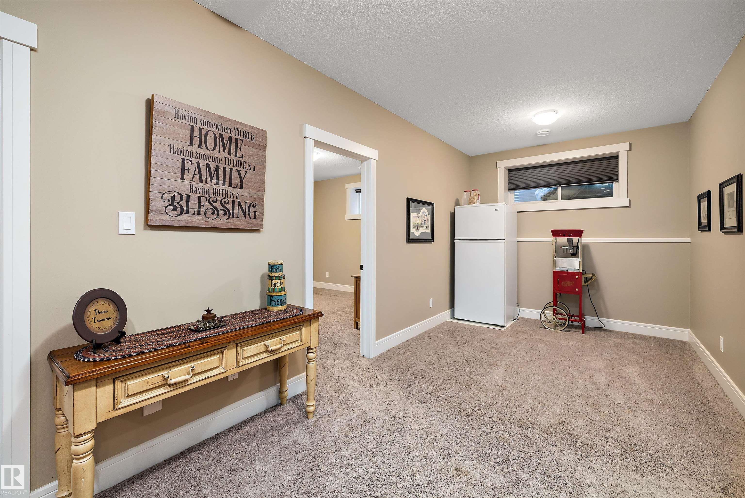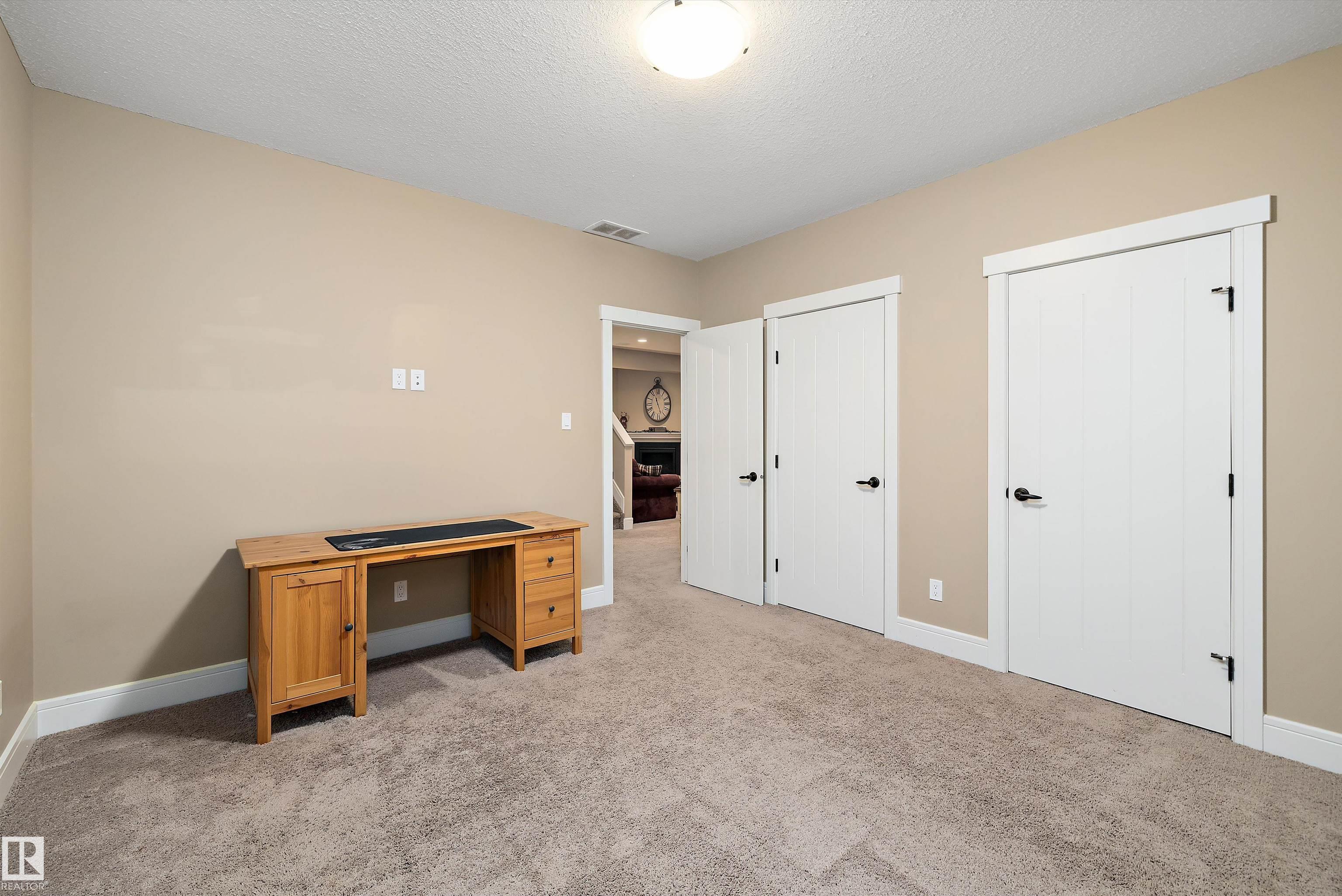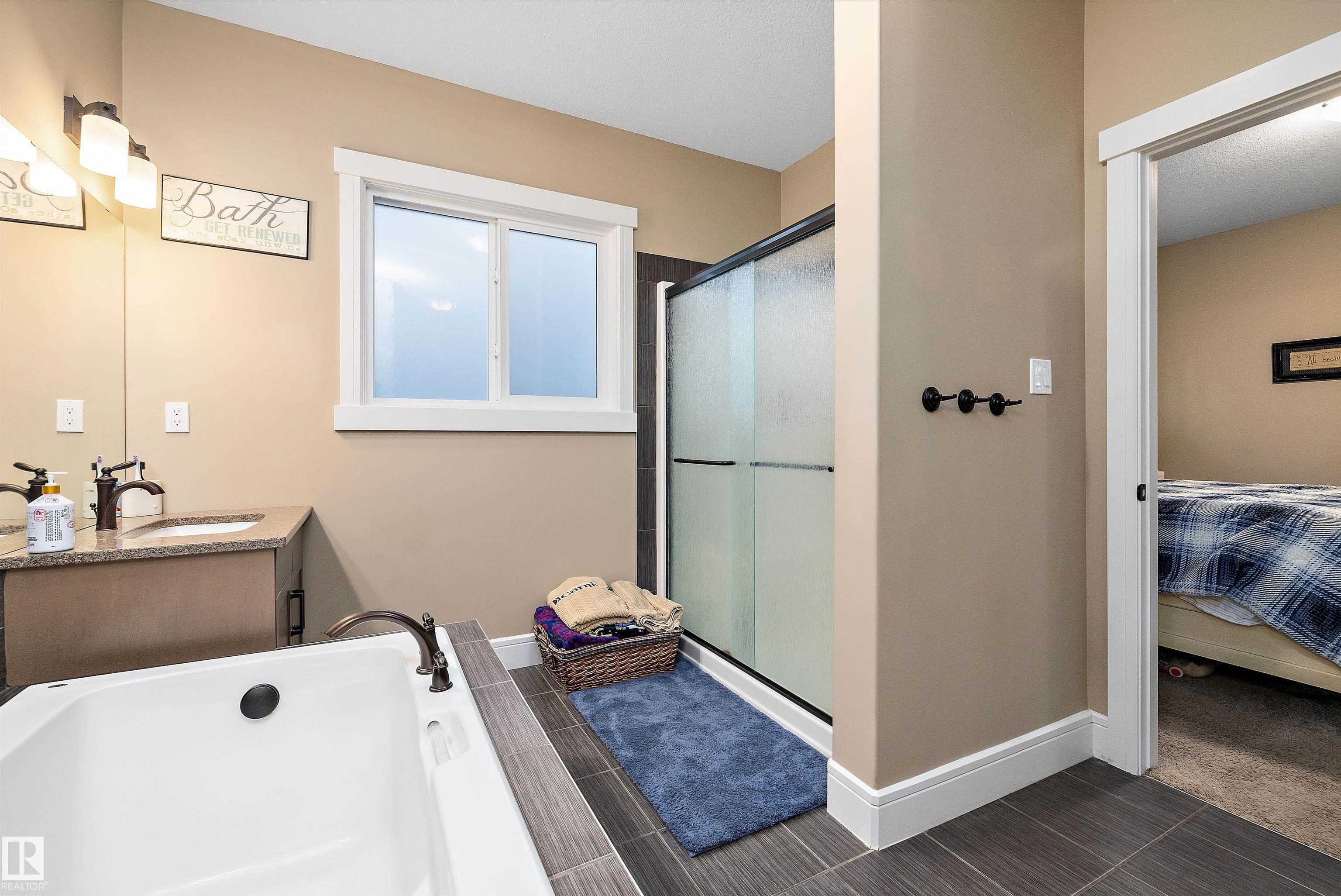 Rare bungalow opportunity built by Coventry Homes in sought-after Walker! The spacious main floor offers a large den, laundry, and a luxurious primary suite with a soaker tub, separate shower, and walk-in closet. The chef's kitchen features granite counters, a gas stove, and corner pantry, flowing seamlessly into the living room with a cozy stone faced gas fireplace. The finished basement impresses with 9' ceilings, a family room with a second fireplace, two large bedrooms with full-length closets, and a 4-piece bath. Enjoy outdoor living on the huge 32'x14' two-tier deck, with a hot tub pad and wiring, 8'x10' matching shed with workbench, and a gorgeous landscaped yard with poured curbing, backing onto a walking trail. Extras include central A/C, tankless hot water tank, high-efficiency furnace, central vac, built in speakers, and double attached garage. Fantastic location just minutes to shopping, groceries, and EIA, on a quiet local traffic only street.