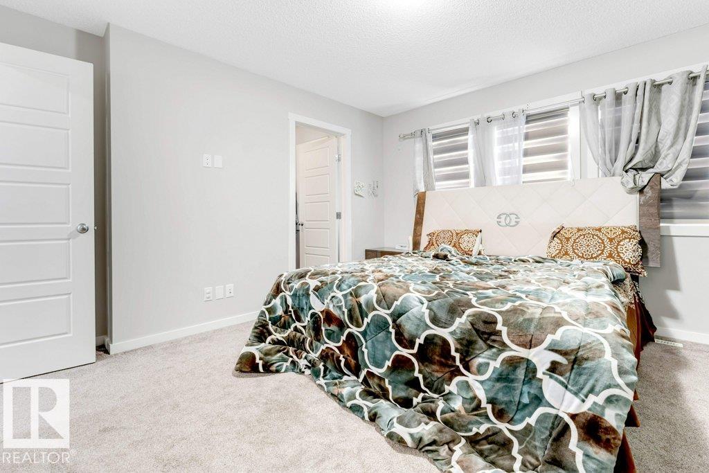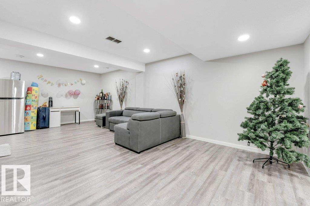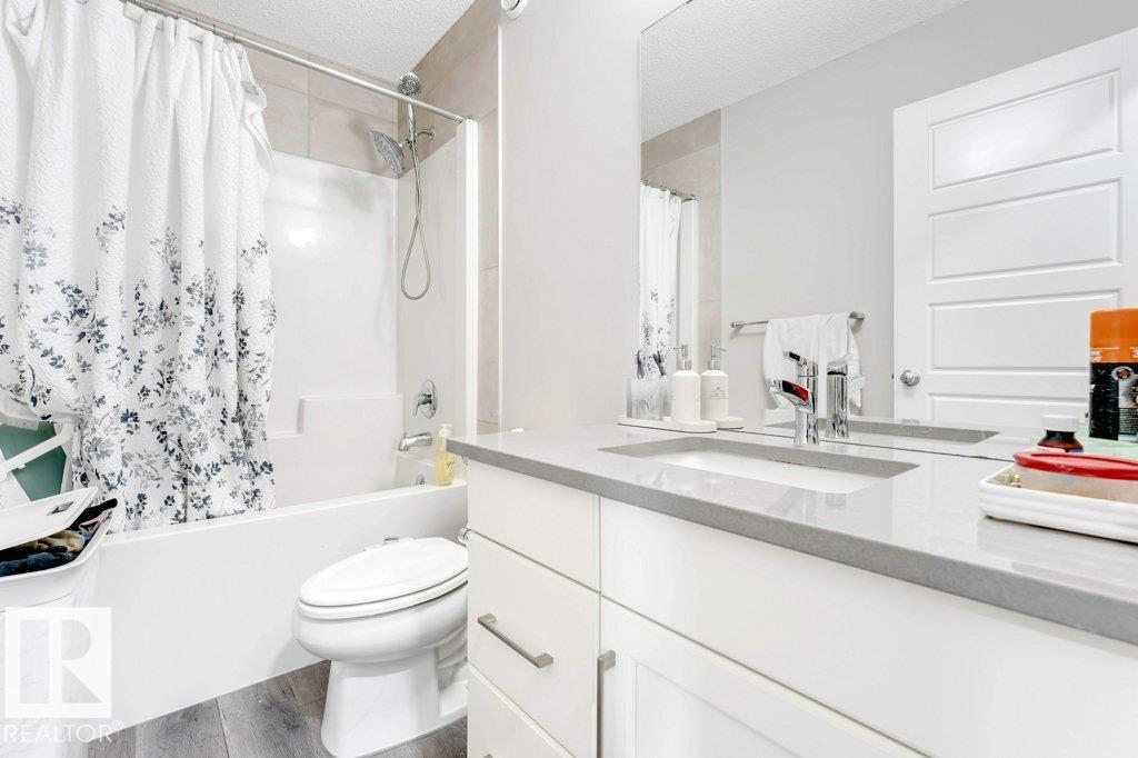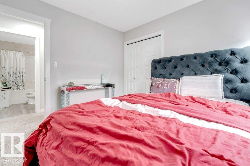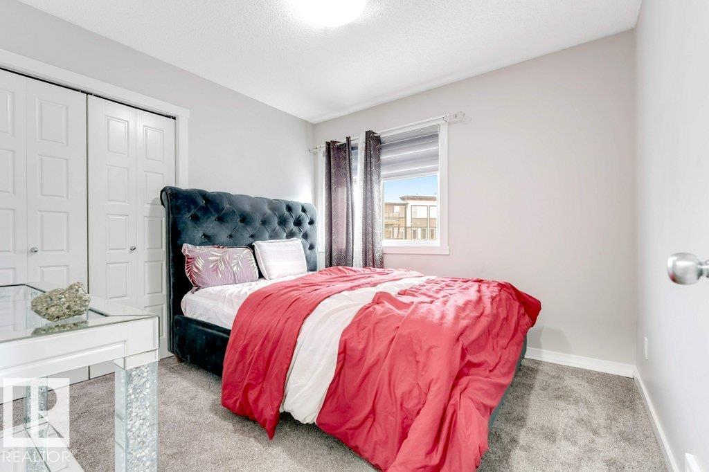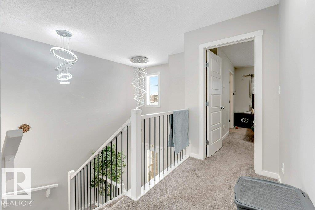 **FULLY FINISHED BASEMENT WITH SECOND KITCHEN **OPEN TO BELOW**SIDE ENTRANCE FOR BASEMENT**Welcome to this elegant 1,819 sq. ft. luxury duplex on a rare pie-shaped lot, offering style, space, and versatility. The open-to-below entry features soaring ceilings and a convenient powder room. The main floor includes a private den, a spacious living room with a modern electric fireplace, and a beautifully designed kitchen with quartz countertops, stainless steel appliances, ample cabinetry, and main-floor laundry. Upstairs, enjoy a serene primary suite with a spa-inspired ensuite and walk-in closet, plus two generous bedrooms and a large bonus room ideal for entertaining. The fully finished basement offers a separate entrance, second kitchen, living area, full bedroom, and full bath--perfect for guests or extended family. Fully landscaped, fenced, and complete with a composite deck, this home is the perfect blend of luxury and comfort.
