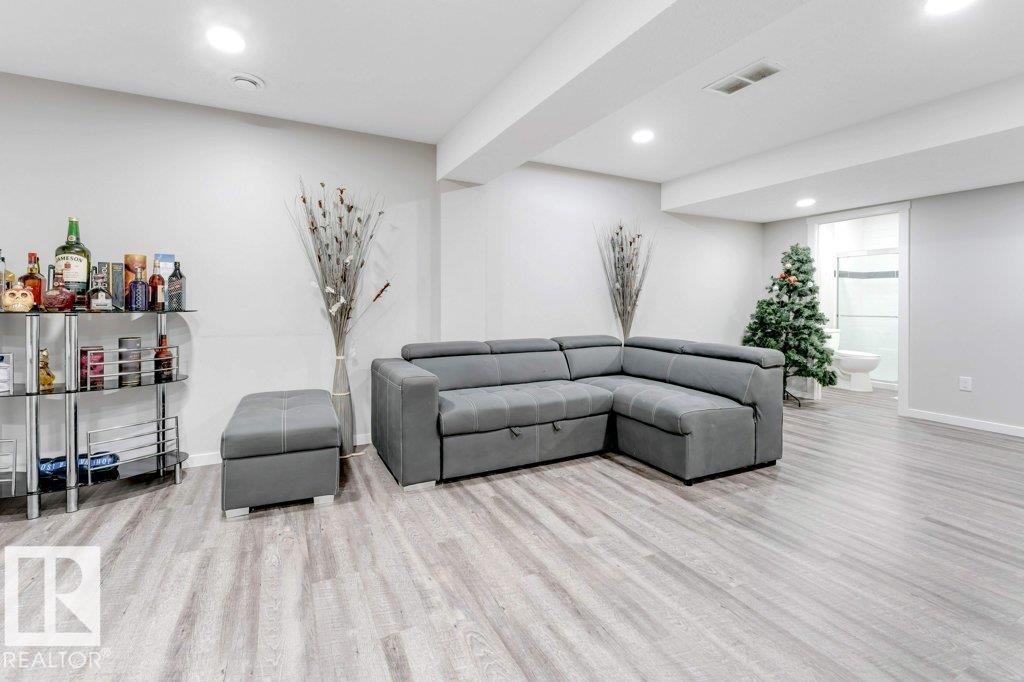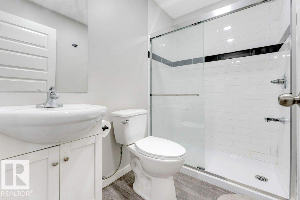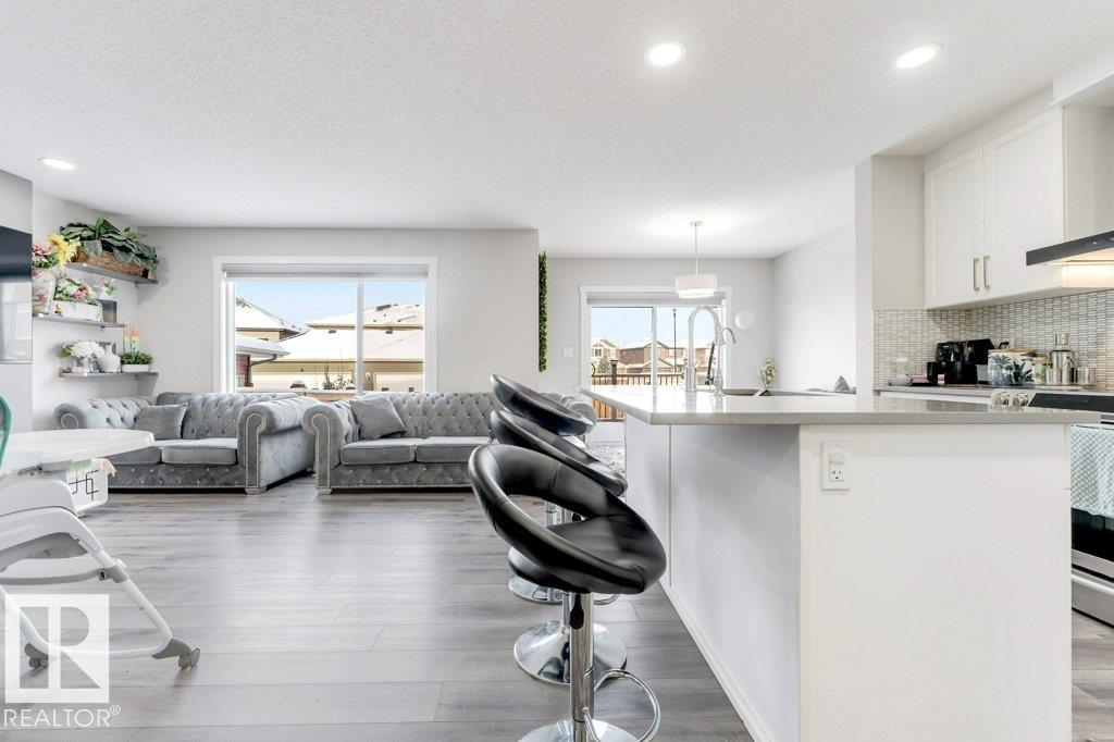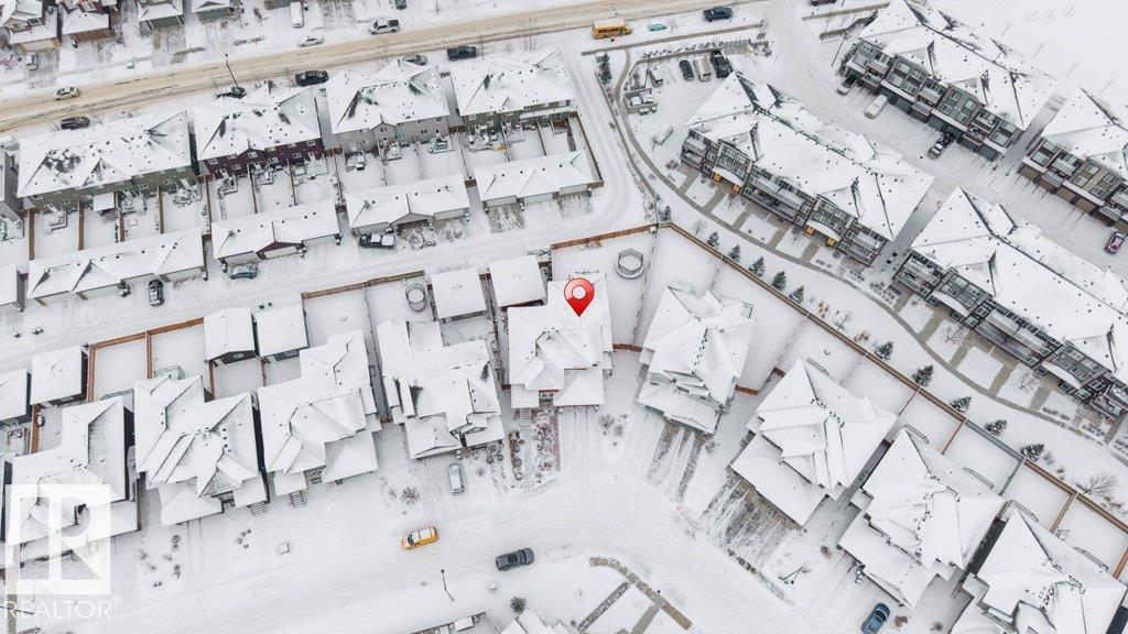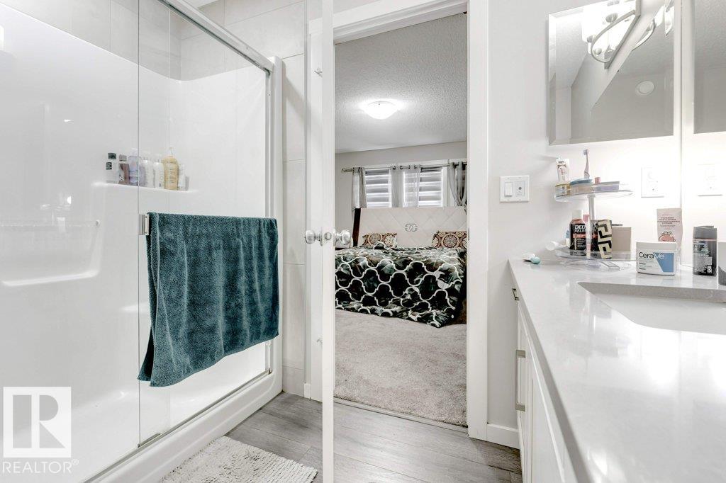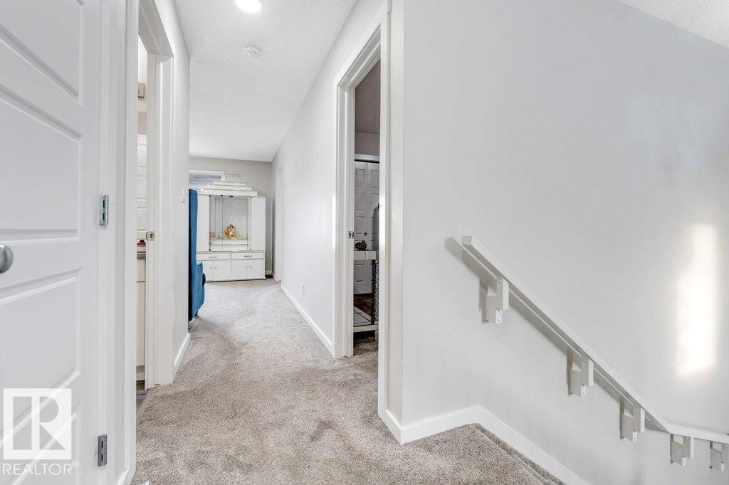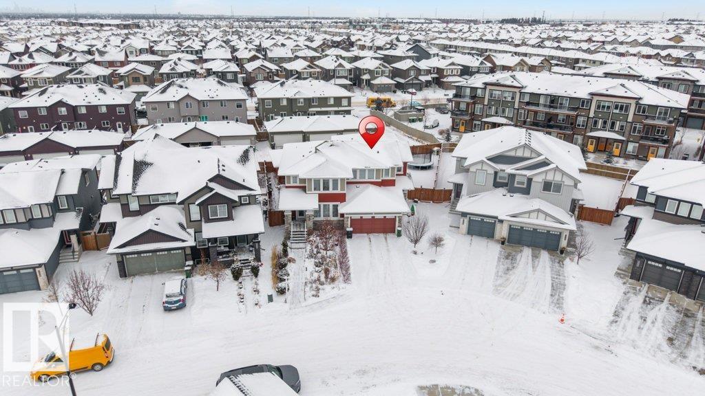 **FULLY FINISHED BASEMENT WITH SECOND KITCHEN **OPEN TO BELOW**SIDE ENTRANCE FOR BASEMENT**Welcome to this elegant 1,819 sq. ft. luxury duplex on a rare pie-shaped lot, offering style, space, and versatility. The open-to-below entry features soaring ceilings and a convenient powder room. The main floor includes a private den, a spacious living room with a modern electric fireplace, and a beautifully designed kitchen with quartz countertops, stainless steel appliances, ample cabinetry, and main-floor laundry. Upstairs, enjoy a serene primary suite with a spa-inspired ensuite and walk-in closet, plus two generous bedrooms and a large bonus room ideal for entertaining. The fully finished basement offers a separate entrance, second kitchen, living area, full bedroom, and full bath--perfect for guests or extended family. Fully landscaped, fenced, and complete with a composite deck, this home is the perfect blend of luxury and comfort.