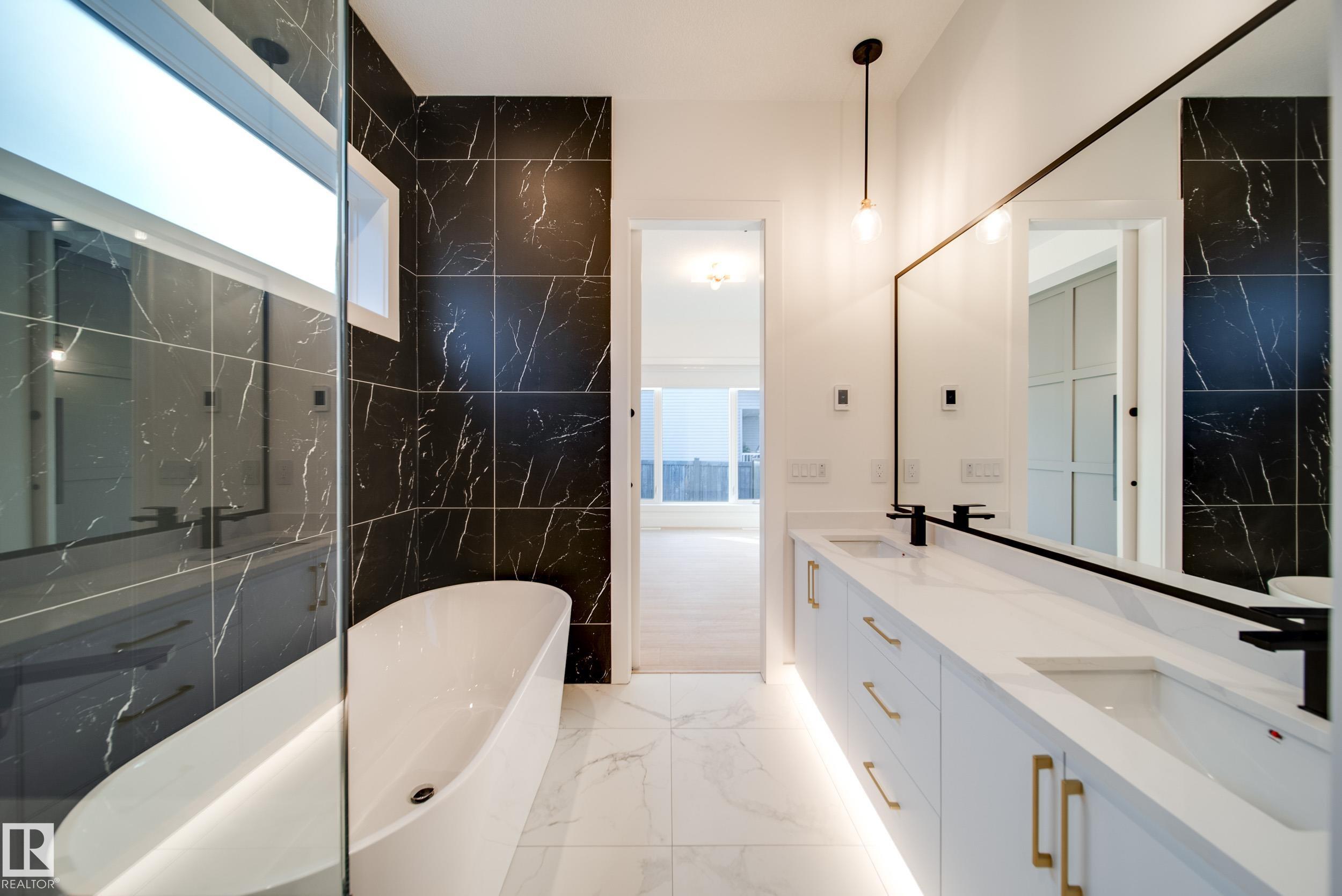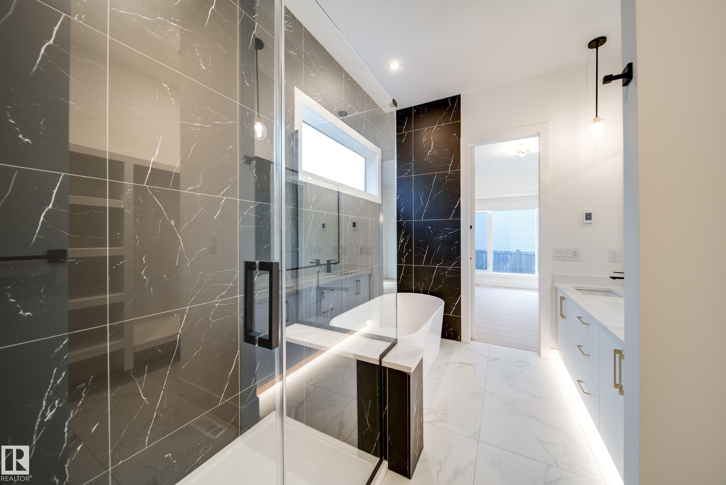 Introducing Spectrum Homes' "Luxury Greens" - a resort style living, executive style, half duplex bungalow in coveted Webber Greens. Custom designed by CM Interior Designs, this stunning home features 10' ceilings & 8' doors, 2 main level bedrooms, 2 full baths, an open concept layout & main floor laundry. The massive kitchen w/ walk-through pantry boasts a waterfall island, spice racks, garbage pullout & upgraded stainless steel appliances. The inviting living room offers a cozy fireplace, expansive windows (including window coverings) & open-to-below ceilings. The primary suite is a true retreat with a spa-like ensuite w/ freestanding soaker tub, tiled stand shower, dual sinks & walk in closet. Upstairs, a gorgeous loft w/ built-in wet bar & fireplace overlooks the open living area. Upgrades include a finished garage w/ built-in 220V charger, zoned smart A/C, exterior WiFi-controlled LED gem lights, exposed aggregate driveway & more!