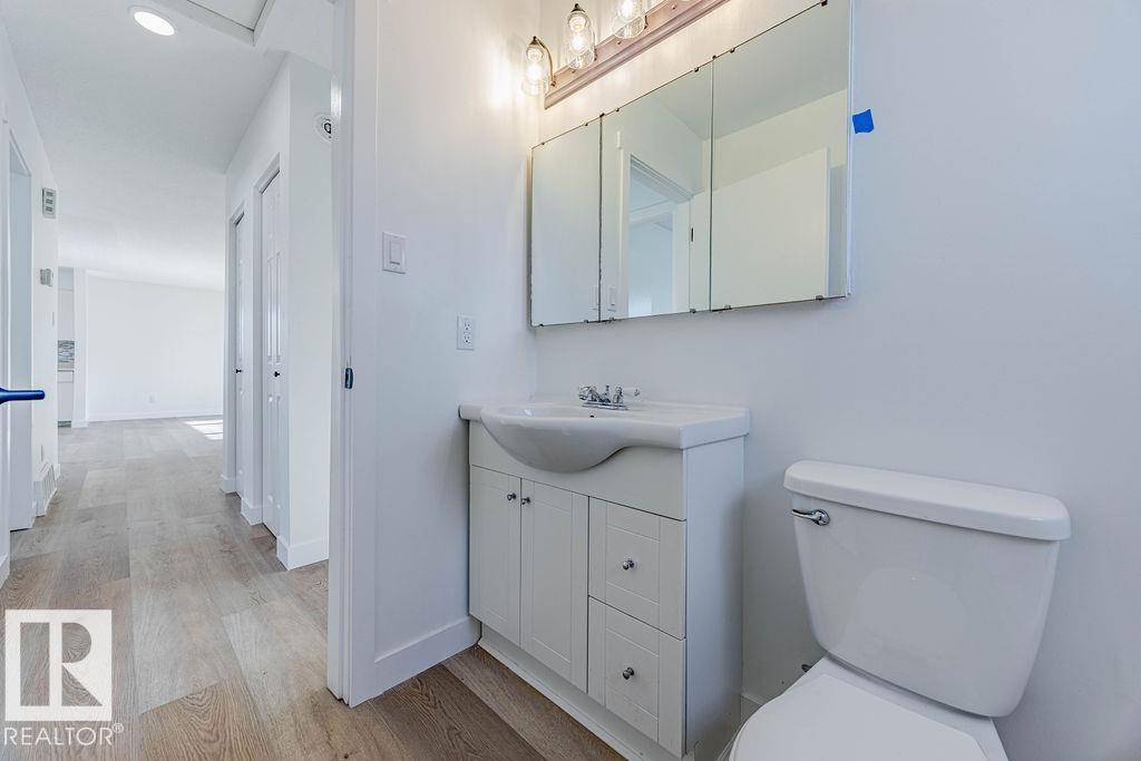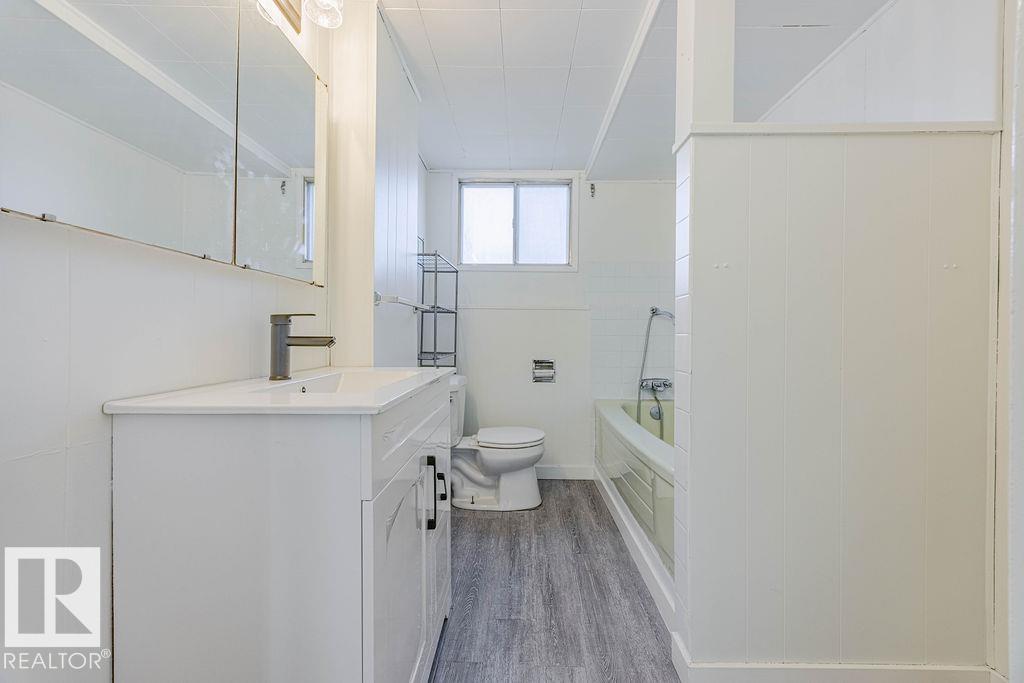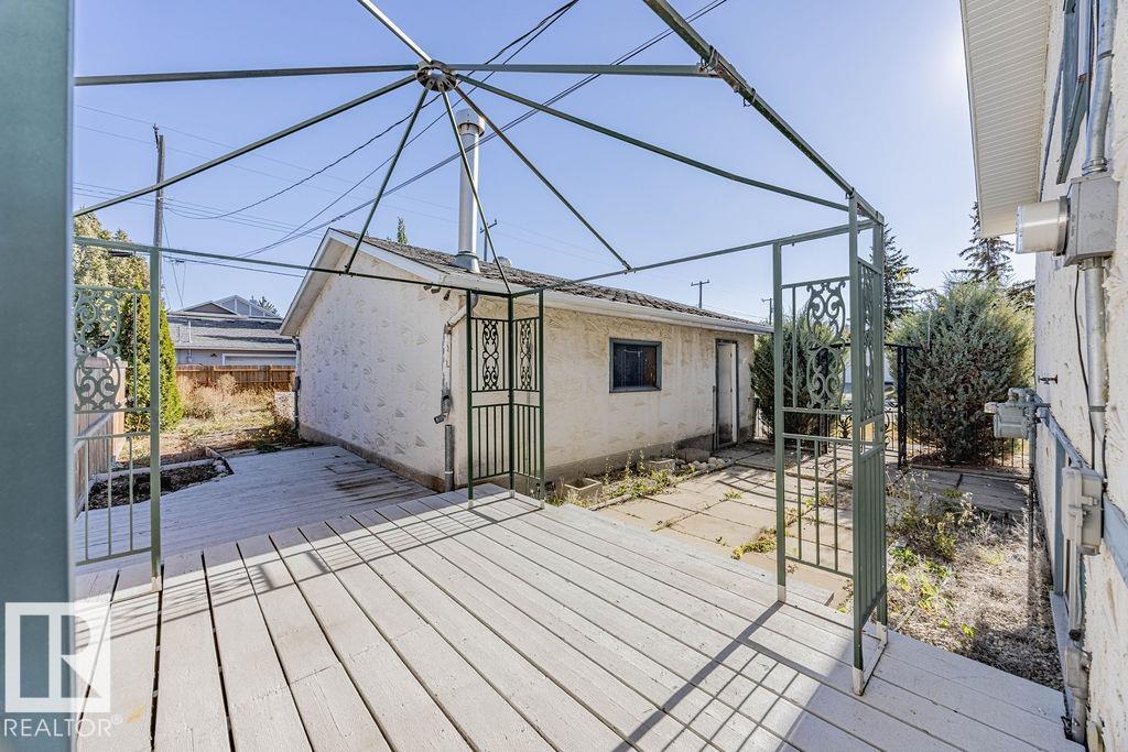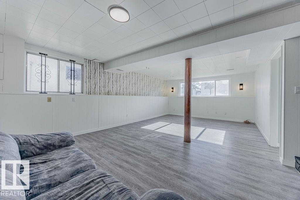 Beautifully renovated bi-level w/AC on a 50' x 148' corner lot in West Jasper Place! This well-maintained home sits on a 686.7 SQM lot and offers incredible potential for both living and future development. The main floor features a bright open-concept layout with a spacious living room, dining area, updated kitchen, 3 bedrooms, and 1 full bath. Downstairs you'll find a large family room, 4th bedroom, second bath, and plenty of storage. Enjoy the massive yard with a deck and a double garage. Updates include fresh paint, LVP flooring, light fixtures, baseboards, toilets, and door hardware. Major upgrades include vinyl windows, AC, high-efficiency furnace, and newer shingles. Zoned for RS - build up to 9 units. Across the street, new development highlights the area's STRONG growth. A fantastic opportunity to live, invest, or build in one of Edmonton's most desirable west-end communities! Buy and hold or Build ASAP