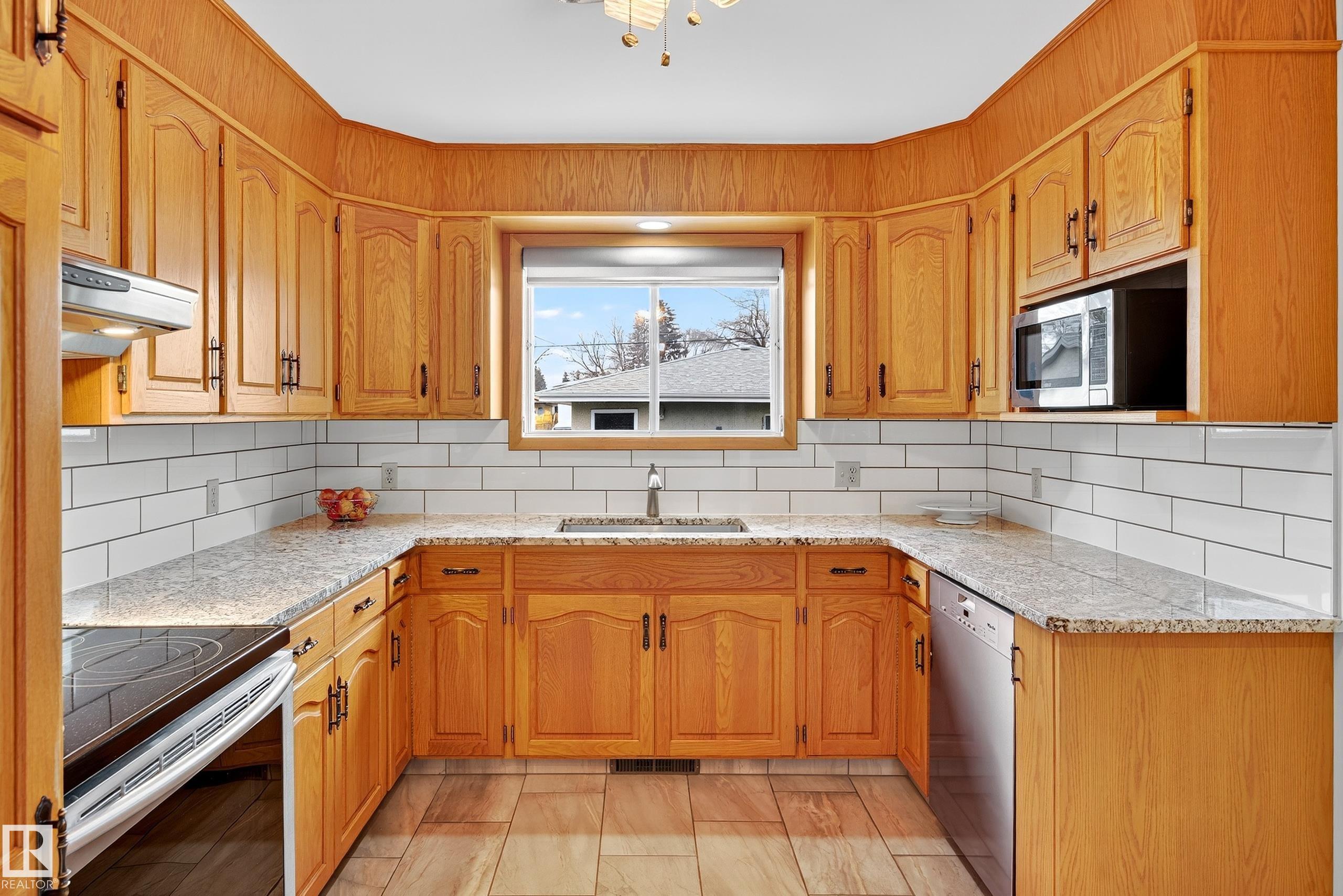 Pride of ownership is evident in this ORIGINAL OWNER custom-built bungalow home, conveniently located in west-central Edmonton - welcome to West Jasper Place. This spacious property is a HIDDEN GEM (surrounded by great neighbours!) and has been lovingly maintained throughout the years. The main floor features a spacious living room with beautiful bay window, hardwood & tile flooring, mahogany doors, lovely kitchen (with updated granite counter-tops & pantry), 3 bedrooms & a full bath. Downstairs, solid pine tongue & groove panel board throughout + a large rec room, 4th bdrm, 3 pc bath & laundry/storage space. The fully-fenced backyard is HUGE and ready for entertaining - complete with underground irrigation system, tranquil rock water feature, putting green, garlic garden, perennials, a sumac palm tree, gas plants and more! A massive 26x30 detached double garage (insulated & heated) with 3 car parking pad completes the property. Welcome home!