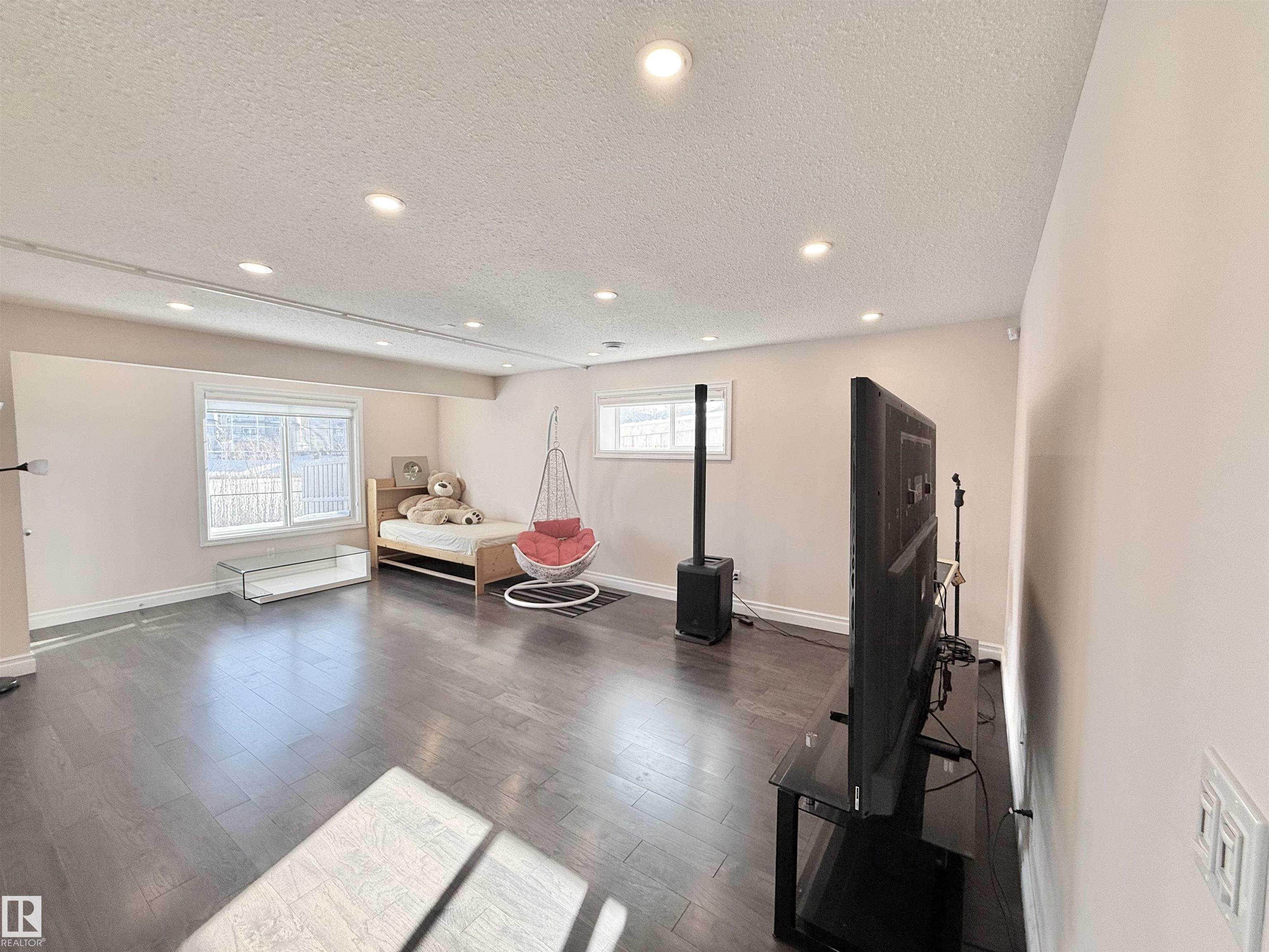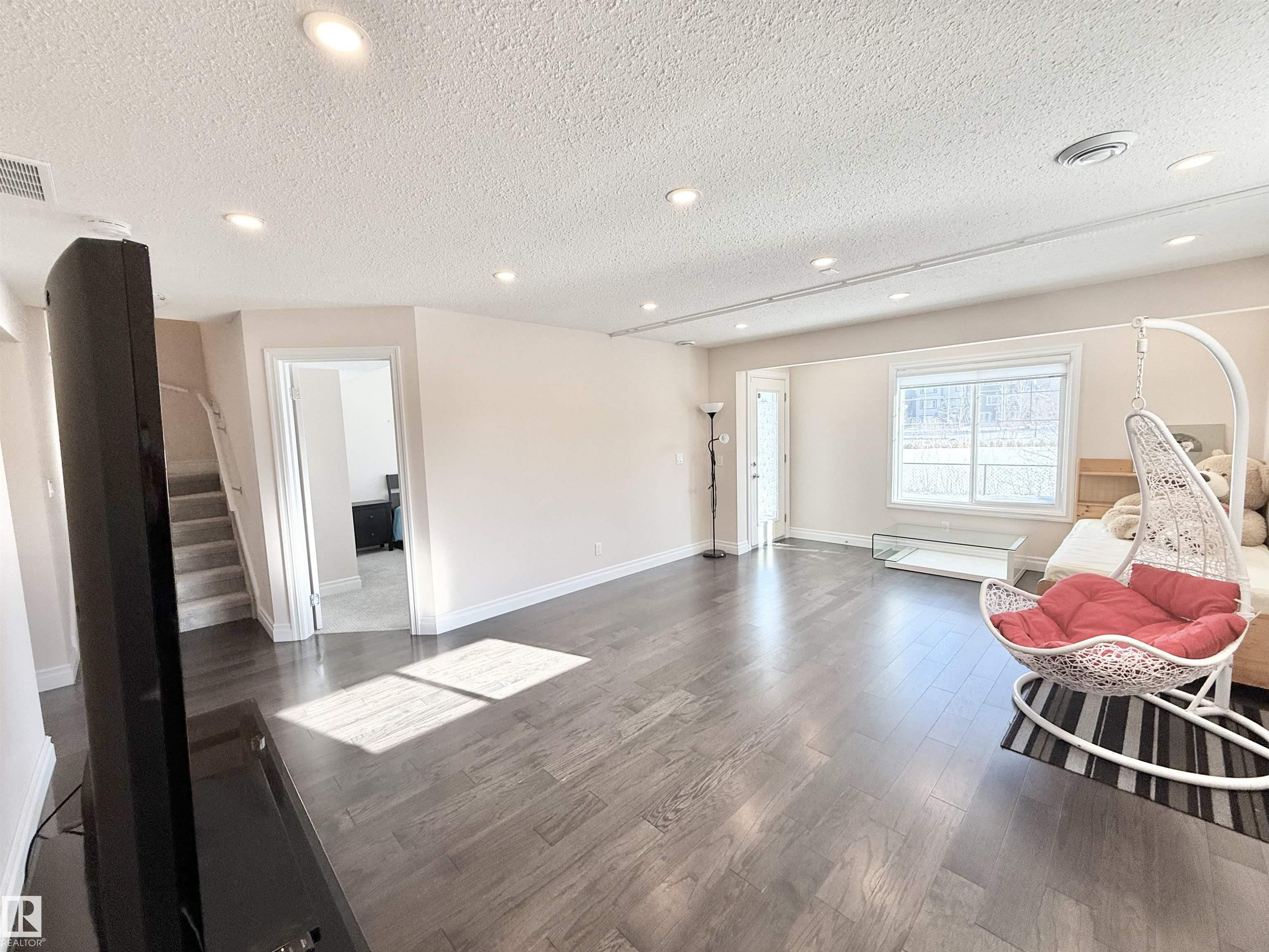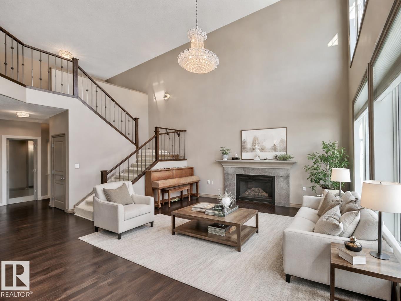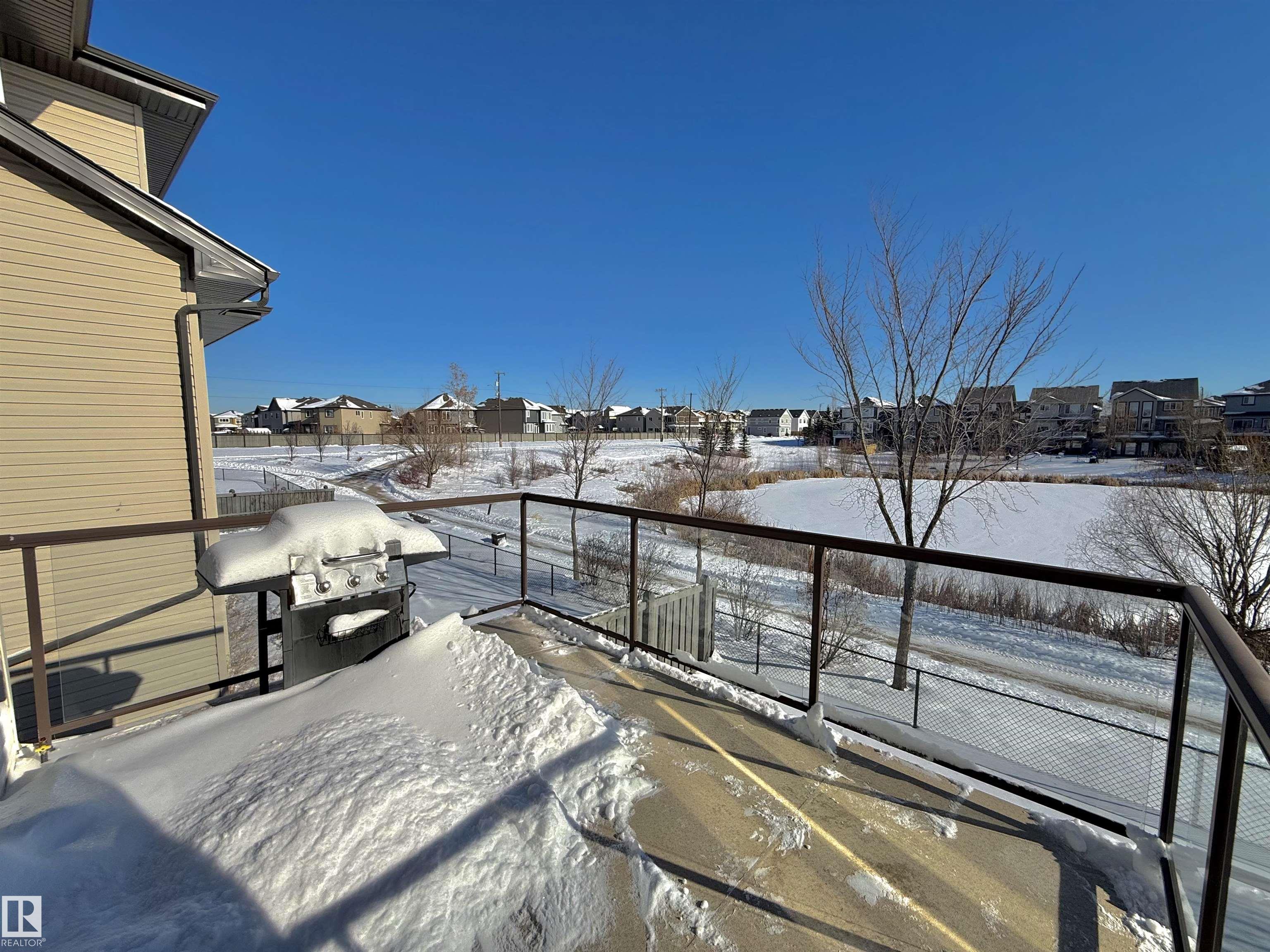 Welcome to this stunning lake-view, walkout basement two-storey home in prestigious Windermere. Built in 2013, this home offers over 3,300 sq.ft. of total living space, including 2,330 sq.ft. above grade plus a fully finished basement. The main floor features 9-ft ceilings and a dramatic 19-ft open-to-above living room with a full wall of windows, filling the space with natural light. Hardwood flooring complements the open-concept kitchen with stainless steel appliances, granite countertops, ample cabinetry, and a walkthrough pantry. A functional mudroom with laundry and sink connects to an oversized attached double garage. This level also includes a bedroom/office and a 2-piece bath. Upstairs offers a bonus room, a spacious primary suite with lake views, a 5-piece ensuite and walk-in closet, plus two additional bedrooms and a full bath. The bright walkout basement features a large family room, two bedrooms, and a full bath. Close to schools, shopping, and Henday. Rare opportunity!