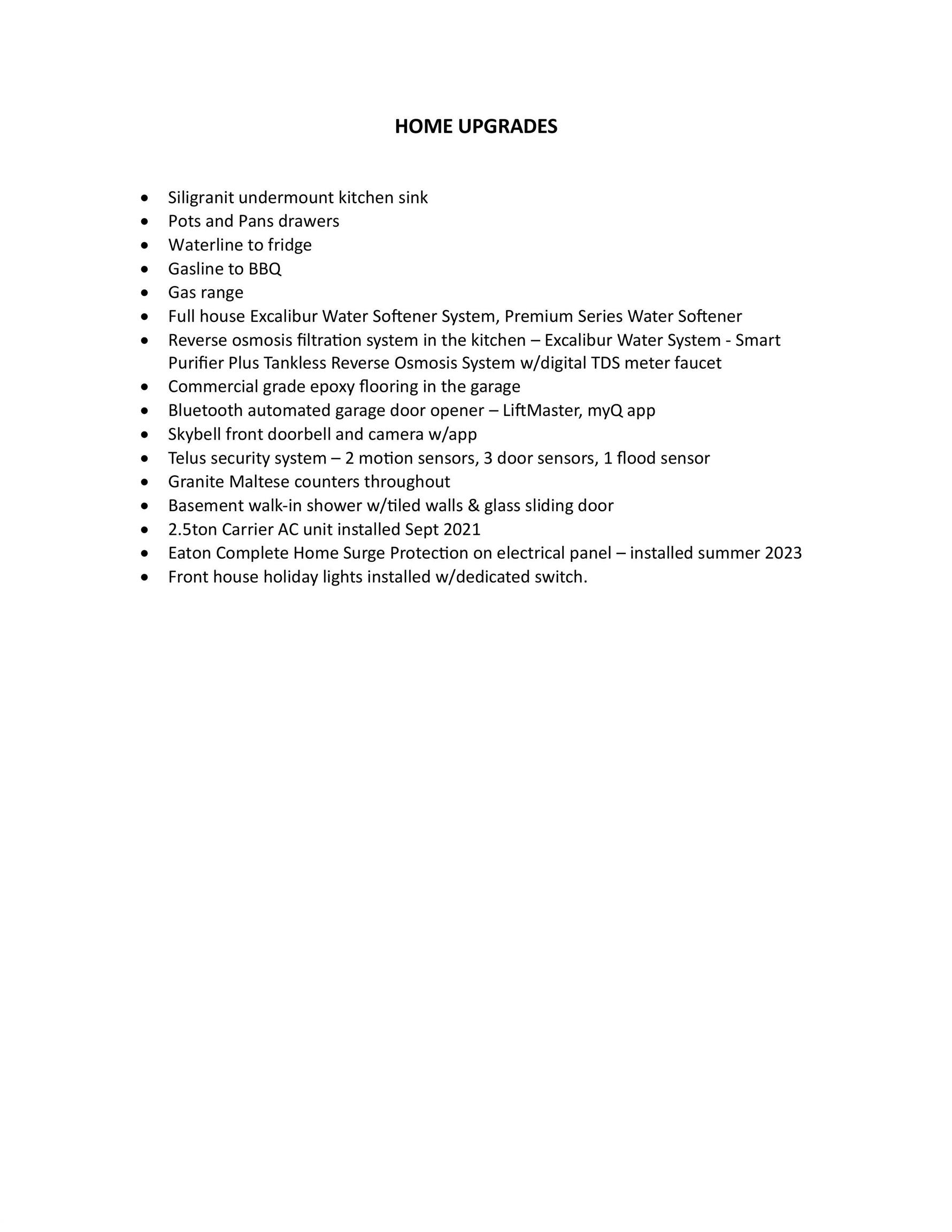 Air Conditioning-Central, Alarm/Security System, Dishwasher-Built-In, Dryer, Garage Control, Hood Fan, Humidifier-Power(Furnace), Oven-Microwave, Refrigerator, Stove-Countertop Gas, Washer, Water Softener, Window Coverings, TV Wall Mount |