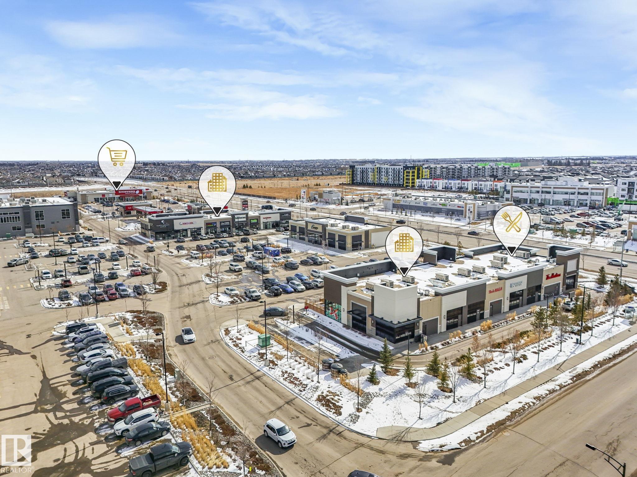 Half Duplex in the sought after Community of Windermere! Built by Dolce Vita Homes with 1441sf & featuring an Open Concept Floorplan on the Main Level with Rich Hardwood Flooring. Kitchen with Granite Counter-Tops, Large Island w/ Counter Seating, SS Appliances, Upgraded Rich Cabinetry & Good Sized Pantry. The Living Room w/ Feature gas fireplace & Dining Space are Spacious & Bright w/ West Facing Windows Overlooking the Large Yard & Your Deck w/ BBQ Gas Line Perfect for summer Grilling! A 2pc Powder Room & Access to your Single Attached Garage Complete this Level. Upstairs you will find Two Primary Bedrooms each with their Own Ensuite & Walk-In Closets. Laundry is a Breeze w/ Convenient Upper Laundry Room. The basement is Partially Finished w/ 4pc Bathroom & 3rd Bedroom/Flex Space. Furnace 2023, Dishwasher 2023, Dryer 2026. Walking distance to shops, dining, services & fitness at Movati! Minutes from the Windermere Golf & Country Club! 10/10!
