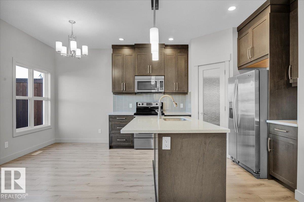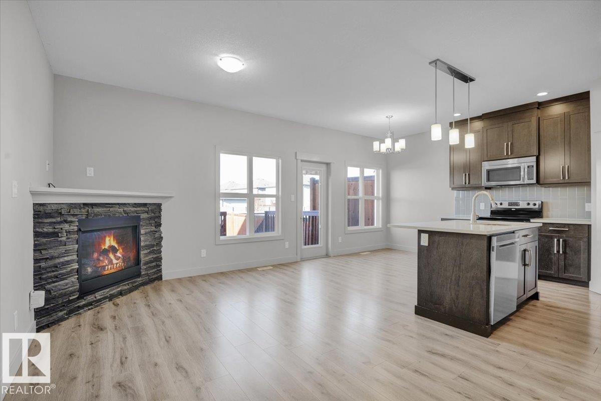 It Doesn't Get Any Better! Well Maintained Fully Finished 2 Storey Half Duplex with a Tandem Attached Garage. This modern 1,506sq ft home features an inviting open-concept main floor, 9' ceilings & lots of natural light. The living room has a corner gas fireplace, kitchen boasts a large eat-up island, quartz countertops, corner pantry & SS appliances. Dining area with a garden door to the large back deck. 2pc bathroom & access to the insulated garage. Upstairs features 3 bedrooms, 4pc bathroom, convenient laundry area, huge primary bedroom has a 5pc ensuite & walk-in closet. The basement offers its OWN LIVING SPACE, separate side entrance, 2nd kitchen, 4pc bathroom, large bedroom, 2nd laundry & good storage space. Enjoy the West facing back yard with low maintenance landscaping. Easy access to HWY 21, 15, schools, parks, shopping, golf, restaurants, The Dow & Shell Scotford worksites. Welcome Home!