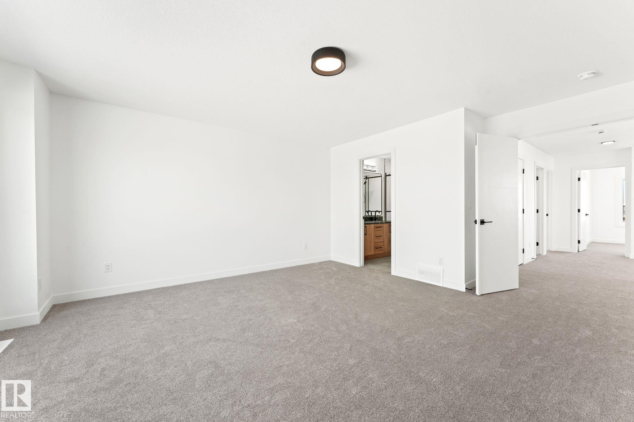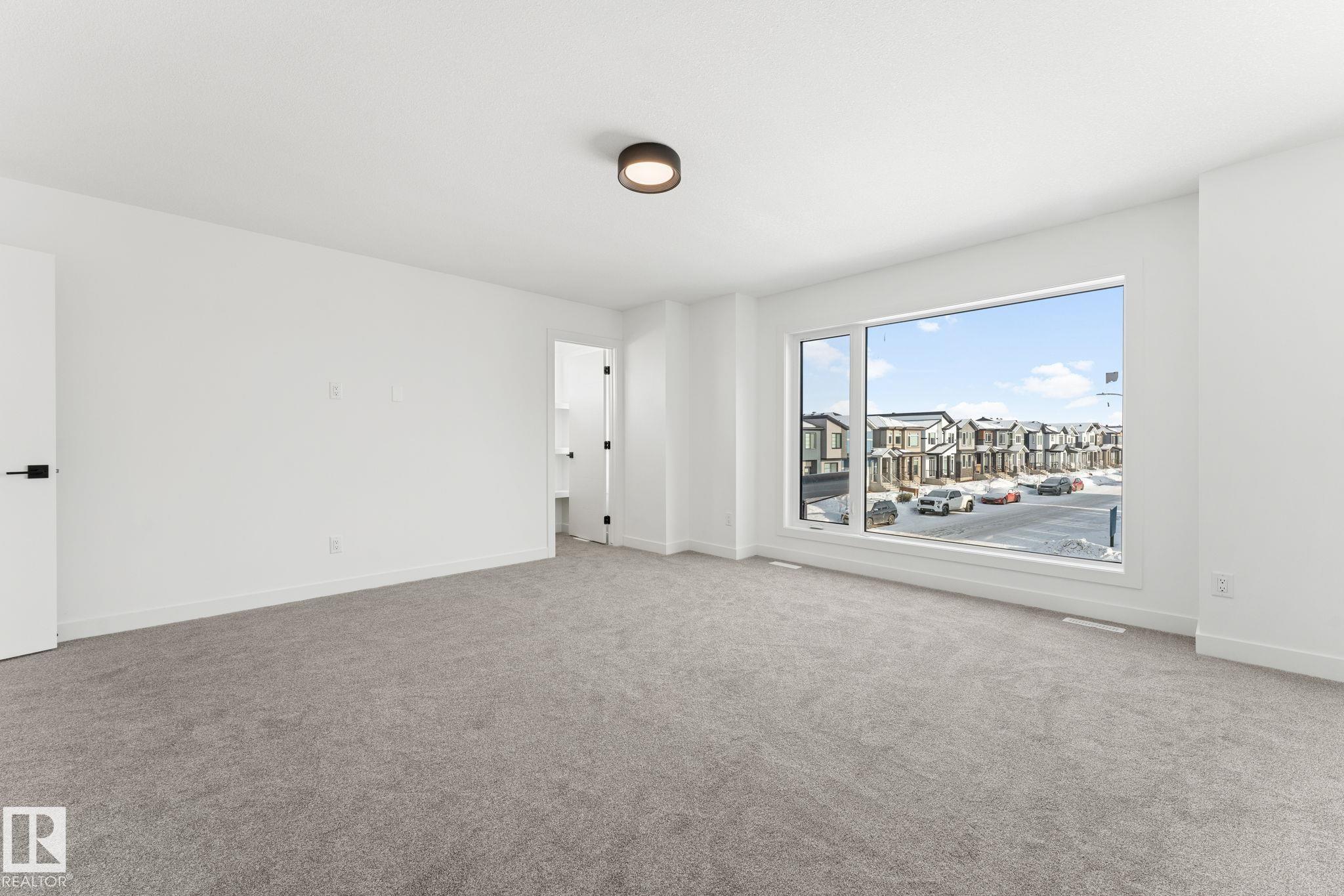 Welcome to this beautifully crafted Valencia Homes property in Fort Saskatchewan, situated on a PREMIUM CORNER LOT close to schools, parks, and everyday amenities. Offering over 1,800+ sq ft of thoughtfully designed living space, the open-concept main floor features 9 FT CEILINGS, a spacious living room, and an UPGRADED KITCHEN with BLACK HARDWARE and a GAS LINE FOR A GAS STOVE. A MAIN FLOOR BEDROOM and FULL BATHROOM provide flexibility for guests, a home office, or multigenerational living. The mudroom includes UPGRADED BUILT-IN CABINETRY and MDF SHELVING THROUGHOUT. Enjoy the UPGRADED WINDOW PACKAGE that fills the home with natural light. Upstairs features three spacious bedrooms, two full bathrooms, and a large BONUS ROOM. Enter through DOUBLE DOORS into the MASSIVE PRIMARY SUITE. Additional upgrades include UPGRADED TILE SHOWERS, UPGRADED RAILINGS, HRV SYSTEM, and SIDE ENTRANCE
