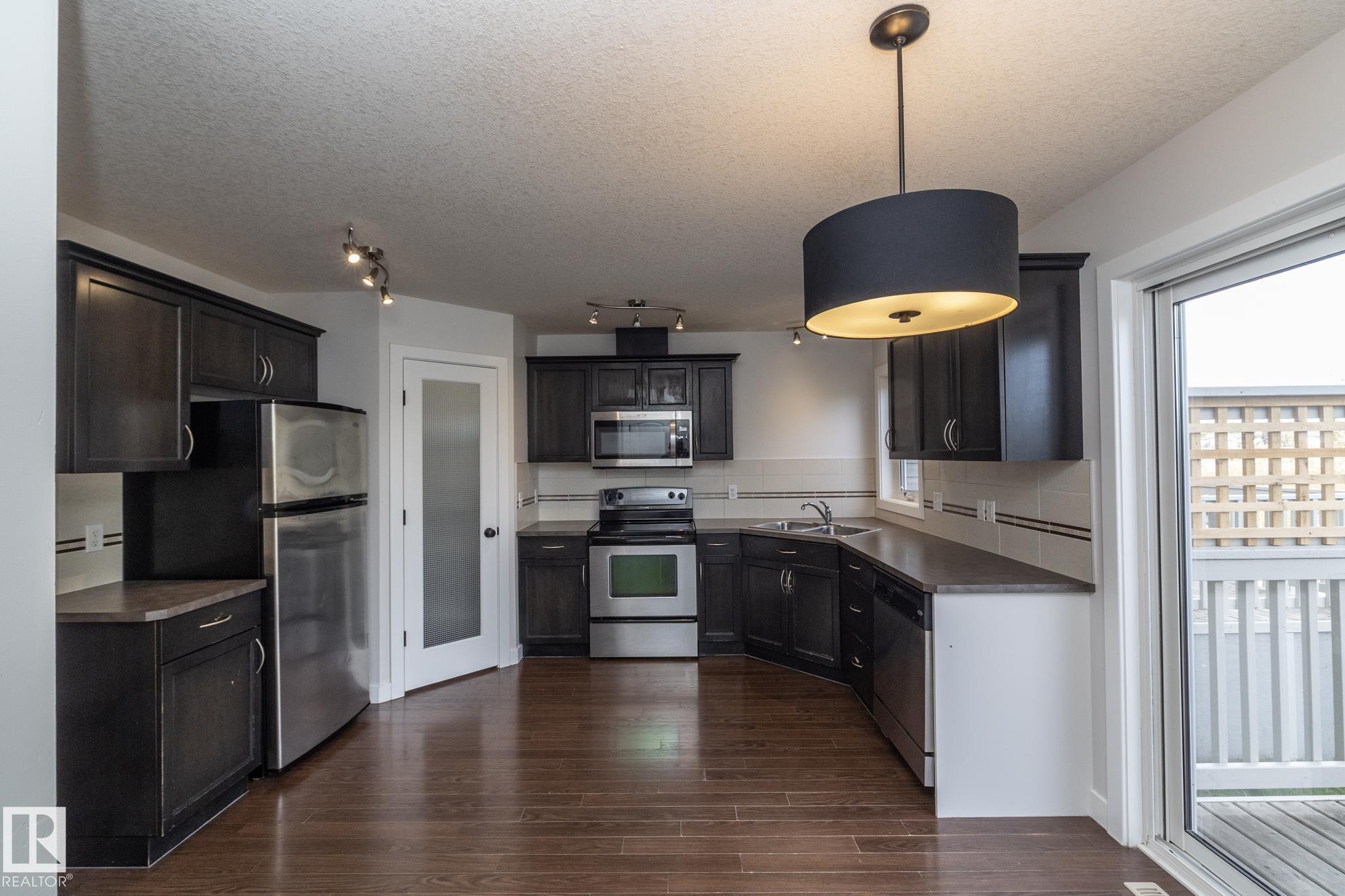 Backing the Ravine! This fully finished 2-storey offers nearly 1,800 sq. ft. of living space in a setting that's hard to beat. Step onto the deck & enjoy birdsong & rustling leaves as your daily backdrop. Inside, the main floor features an eat-in kitchen w/corner pantry, rich espresso cabinetry, & a bright living space w/south-facing windows that flood the home with natural light. Upstairs, the primary suite includes a walk-in closet, while two additional bedrooms & a full bath complete the level. The finished lower level adds a large family room w/a cozy gas fireplace--perfect for winter evenings. Recent updates include fresh paint & new carpet throughout. With 2 energized parking stalls, ample visitor parking, & a quiet cul-de-sac location, this property combines comfort with practicality. Trails leading into Devon's stunning river valley are just steps away, & commuting is simple with quick access to Leduc, EIA, Nisku, Acheson, & Edmonton. So what are you waiting for? Come take a peek and fall in love.