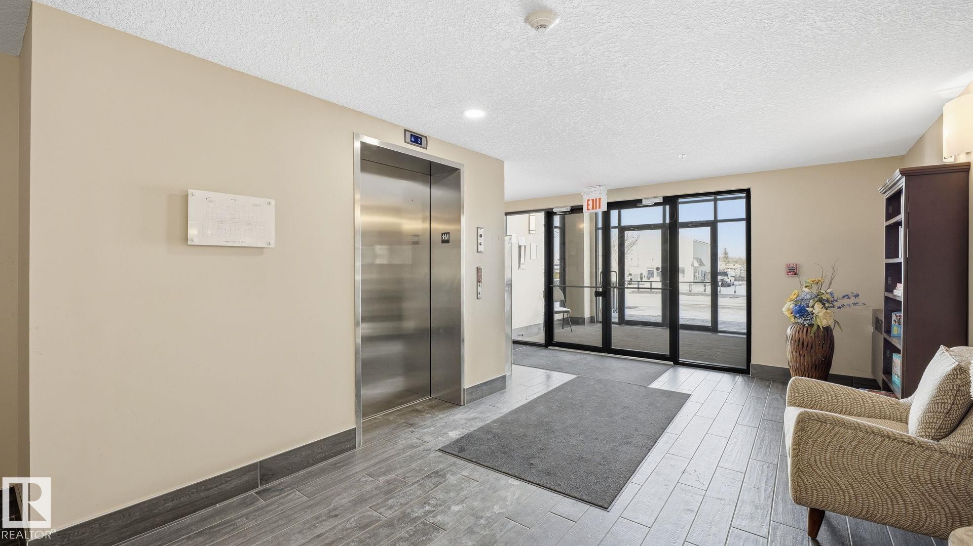 Welcome to The Ridge! Fantastic views in a highly central location this IMMACULATE, freshly painted TOP-FLOOR 2 bedroom/1 bathroom condo blends comfort w/modern elegance in the heart of Devon--steps from schools, parks, shops, restaurants, outdoor pool, arena, & Devon's scenic river valley trail system. Light & bright, this unit offers an open-concept layout complete w/9' ceilings & 12' vaulted sections, vinyl plank flooring, quartz countertops, featuring a crisp light toned kitchen w/tile backsplash, all appliances & peninsula w/eating bar. 4 pce bathroom conveniently located directly off primary suite. In-suite laundry room w/stackable washer/dryer & plenty of extra storage space. Enjoy a spacious north-facing covered balcony w/N.Gas BBQ hookup. Unit is roughed-in for A/C, includes heat/water & comes w/TITLED underground parking stall #10 complete w/secure storage cage. Truly a RARE find! Don't miss your opportunity to view this beautiful home!