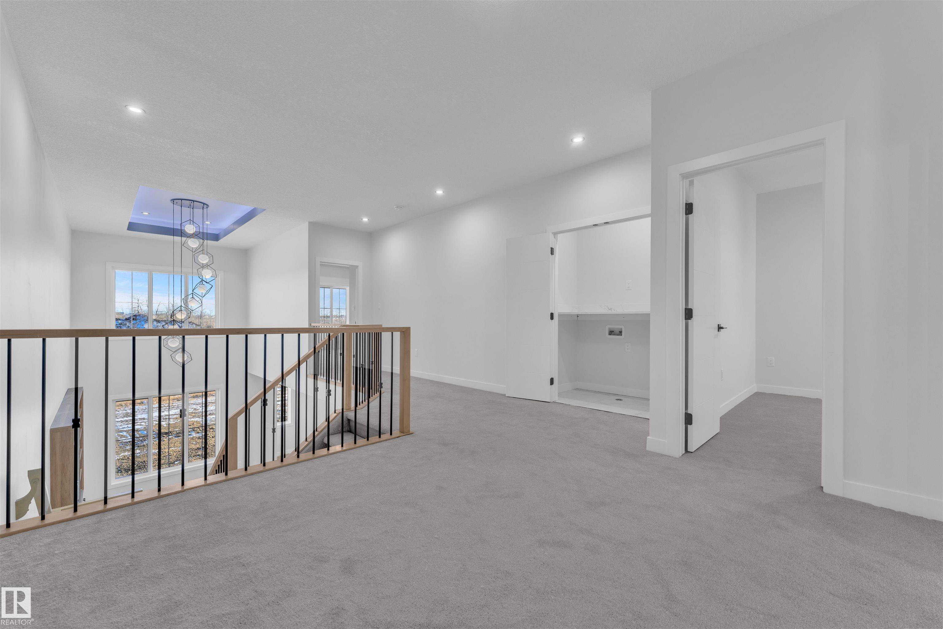 Beautiful Detached Home with Double Car Garage and Tons of Upgrades! Step inside to a bright, open-concept main floor that flows seamlessly throughout. The stunning open-to-above living area features a striking custom feature wall with an elegant electric fireplace. The main floor also includes a convenient bedroom and full bathroom, perfect for guests . The gorgeous built-in kitchen is truly a showstopper, complete with a centre island and a separate spice kitchen for added convenience. The dining nook offers direct access to the backyard, and the mudroom is upgraded with custom MDF shelving. An oak staircase leads you to a spacious bonus room on the upper level. Upstairs, you'll find 4 generous bedrooms and 2 beautifully finished bathrooms. The primary suite is expansive, featuring a large walk-in closet and a luxurious 5-piece custom ensuite. Laundry is conveniently located on the second floor.Additional features include a separate side entrance to the basement.
