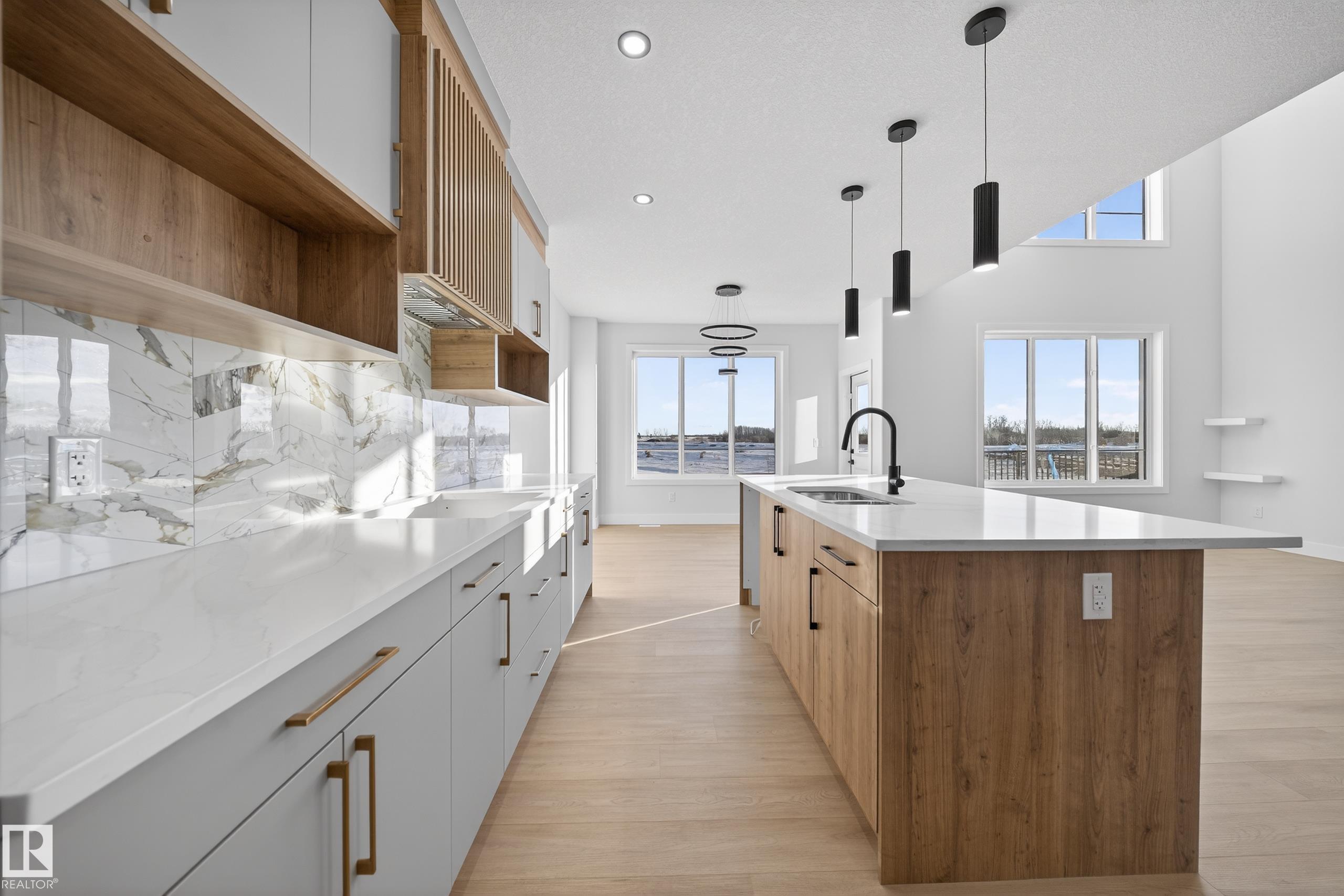 Stunning Walkout Home Backing Onto a Pond! Experience luxury living in this fully upgraded home featuring exceptional design and high-end finishes throughout. The modern kitchen includes premium upgrades and a convenient spice kitchen, perfect for culinary enthusiasts. The main floor offers a full bedroom/den and a full bath, ideal for guests or multi-generational living. Upstairs, you'll find two primary bedrooms--each with its own ensuite--plus two additional bedrooms sharing a common bath, and a spacious bonus room perfect for family gatherings. Large windows flood the home with natural light, highlighting its elegant craftsmanship. Located just minutes from the Edmonton International Airport, this home is walking distance to schools, 2 minutes to shopping and commercial areas, and offers easy access to Highway 2. This is a must-see home for anyone seeking comfort, style, and convenience in a beautiful setting!