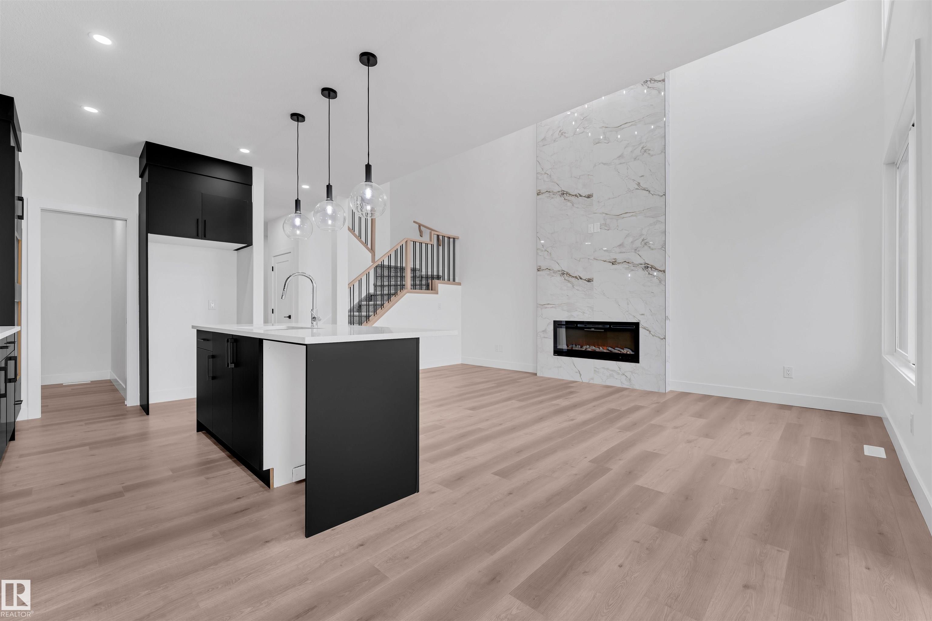 Welcome to this beautifully designed 3-bedroom, 2.5-bathroom home featuring an open-to-above living room that fills the space with natural light. The main floor includes a private den--perfect for a home office or study--as well as a spacious kitchen with a large walk-in pantry. Enjoy cozy evenings by the stunning feature fireplace with floor-to-ceiling tile in the living room. Upstairs, you'll find a generous bonus room ideal for family movie nights or a play area. The luxurious primary suite offers a 5-piece ensuite and a walk-in closet for your convenience. Outside, the large backyard provides ample room for entertaining, gardening, or play. Additional features include a double attached garage and thoughtful finishes throughout. This home offers space, style, and functionality--perfect for modern family living!