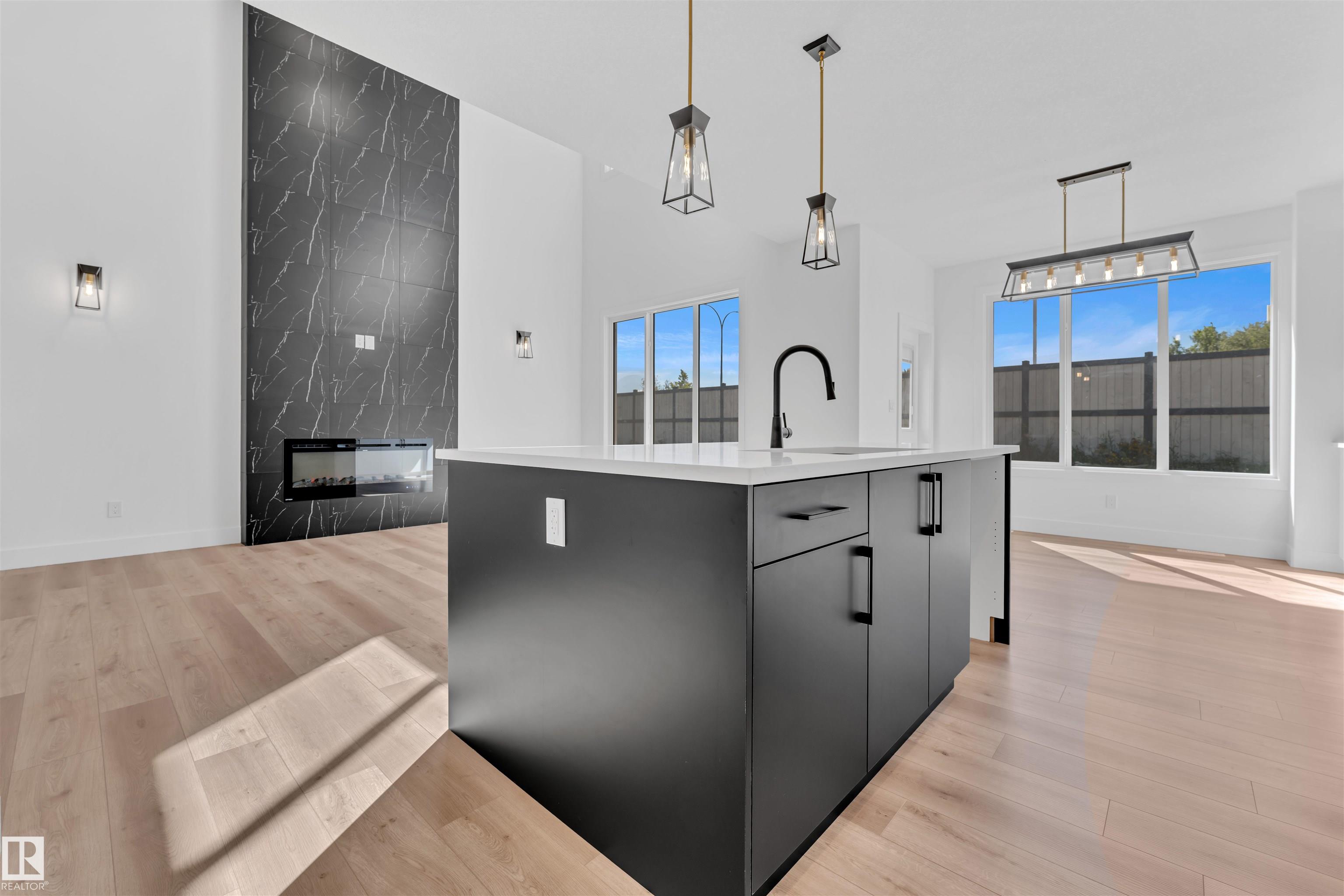Step into this beautiful 3-bedroom, 2.5-bathroom home that offers both comfort and style. The moment you walk in, you're welcomed by a striking open-to-above great room, flooded with natural light and a tiled fireplace--a true focal point for gatherings or quiet nights in. The heart of the home is the extended kitchen, featuring a smart layout with abundant cabinetry and prep space, seamlessly connected to a walk-through pantry for added function and flow. A main floor den provides the perfect space for a home office, creative studio, or quiet retreat. Upstairs, a spacious bonus room offers versatility for a media lounge or play area. The primary suite includes a spa-like 5-piece ensuite and a generous walk-in closet, creating a private sanctuary. Two additional bedrooms and a full bathroom complete the upper level. Practicality meets convenience with a laundry room featuring a built-in sink, and an attached double garage offering plenty of storage. Finished in a modern and neutral palette.