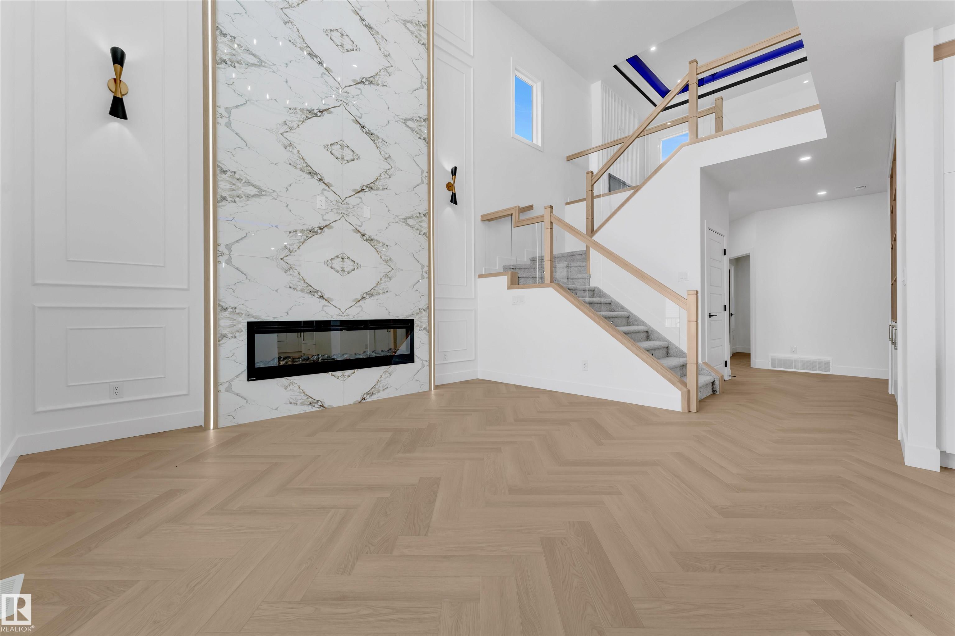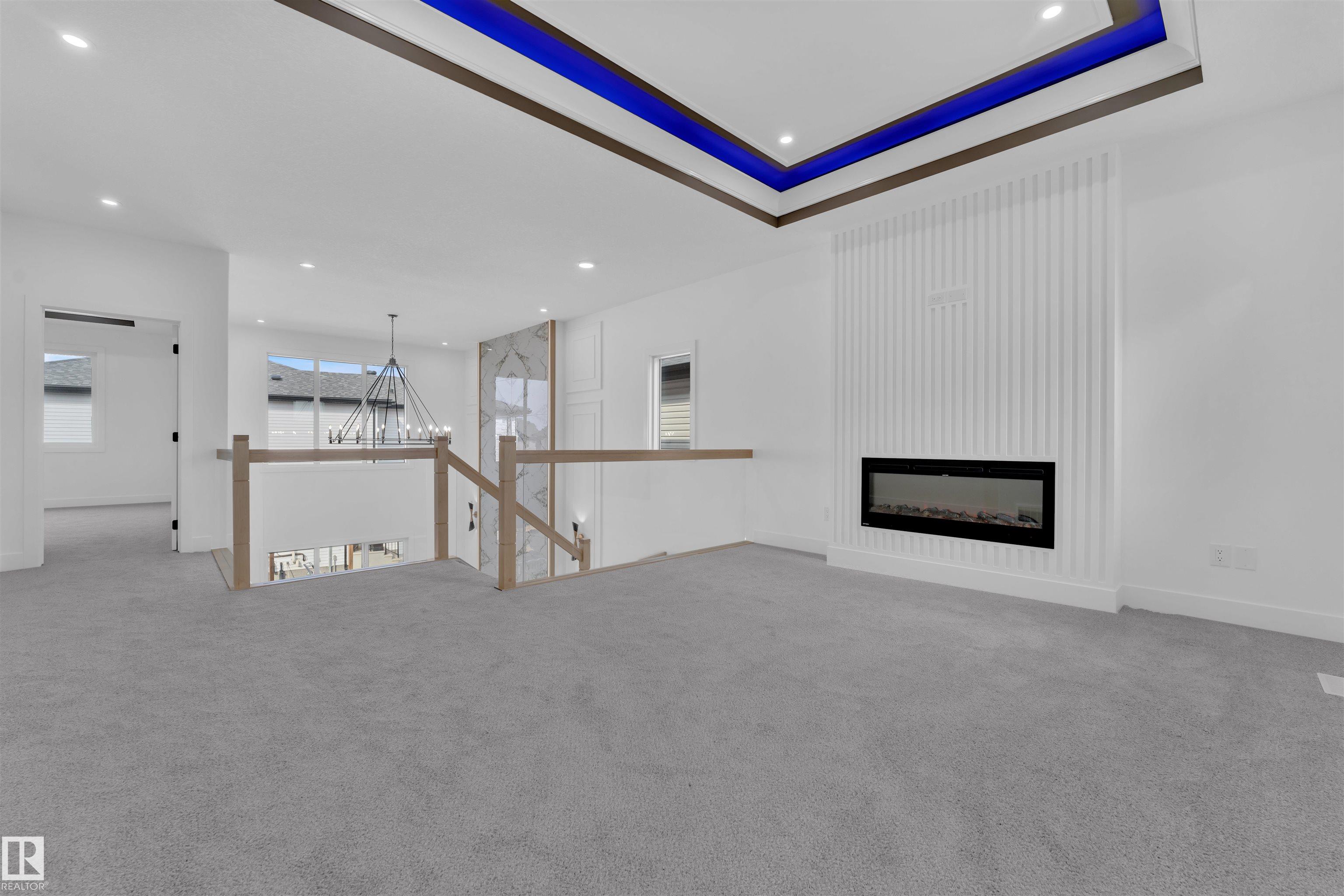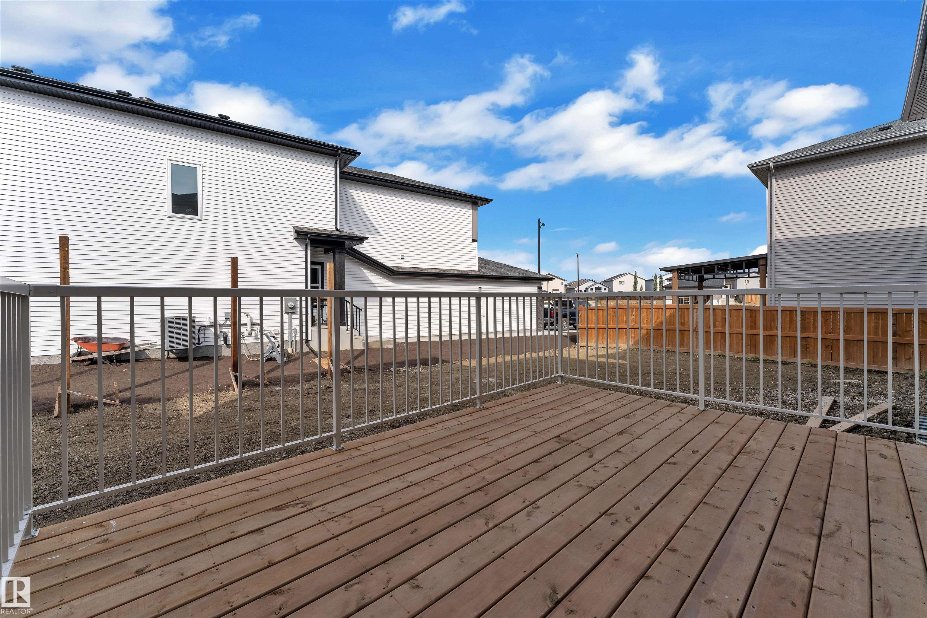 Welcome to this beautifully upgraded 3-bedroom + den home, thoughtfully designed for functional living. Boasting an extended main kitchen and a fully equipped spice kitchen, this home is perfect for families who love to cook and entertain. The main floor features a full bathroom and a versatile den--ideal for a home office or guest room. The spacious living area showcases a feature tiled fireplace, complemented by upgraded lighting that creates a warm and inviting ambiance. Upstairs, you'll find a cozy bonus room with a second fireplace and stylish rope lighting, perfect for relaxing evenings. The primary suite is a true retreat, complete with a 5-piece ensuite featuring a free-standing soaker tub, dual vanity with under cabinet lighting, and a huge walk-in closet. Two additional spacious bedrooms and a full laundry room round out the upper level. Additional highlights include: Built-in desk and custom shelving, Finished deck with durable metal railing and Many high-end upgrades throughout the home!