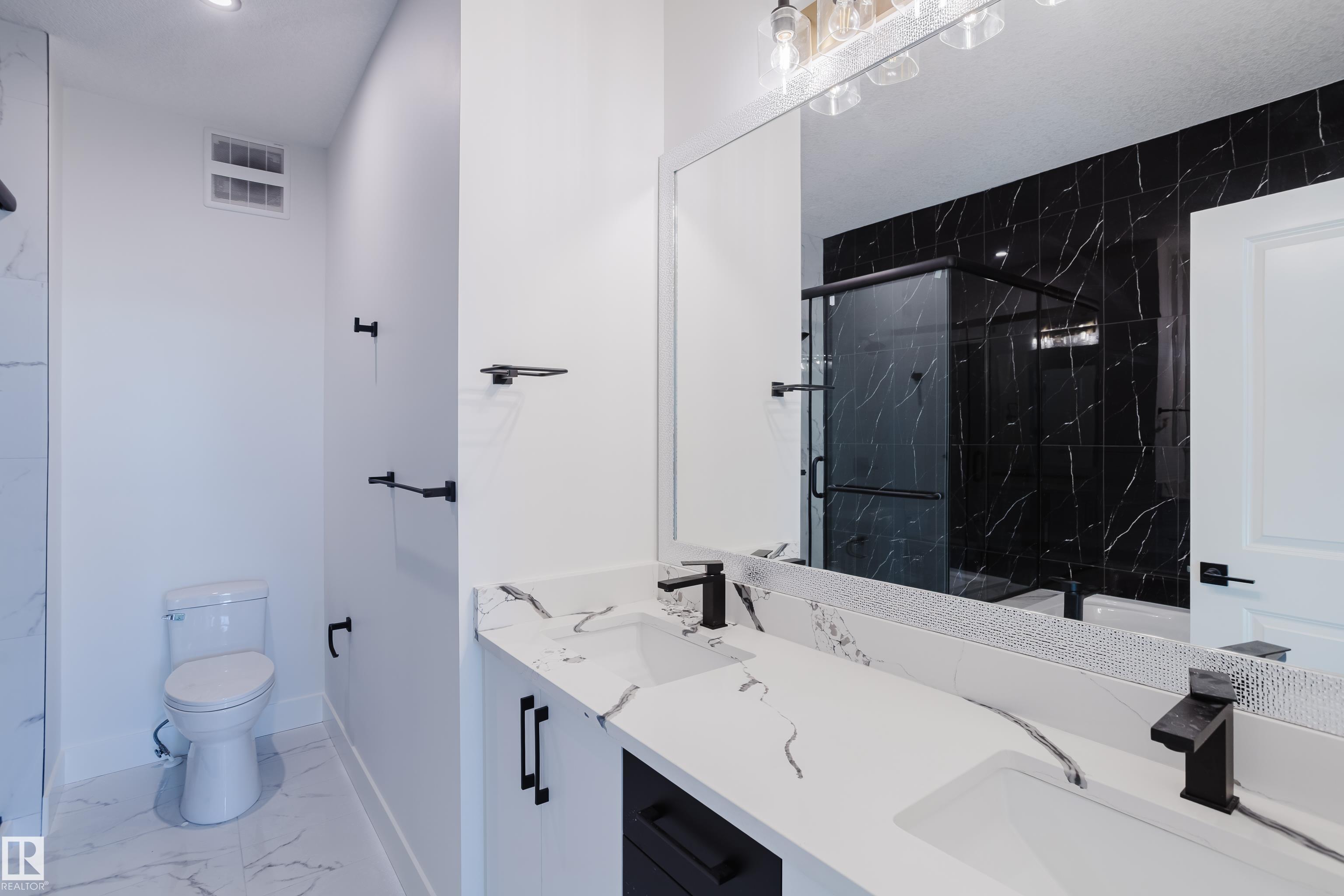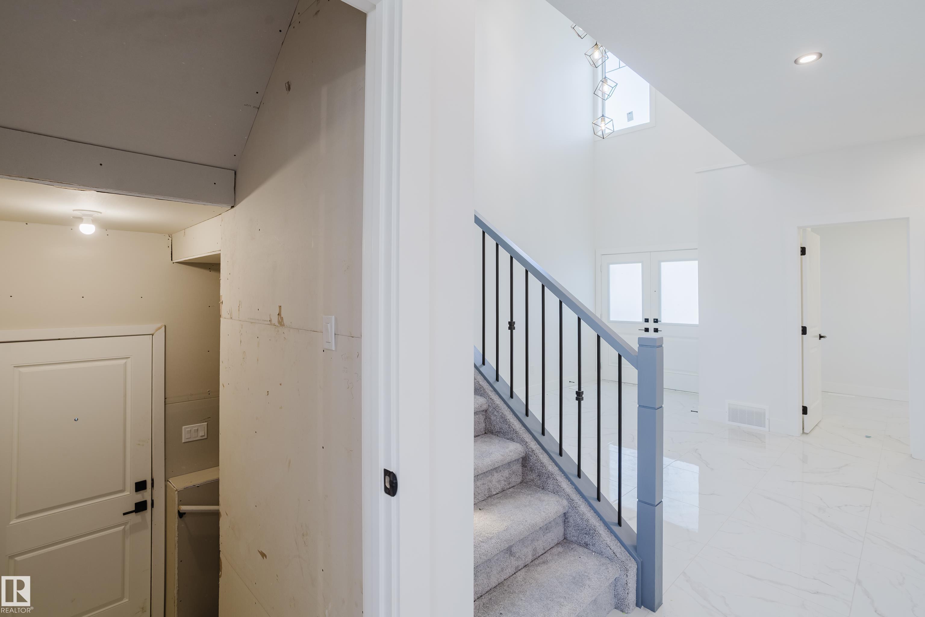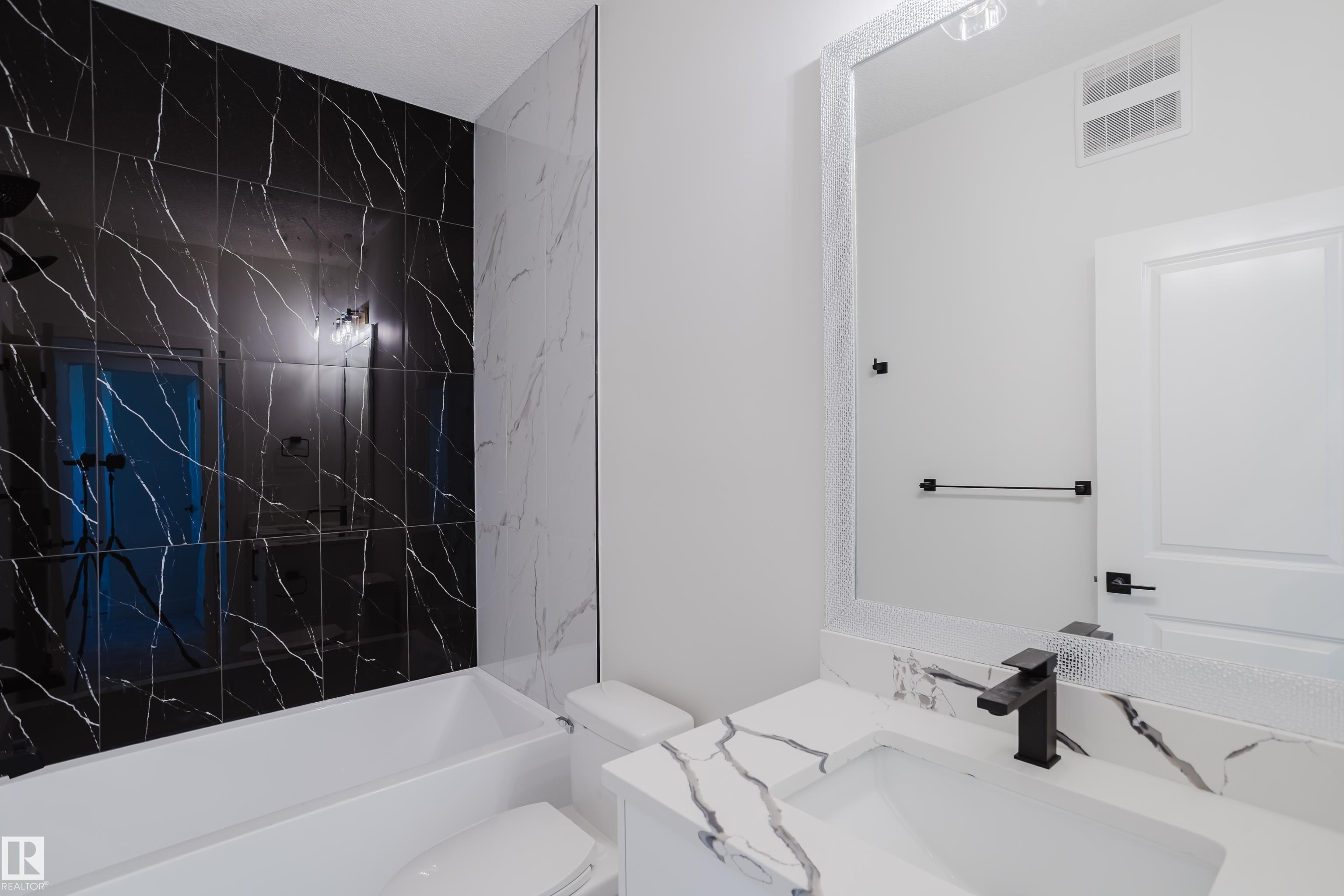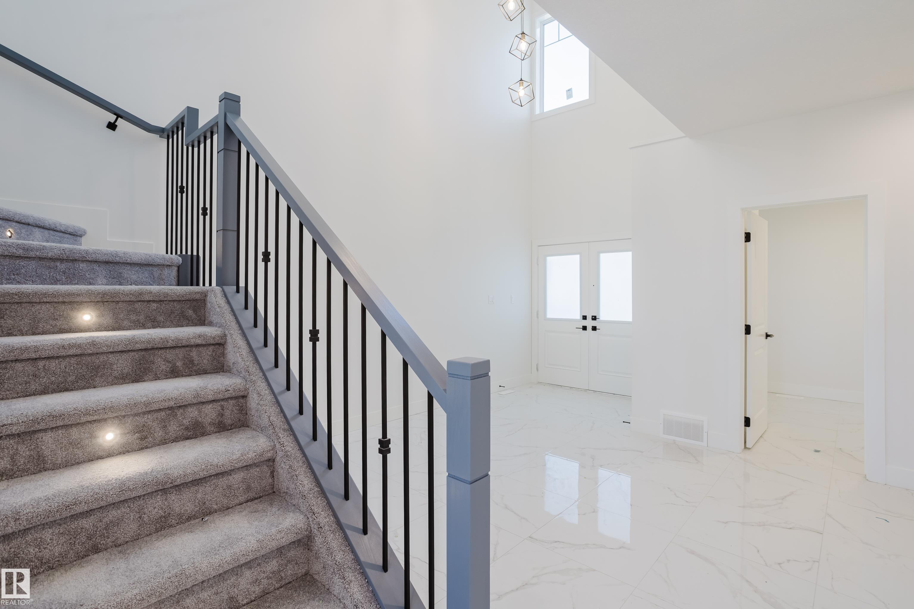Located in the quiet, family-friendly community of Meadowview in Leduc, this Ferris 4 model offers a spacious and functional layout with thoughtful upgrades throughout. The main floor features sleek tile flooring, a bright den that can serve as a home office or guest space, a full bathroom with a standing shower, and an open-concept kitchen and dining area with a convenient spice kitchen for additional storage and prep space. The great room includes a built-in fireplace, creating a welcoming setting for everyday living. Upstairs, you'll find three bedrooms, including a primary suite with a five-piece ensuite featuring dual sinks, a soaker tub, a tiled shower, and a walk-in closet. A bonus room and upper-level laundry add extra functionality. The home also includes a side entrance, offering potential for future basement development.