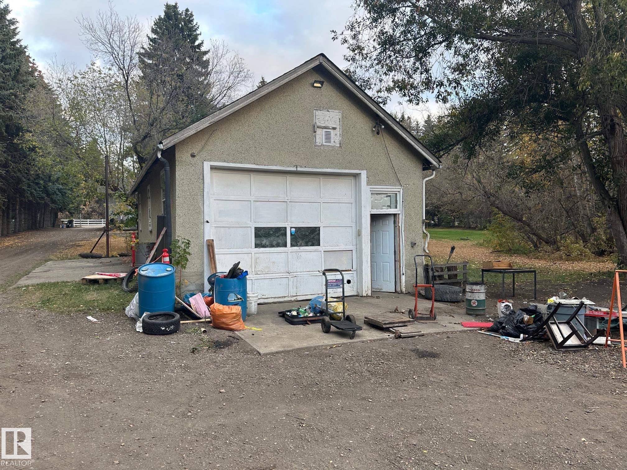 Potential for Future Development !!! Acreages don't get any closer to Sherwood Park than this! This 1,600 sq. ft. bungalow sits on a beautifully treed 3.58-acre parcel in Campbelltown Heights, just south of Wye Road. Enjoy full city water and sewer--no septic or water trucks. Features include 3+1 bedrooms, 2.5 baths, hardwood floors, a bright white kitchen with a skylight, and a spacious family room with a wet bar. Main floor laundry adds convenience. Outside offers a 24 ž 30 triple garage, 20 ž 40 shop, large deck, RV parking pad, newer roof and windows, upgraded insulation. Take a stroll through trails on your own property to a seasonal creek at the back or walk to nearby restaurants, shopping, and transit. Peaceful country living with city convenience--the best of both worlds!