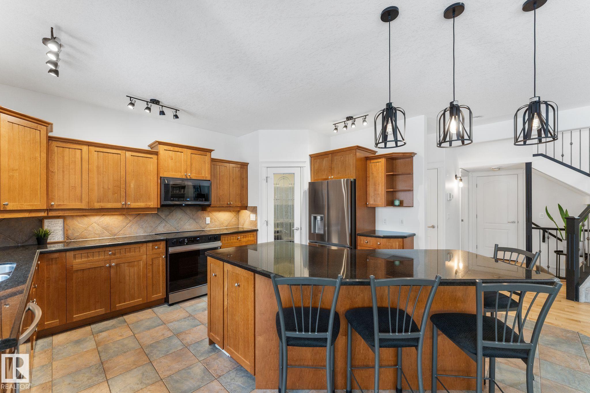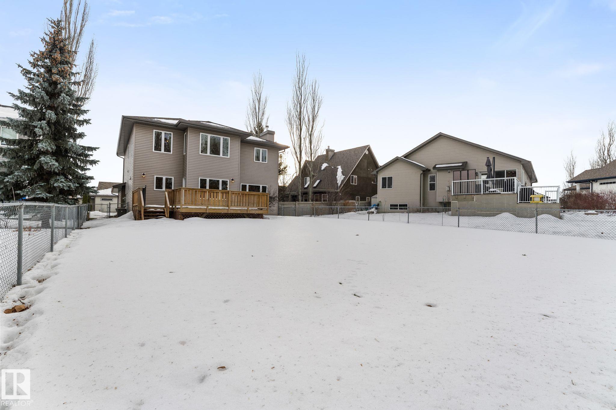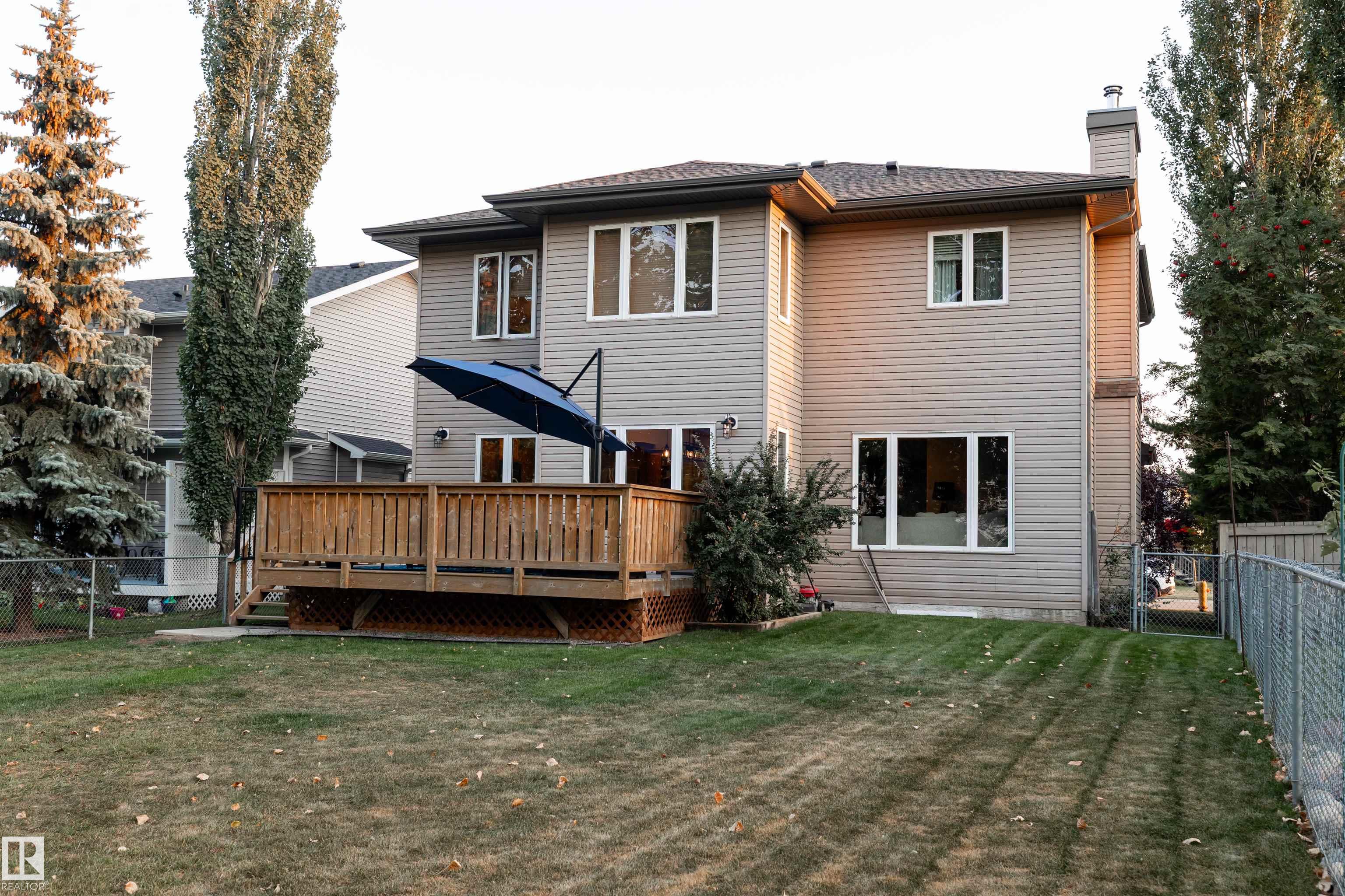 Spacious 2-storey family home offering over 4,000 sq ft of fully finished living space, backing onto the golf course with central A/C. The upper level features a relaxing primary retreat with sitting area, walk-in closet, and 5-piece ensuite with soaker tub, plus two large bedrooms with walk-in closets, a 4-piece bath, and a bright bonus room perfect for movie nights. The main floor includes hardwood , a front office or homework space, main-floor laundry, large front and back entrances, 2-piece bath, and an open-concept kitchen and living room with a cozy wood-burning fireplace. The fully finished basement offers in-floor heating, a large rec room plumbed for a wet bar, a fourth bedroom with walk-in closet, and plenty of storage. Mechanical updates and shingles completed in recent years. Enjoy the fully fenced yard, front veranda, back deck, and oversized garage--a wonderful home designed for family life and fun!