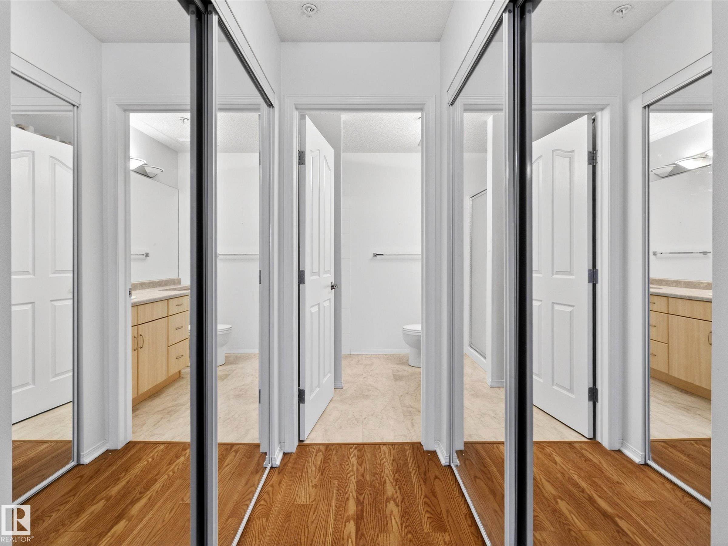 Top-floor living in Mission Hill Grande in the heart of St. Albert. This beautifully maintained 1,090 sq ft condo offers 2 bedrooms and 2 full bathrooms with a bright, comfortable layout and air conditioning. The galley-style kitchen provides excellent functionality and tons of storage, opening into an inviting living and dining area that is easy to furnish and enjoy. A dedicated in-suite laundry room and additional interior storage help keep everything organized. The spacious primary bedroom features its own ensuite, while the second bedroom and full bath add flexibility for guests, a home office, or roommates. Includes underground parking with storage. Well-managed building with a gym, games room, library, guest suite, and social room. Mission offers walkable access to trails and Mission Park, plus quick access to downtown Perron District amenities like the Arden Theatre and the St. Albert Farmers' Market in the summer.