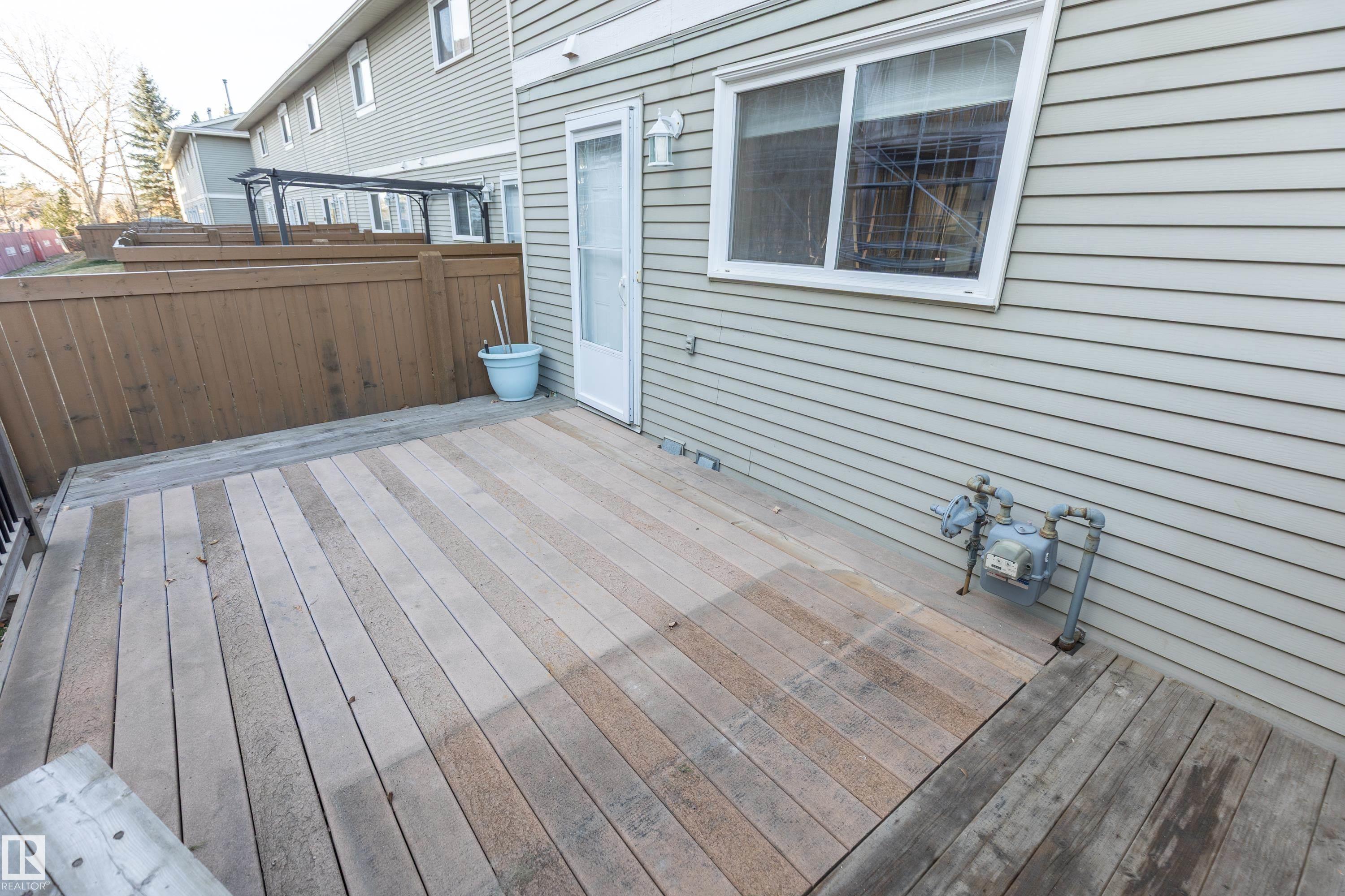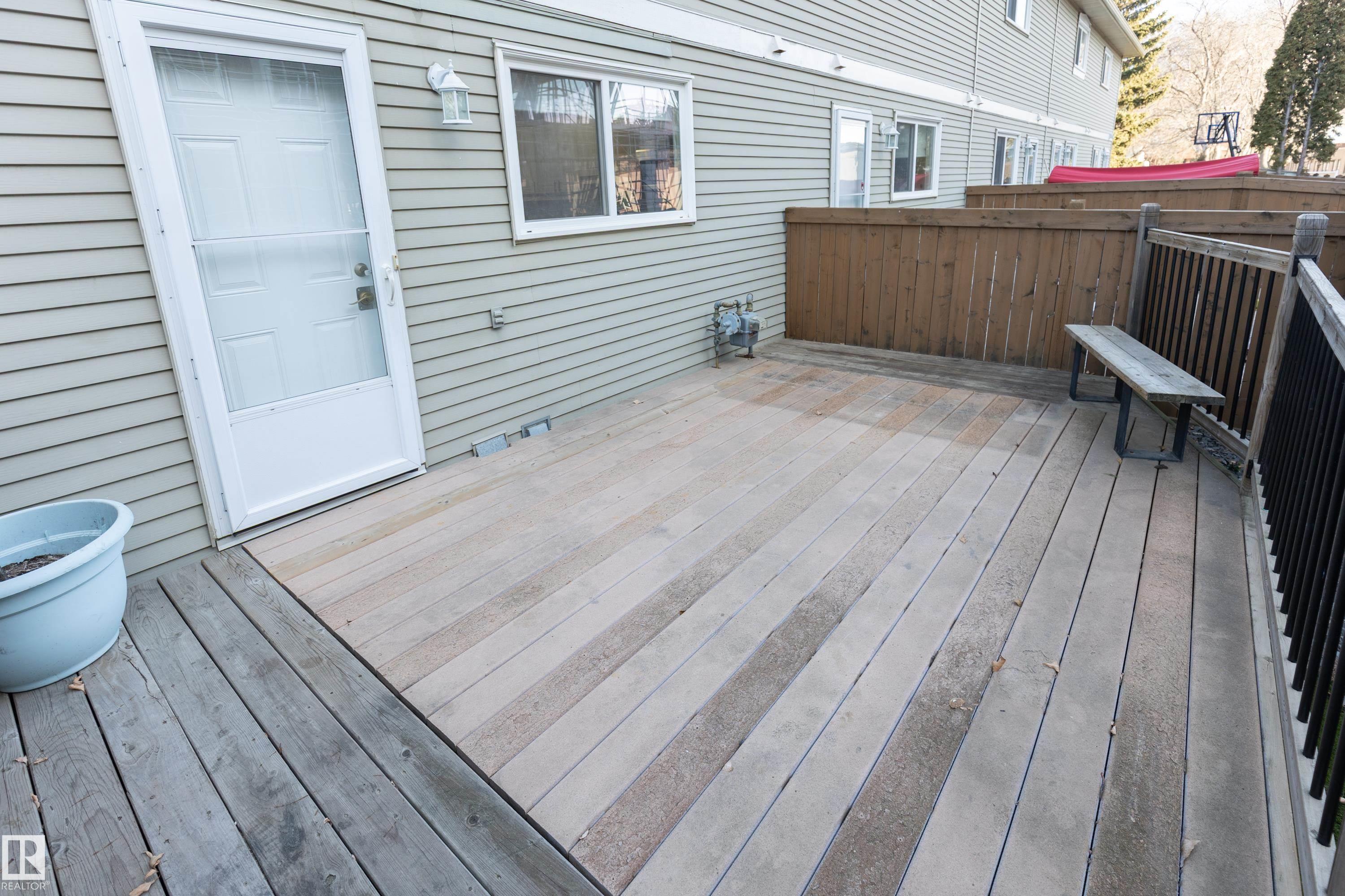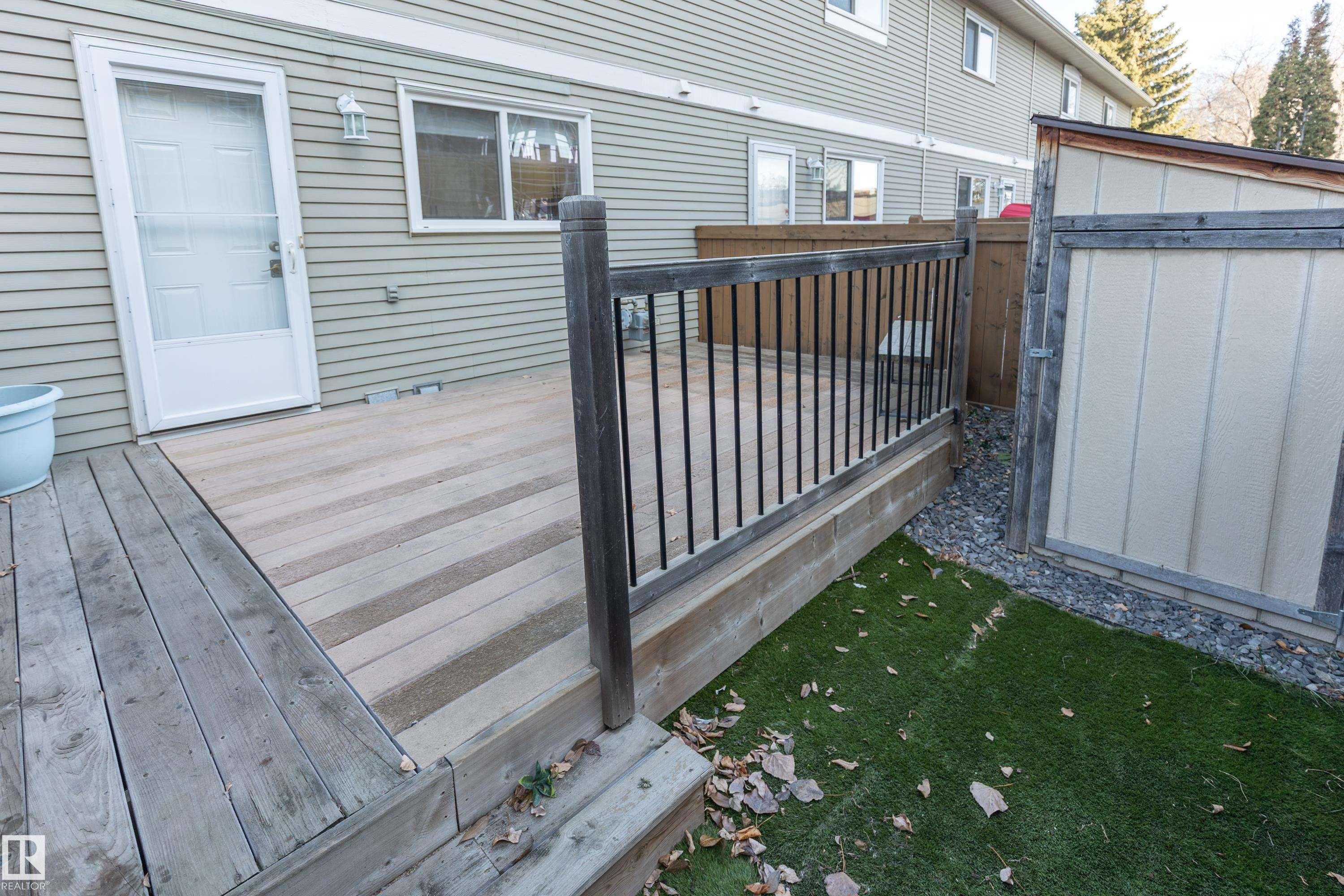 Welcome to Broadmoor Lake - an unbeatable location in Sherwood Park. This bright, clean end unit is just steps from Broadmoor Park, the lake & walking distance to Festival Place, Kinsmen Leisure Centre, the Sherwood Park Library, schools & more. A perfect starter home or investment property! The updated kitchen features newer stainless steel appliances, countertops, backsplash & taps. Laminate flooring flows through the main floor, which also includes a convenient 2pc bath. The living room offers a feature stone wall with an electric fireplace & the back door leads to a newer deck with walkway access plus a storage shed. Upstairs you'll find a large primary bedroom with generous closet space, 2 additional bedrooms & a refreshed 4pc bath with newer cabinetry & tub liner. Completing the home is a partially finished basement with a newer electrical panel & pre-wiring for completion & 2 parking stalls located right out front. The complex has newer windows & roof, is pet-friendly & professionally managed.