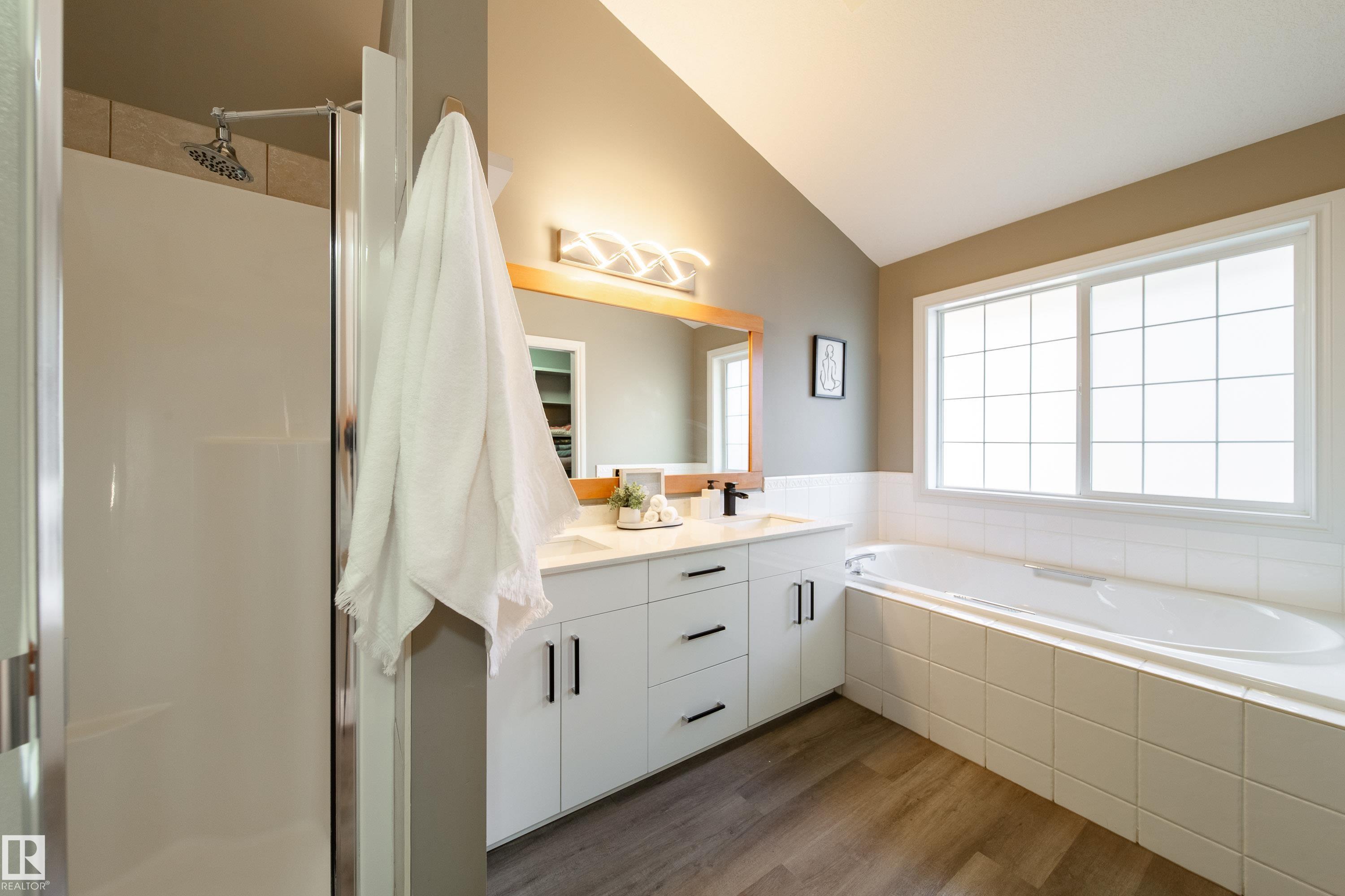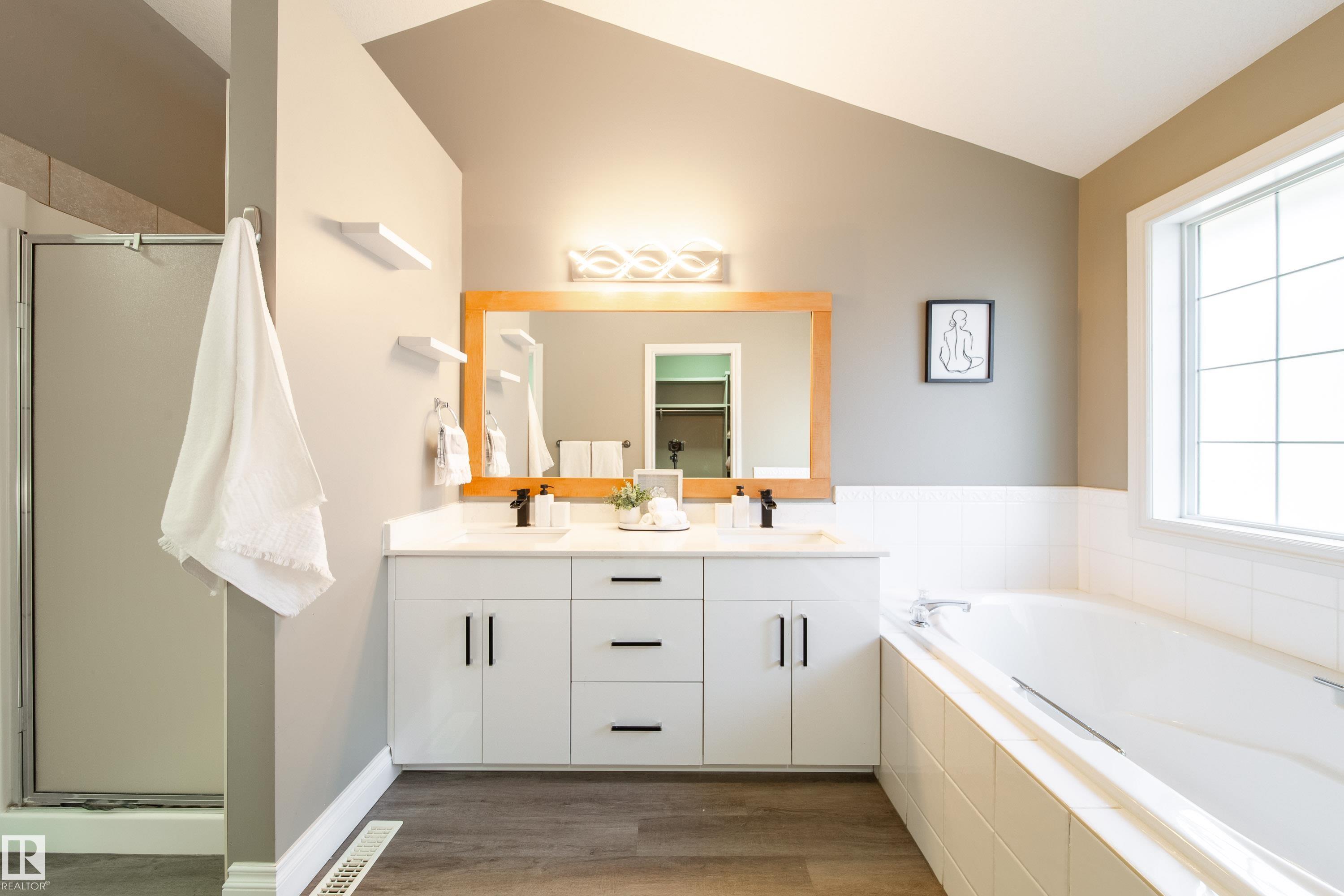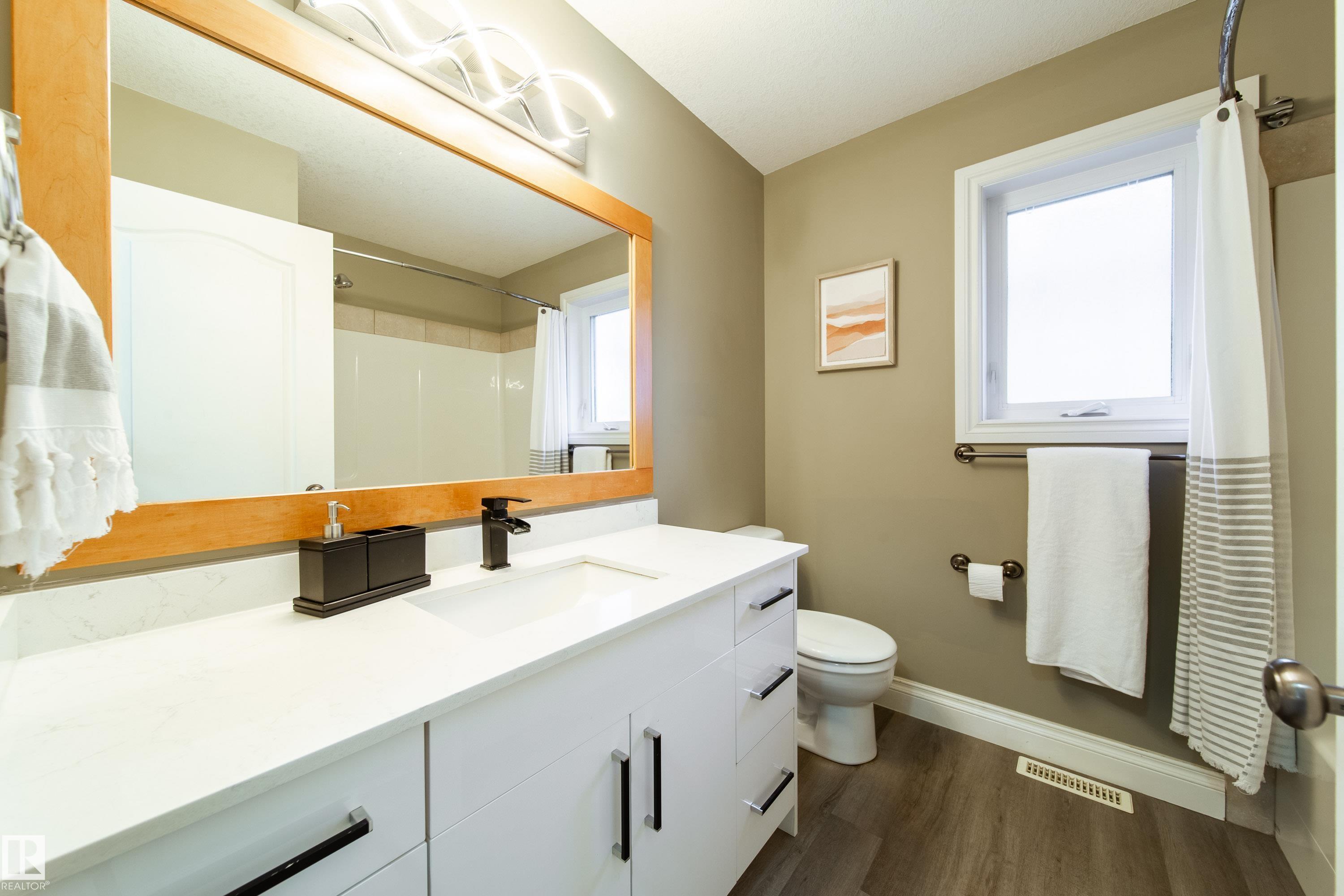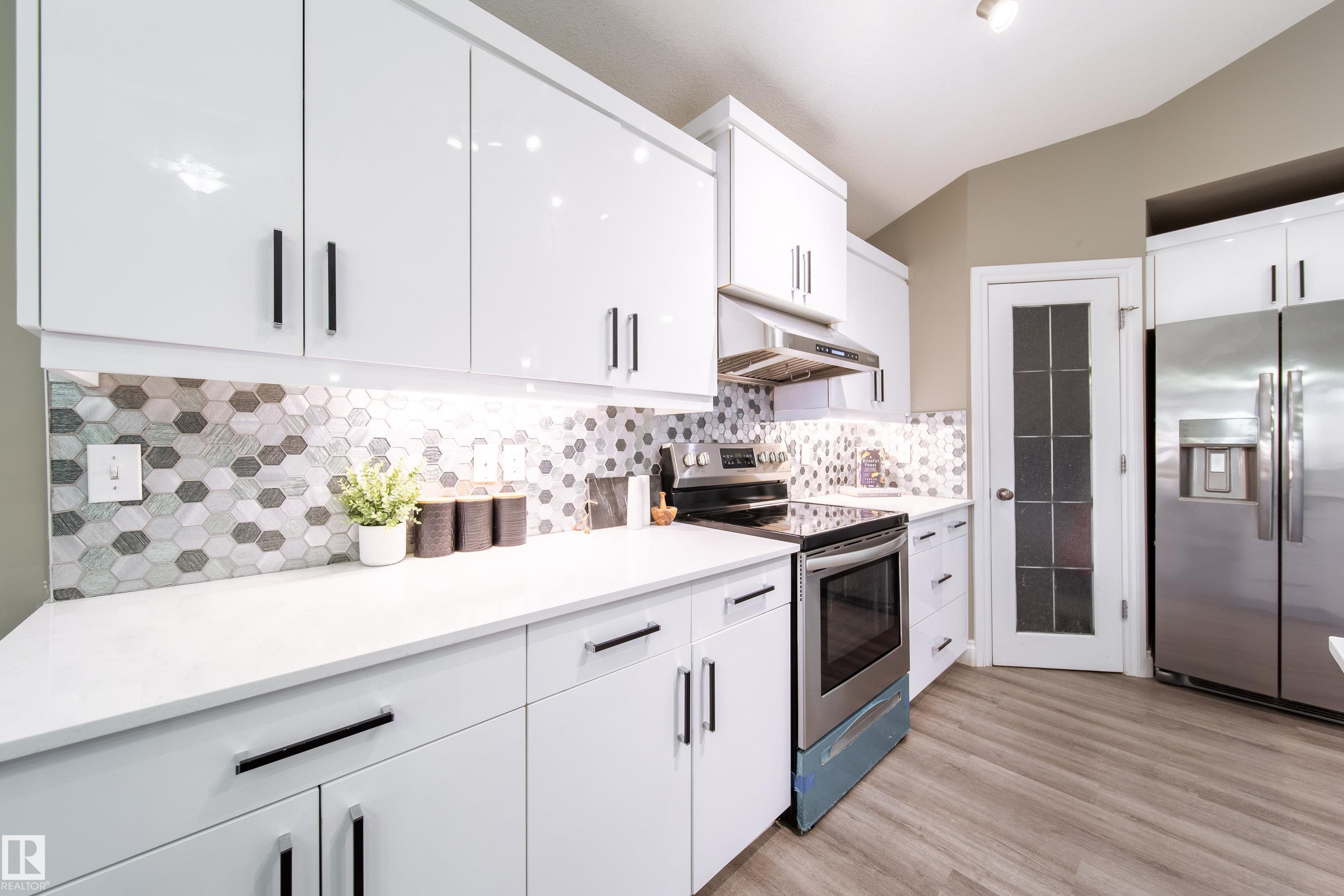 Immaculate and beautifully maintained bi-level offers nearly 2,900 sq.ft. of total living space in sought-after Lakeland Ridge! Featuring 5 bedrooms, 3 full baths & tons of upgrades throughout, this home blends comfort and style. The main floor boasts soaring vaulted ceilings, large windows, new flooring, and a bright open layout. The updated kitchen features new cabinets, quartz counters, a massive island & newer S/S appliance--perfect for entertaining. Enjoy a spacious living room with cozy gas F/P, flex room, 2 bedrooms, full bath & main-floor laundry w/sink. Upstairs, the private primary retreat impresses with vaulted ceilings, 5-pc ensuite, W/I closet & gas F/P. The fully finished basement offers 9' ceilings, 2 bedrooms, large rec room, flex space, full bath & R/I in-floor heat. Extras include A/C, ICF foundation, new shingles, furnace, HWT & blinds. Private yard with garden & flower beds, stamped concrete patio, deck & gazebo. Steps from park & playground!